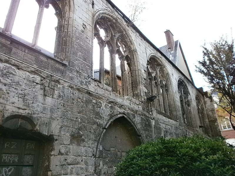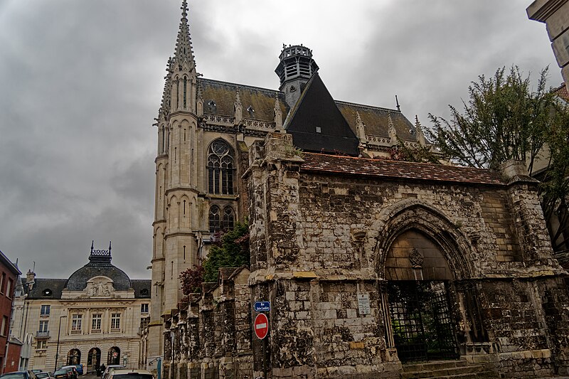 L'église Saint-Remi et le couvent des Cordeliers se situent au cœur d'Amiens, rue des Cordeliers, dans le département de la Somme. Le couvent, établissement des franciscains (ordre des Frères mineurs, appelés cordeliers), s'installa à Amiens en 1233. Au début du XIVe siècle il fut agrandi, puis incendié lors de l'attaque des partisans de Charles le Mauvais en 1358 ; l'église fut reconstruite en 1360 grâce au roi Charles V et à nouveau agrandie en 1484. Adrien de Hénencourt fit édifier le cloître en 1485. Ravagé par un incendie en 1585, le couvent fut ensuite reconstruit et agrandi. Entre 1630 et 1632, Nicolas Blasset réalisa le tombeau de Nicolas de Lannoy et de son épouse Magdeleine de Mutterel, initialement placé dans le chœur de l'église du couvent, puis transféré au XIXe siècle dans l'église Saint-Rémi. À la Révolution française, dix-huit moines résidaient encore au couvent, qui disposait de 7 431 livres de revenus ; il fut déclaré bien national et accueillit un temps le club des Jacobins. En 1793 on décida l'ouverture d'une rue sur les terrains de l'ancien couvent, et en 1802 Charlotte Pingré racheta les parcelles restantes pour les donner à la paroisse Saint-Rémi. Le couvent fut démoli au début du XIXe siècle et n'est connu que par des représentations tardives, notamment le cadastre de 1812 ; la description d'E. Soyez en 1895 concernait principalement l'église, de plan allongé à deux vaisseaux, qui conservait un portail du XIIIe siècle. Une première église paroissiale avait été construite en 1503 puis démolie en 1850. À la fin du XIXe siècle, le doyen de la paroisse lança un projet de reconstruction de l'église des Cordeliers dans un style néo-gothique conçu par l'architecte Paul Delefortrie ; seules la chapelle du chœur et le transept furent édifiés, puis les travaux furent arrêtés en raison du coût. La nef, dont la construction remontait au XVIe siècle, fut en grande partie détruite pendant la Première Guerre mondiale (1914-1918). Endommagée durant ce conflit, l'église fit l'objet de travaux qui permirent à l'architecte Pierre Ansart et à son fils Gérard, artiste verrier, d'édifier la sacristie, de restaurer des vitraux et d'en composer de nouveaux. Les verrières de l'abside illustrent la vie de saint Rémi par des médaillons superposés ; le triforium est consacré à la vie des moines et des cordeliers d'Amiens, et les fenêtres hautes représentent les douze apôtres de part et d'autre d'un tableau central réunissant la Vierge et l'Enfant et le thème de la Trinité. Il ne subsiste aujourd'hui du couvent que quelques ruines ; en 1937 on aménagea le square Pierre-Marie-Saguez dans ces vestiges, où l'on peut voir les restes du portail occidental de l'église (voussures et piédroits), des éléments de la nef (bases de piliers, contreforts), des murs et fenêtres gothiques en élévation ainsi que divers vestiges lapidaires, notamment des sarcophages. L'ancienne nef du couvent des Cordeliers est inscrite aux Monuments historiques par arrêté du 17 août 2001, conjointement avec l'église Saint-Rémi et sa sacristie.