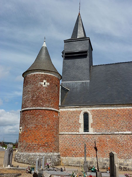 L'église Saint-Rémi de Logny-lès-Aubenton, perchée sur une butte dans la commune de Logny-lès-Aubenton (Aisne, Hauts-de-France), est une église fortifiée inscrite aux monuments historiques par arrêté du 14 juin 1989. L'édifice associe un chœur d'époque médiévale, en pierre calcaire blanche et peut-être antérieur au XIVe siècle, à une nef en brique de trois travées élevée au XVIe siècle lors de la fortification. De dimensions modestes — chœur de deux travées, nef de trois travées — il concentre ses éléments défensifs sur la façade occidentale. La façade ouest est flanquée au sud d'une tour cylindrique en brique, coiffée d'une poivrière et percée de meurtrières, qui défend le portail principal. Le clocher en charpente surmonte également la façade occidentale. On observe par ailleurs des traces de meurtrières, aujourd'hui bouchées, sur les murs de la nef. Par la simplicité et la clarté de sa facture, malgré ses proportions réduites, l'église illustre l'aménagement des églises de cette région au XVIe siècle, marqué ici par la concentration des dispositifs défensifs en un seul point.
