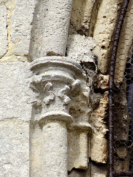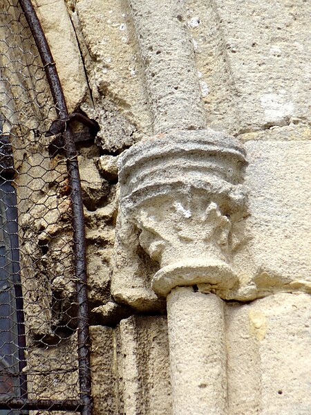 La chapelle latérale sud apparaît comme une construction disparate et inachevée : elle n'a jamais été voûtée depuis sa réduction à deux travées, présente des chapiteaux et des fenêtres de plusieurs époques, un plafond en pente répondant au toit en appentis et une seconde travée utilisée comme sacristie séparée du sanctuaire par une cloison basse. Des chapiteaux placés en attente montrent qu'un voûtement avait été envisagé, mais l'abandon du projet a laissé l'espace sans formerets et avec un arc-doubleau du même type que celui du chœur.
