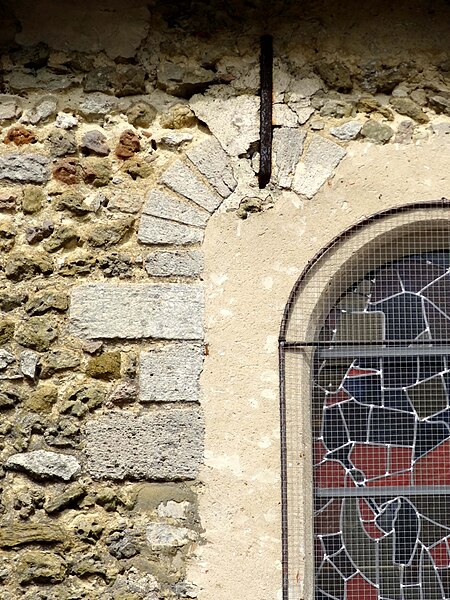 Le mur sud de la nef comporte quatre ouvertures : une porte dans la troisième travée et trois grandes fenêtres, deux en plein cintre d'époque classique et la dernière en tiers-point de style flamboyant ; des traces des anciennes baies romanes se lisent en partie en élévation. Le mur nord est dépourvu de grandes baies ; on y observe une niche en plein cintre près du chœur, dont le fond porte une peinture de la période classique représentant une scène de trahison et divers personnages légendés, ainsi qu'une niche aménagée au XIXe siècle pour un poêle. Les parties basses des murs ont souffert de reprises en sous-œuvre qui ont effacé les peintures jusqu'à près de deux mètres de hauteur, mais les fresques débutent au‑dessus de cette zone et restent globalement bien conservées.