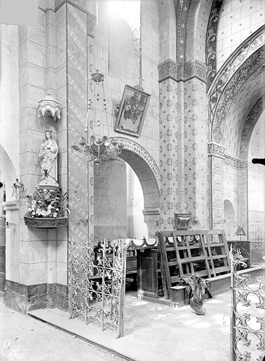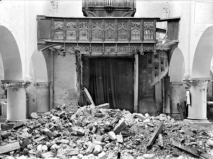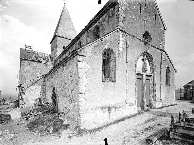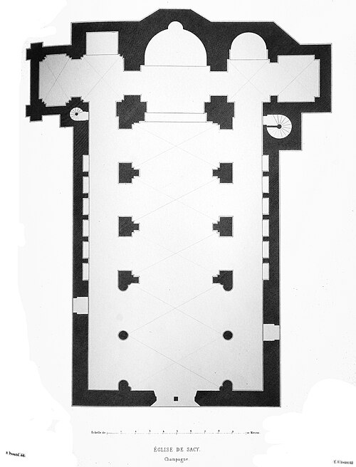 L'église de Sacy, située dans la Marne et dédiée à Remi, est une construction romane datant du XIe siècle. Classée aux monuments historiques, elle a subi des dégâts lors de la Première Guerre mondiale. L'abside et le chœur constituent les parties les plus anciennes, et l'abside voûtée en cul-de-four au sud du chevet relève des XIe-XIIe siècles. Trois travées de la nef datent du XIIe siècle, tandis que les deux premières travées ainsi que les portails nord et occidental appartiennent au gothique flamboyant, à la fin du XVe ou au début du XVIe siècle. La nef, initialement voûtée d'arêtes et flanquée de collatéraux, a été remaniée au XVe siècle et voûtée d'ogives au XIXe siècle. Une tour carrée marque la croisée du transept et l'édifice est couronné d'une flèche élevée. Parmi les éléments remarquables figurent une statue du XIVe siècle représentant sainte Anne portant sa fille Marie et l'Enfant Jésus, deux anges en statue du XVe siècle et une tribune d'orgue en bois sculpté du XVe siècle, aux panneaux ajourés ornés d'écussons et de têtes pendentives portant les armes d'Anne de Bretagne ; cette tribune, provenant de l'ancienne église Saint-Pierre-le-Vieil de Reims, a été incendiée pendant la guerre de 1914-1918 puis remontée en modifiant son agencement. On note aussi la présence d'autres décors et objets d'art, ainsi que des éléments visibles en photographie : l'entrée nord aux armes de Lennoncourt, un ange en pierre, une statue en bois, une bannière de procession et des détails de la tribune.