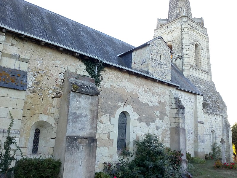 L'église Saint-Rémi est, dans son ensemble, un édifice roman entièrement bâti en tuffeau. L'abside demi-circulaire actuelle est moderne et remplace un pignon-chevet percé d'une grande fenêtre du XVe siècle. Le portail et la base carrée du clocher datent du XIIe siècle, tandis que la flèche octogonale appartient au XVe siècle.