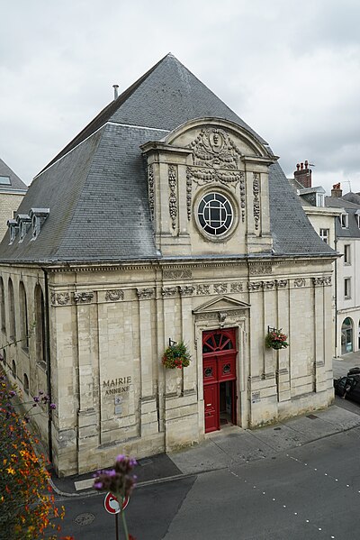 L'ancienne église Saint-Remy-au-Velours, située place du Général Leclerc à Laon (Aisne), sert depuis 1980 d'annexe à la mairie. La paroisse est très ancienne et une église Saint-Rémy avait déjà été reconstruite vers 1170. Le bâtiment actuel, de plan allongé, date du XVIIe siècle : il fut édifié par le maître-maçon Jean Marest entre 1675 et 1677 et décoré par le sculpteur Armand Sentiez ; la construction fut financée en grande partie par la riche bourgeoisie laonnoise. Côté est subsistent des parties qui remontent probablement au XVIe siècle, dont une baie dégagée lors d'une restauration. La paroisse fut supprimée à la Révolution et l'église, confisquée en 1790, fut achetée par la ville le 26 septembre 1791 ; son clocher fut abattu en 1795. Transformée en théâtre à l'italienne entre 1804 et 1807 sur les plans de l'architecte Carrier, elle reçut le décor peint de Jean-François Troy. L'édifice connut des transformations en 1893 sous la direction de l'architecte Paul Marquiset et fut périodiquement rénové au cours du XIXe siècle. Gravement endommagé pendant la Première Guerre mondiale, notamment la toiture, la façade et les intérieurs, il fut restauré entre 1919 et 1925 dans le style Louis XVI. L'activité théâtrale cessa en 1965 et, après des dégradations, le bâtiment subit des destructions en 1975 ; ses façades et ses toitures furent classées au titre des monuments historiques le 5 décembre 1975. Réhabilité de 1976 à 1979 par l'architecte des Monuments historiques Alain Gigot, l'édifice accueille aujourd'hui des fonctions municipales. L'ancien théâtre a également inspiré un épisode comique chez Champfleury, dans Les Souffrances du professeur Delteil.
