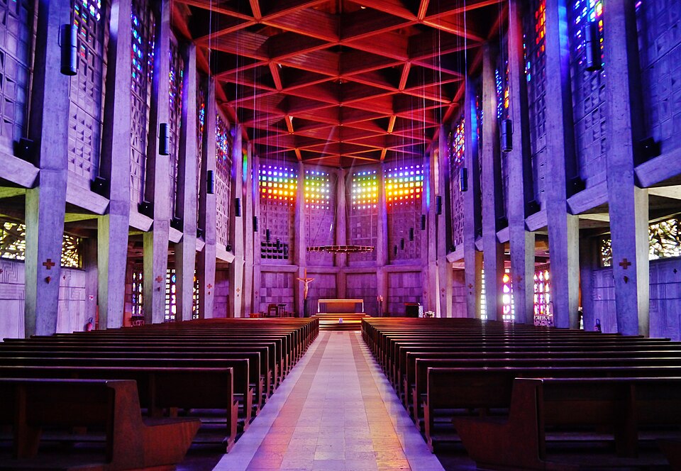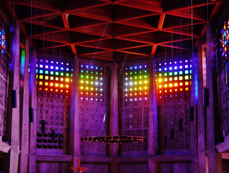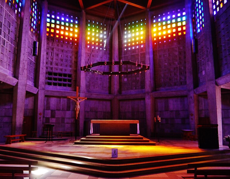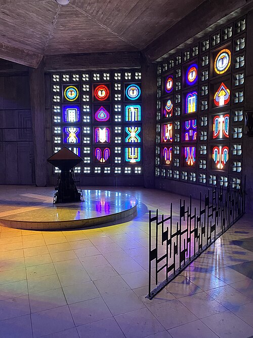 L'église Saint-Rémy de Baccarat (Meurthe-et-Moselle) est un édifice d'inspiration moderne situé 1 avenue de Lachapelle, en face de la mairie et le long de la Meurthe. L'église du XIXe siècle, détruite en 1944, a été reconstruite par l'architecte Nicolas Kazis entre 1953 et 1957; l'ensemble est placé sous le signe du triangle, symbole de la Sainte Trinité. L'édifice est inscrit au patrimoine de Lorraine et, dans son ensemble y compris le campanile, classé au titre des monuments historiques par arrêté du 17 juin 2013. Il comporte deux niveaux : le niveau supérieur abrite l'église proprement dite et le niveau inférieur la crypte et des salles de catéchisme. Le plan est traditionnel en croix latine, avec un vaisseau central flanqué de deux nefs latérales. Les murs extérieurs sont formés de claustras préfabriqués en ciment armé, garnis de 4 000 dalles de cristal colorées réalisées par la cristallerie de Baccarat. L'ensemble des vitraux se répartit en trois parties : les plaques de cristal de la nef présentent des motifs abstraits illustrant la Genèse, les baies de part et d'autre du chœur représentent les douze apôtres, et des labyrinthes au sol et sur les murs évoquent le chemin du calvaire. Le clocher, de forme triédrique, s'élève à 55 mètres et abrite trois cloches. La décoration lumineuse associe 4 000 dalles de 2,5 cm d'épaisseur, découpées en 20 000 petits morceaux de cristal ajustés dans le béton et déclinés en plus de 150 teintes, faisant de l'ensemble un dispositif chromatique singulier. De chaque côté du chœur, deux ensembles symétriques rendent les apôtres reconnaissables par leurs attributs traditionnels. Le mobilier en fer forgé comprend deux bénitiers avec vasques en cristal de Baccarat, un lustre, deux grilles de séparation dans le transept, l'ambon, le tabernacle orné de dalles de cristal, le baptistère et le pied de la croix portant un Christ en bois. Deux statues, saint Rémy et la Vierge à l'Enfant (Notre‑Dame de l'Offrande) de François Brochet, ornent les nefs latérales, tandis que quatorze sculptures en pierre reconstituée et cristal de Baccarat figurent les stations du chemin de la croix le long des allées. Le plafond est constitué de 130 éléments de bois collé pour un poids total de 19 tonnes. En tribune, les grandes orgues de Jacquot Lavergne (1958) disposent de trois claviers, d'un pédalier, de quarante jeux et de 3 660 tuyaux.