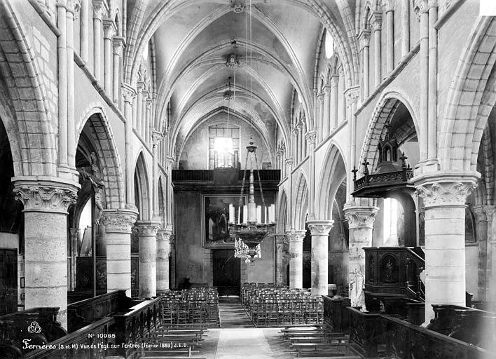 L'église Saint‑Rémy est une église catholique située à Ferrières‑en‑Brie, en Seine‑et‑Marne. Le nom de Ferrières apparaît en ce lieu à la fin du IXe siècle et l'abbaye de Saint‑Maur possédait des biens sur ce territoire au Xe siècle. En 1228 le curé était un prêtre séculier à la collation de l'évêque de Paris. L'édifice actuel a été construit au deuxième quart du XIIIe siècle. Vers 1300 l'évêque de Paris a cédé l'église à l'abbaye des Prémontrés d'Humières. Les protestants ont mis le feu à l'église ; seule la charpente en a souffert et, en 1570, le roi a accordé aux habitants le droit d'abattre vingt et un chênes dans la forêt de Crécy pour la réparer. L'édifice est classé au titre des monuments historiques depuis 1847. Le plan est simple : une nef centrale de cinq travées se termine par un chœur polygonal, flanqués de bas‑côtés qui s'achèvent chacun par une absidiole à pans coupés ; il n'y a pas de transept. L'élévation comprend trois niveaux ; les arcades en tiers‑point reposent sur des piles cylindriques dont les chapiteaux à feuillages et crochets sont portés par des tailloirs carrés et des socles orthogonaux. Au‑dessus de chaque grande arcade court une arcature aveugle formée de quatre petites arcades séparées par de fines colonnettes aux chapiteaux feuillagés et couronnées de tailloirs carrés. Le troisième niveau ne comporte pas de fenêtres hautes mais de simples oculi ménagés sous les arcs formerets servant d'arcs de décharge. Chaque travée est voûtée d'ogives ; arcs doubleaux, ogives et arcs formerets présentent des profils liés — l'arc formeret ayant la moitié du profil de l'arc doubleau — et s'appuient sur des faisceaux de trois colonnettes dont les bases reposent sur le tailloir des piles. Le chœur n'adopte qu'un seul système de voûtement. Les bas‑côtés comprennent cinq travées et une absidiole implantée de sorte que son axe forme un angle de 45° avec l'axe de l'église, disposition rencontrée dans l'architecture champenoise et à la collégiale Saint‑Gengoult de Toul. La rose qui éclaire le revers de la façade occidentale a été rétablie lors de la restauration de 1889. Jusqu'au XVIIIe siècle l'église n'avait pas de clocher ; un clocher fut alors construit, obturant la quatrième travée du collatéral nord, mais il fut démoli entre 1858 et 1862 car il menaçait de s'effondrer, et l'édifice fut entièrement restauré à la même époque. La porte la plus remarquable s'ouvre dans le collatéral sud et se compose de huit colonnettes aux chapiteaux feuillagés surmontés de tailloirs carrés. Les vitraux du XIIIe siècle signalés par l'abbé Lebeuf ont disparu. Neuf verrières du chœur, réalisées en 1878 par l'atelier C. Champigneulle de Bar‑le‑Duc, ont été inscrites au titre des objets le 28 avril 1982.