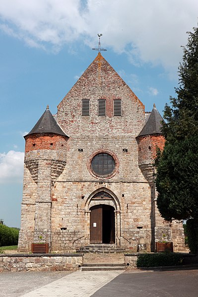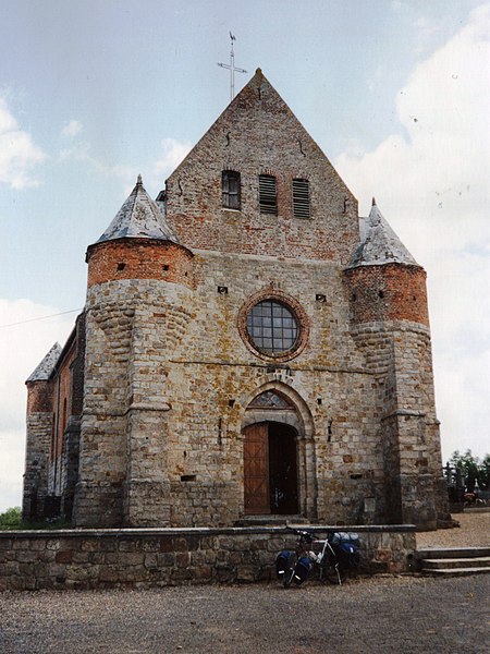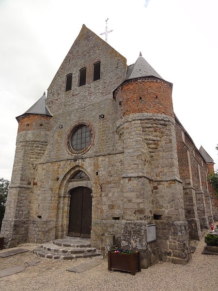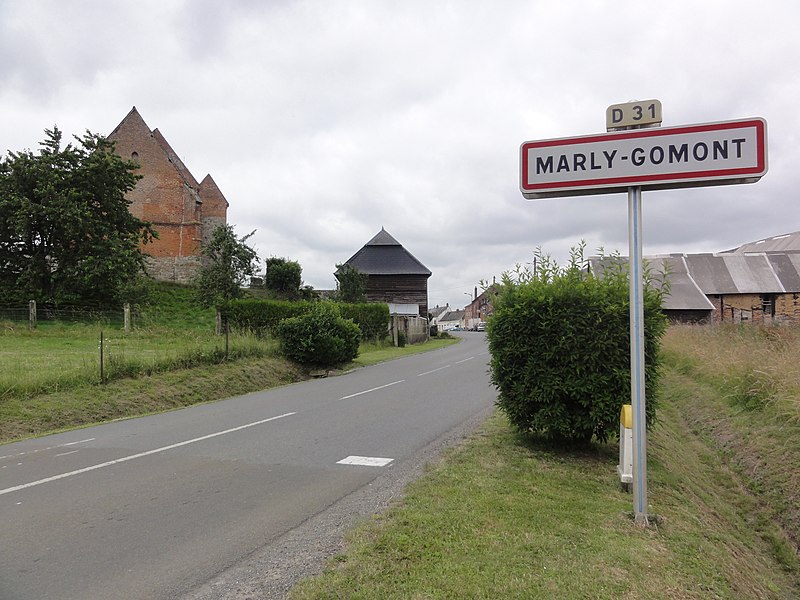 L'église Saint-Rémy se situe à Marly-Gomont, dans l'Aisne. Église fortifiée, elle servait d'abri à la population en cas d'attaque. L'édifice a connu de nombreuses transformations ; la façade remonte au XIIIe ou XIVe siècle et la nef a vraisemblablement été ajoutée ultérieurement. La construction est principalement en grès et le portail est en tiers-point. Les parties les plus anciennes présentent de nombreuses meurtrières disposées à hauteur d'homme. La façade est flanquée de deux échauguettes dont l'assise est en grès et le sommet en brique, et l'on observe des meurtrières sur ces aménagements ; une meurtrière se remarque également à droite du portail. L'intérieur offre des vues de la nef vers le chœur et vers le porche, des fonts baptismaux et une statue de Saint-Éloi. Un escalier très étroit permet l'accès à la tour nord. Le monument a été inscrit au titre des monuments historiques en 1928.