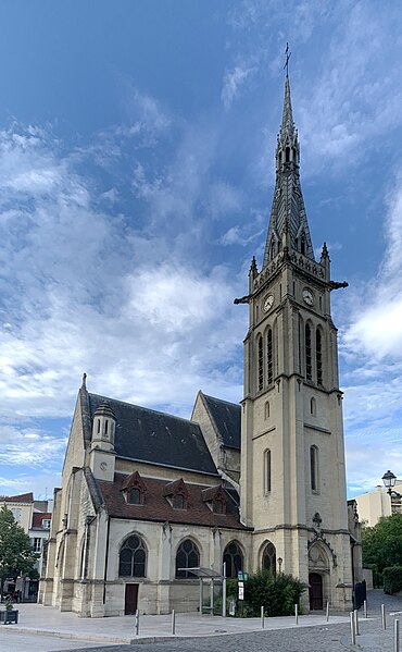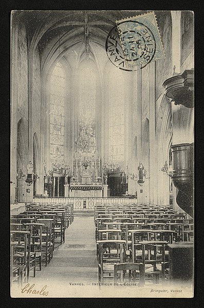 L'église Saint-Rémy, située rue de la République dans le centre historique de Vanves (Hauts-de-Seine), est d'origine ancienne : une église est mentionnée en 1163 parmi les possessions de l'abbaye de Saint-Germain-des-Prés, et un édifice antérieur, aujourd'hui disparu, aurait été érigé aux XIIe ou XIIIe siècles. Une inscription atteste que les dernières travées de la nef et le chœur visibles datent de 1449, année de sa consécration. Au XVIIIe siècle, une mairie et une prison furent accolées à l'église, puis démolies vers 1848-1849 lors des restaurations dirigées par l'architecte Naissant, qui reconstruisit les trois premières travées de la nef et le clocher. Le clocher, partiellement détruit pendant la guerre de 1870, fut relevé par l'architecte Monnier entre 1871 et 1874. Bâti dans le style gothique flamboyant, l'édifice comprend une nef terminée par un chœur à trois pans. Une partie de la nef a été reconstruite au XIXe siècle et des fresques peintes datent de cette époque. Une restauration engagée au début de 2007 et achevée en janvier 2009 s'est déroulée en deux phases : la première a concerné les parties extérieures et intérieures, la seconde a porté sur la rénovation des peintures murales et des vitraux. L'église Saint-Rémy est inscrite au titre des monuments historiques depuis 1928. Sur le plan paroissial, en 1807 Le Valloin était desservant. L'édifice est référencé dans plusieurs bases et portails, notamment Wikimedia Commons, Clochers de France, GCatholic.org, l'Observatoire du patrimoine religieux, la base Mérimée et MusicBrainz.