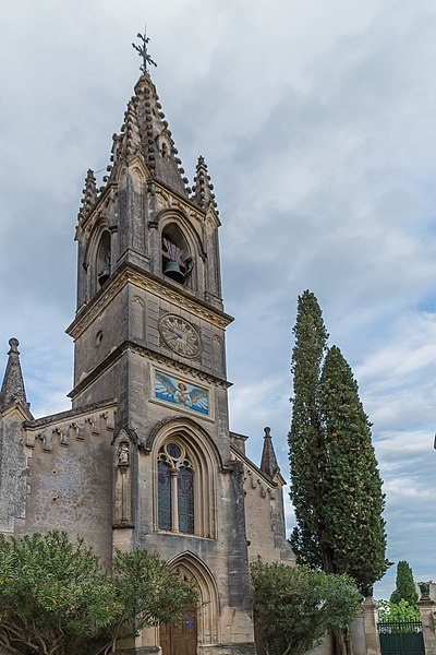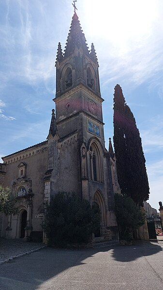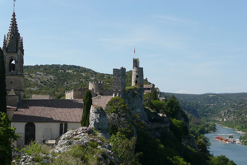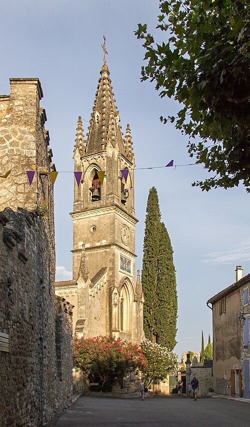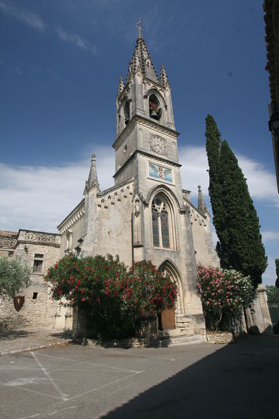 L’église paroissiale Saint-Roch d’Aiguèze, dans le Gard, s’élève sur l’emplacement d’un prieuré cité dès 1462 ; il ne subsiste sans doute du prieuré que l’emplacement et les dimensions. L’ensemble des édifices a été repris au XIXe siècle dans un style néo-gothique, ce qui a profondément modifié l’architecture ancienne. Un portail Renaissance, ajouté au XVIe siècle sur la face nord, a lui aussi été remanié : à la place de la simple niche supérieure se trouve désormais, dans un demi-cercle, une Vierge à l’Enfant en terre cuite émaillée à la manière de Lucca Della Robia. L’intérieur de l’église a été peint entre 1905 et 1910. L’église Saint-Roch est inscrite au titre des monuments historiques depuis le 19 mars 1993. Sur la place de l’église se trouve un olivier planté par M. Robert Puig.