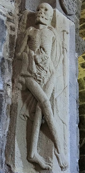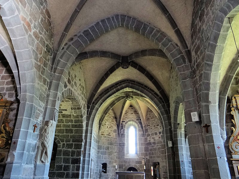 L'église d'Albinhac, dite Saint-Roch, se situe sur la commune de Brommat, dans le département de l'Aveyron. La nef, composée de trois travées, est flanquée de chapelles latérales et s'ouvre au sud par un porche profond ; le chœur présente un chevet à cinq pans. Les culots des nervures sont sculptés de figures et de petits personnages ; l'un des piliers porte une représentation réaliste de la Mort : un squelette décharné d'environ un mètre, portant un linceul sur l'épaule et tenant une hache de la main gauche, dans l'esprit du XVe siècle. Le clocher se gagne par un escalier à vis dont la porte d'entrée est sous le porche ; à partir d'une certaine hauteur, la circonférence de la vis déborde en encorbellement dans les angles du porche et des contreforts extérieurs. Cet escalier conduit à une galerie de circulation qui entoure les trois arcades supportant les cloches. L'édifice actuel succède à une église antérieure qui avait été donnée à l'abbaye de Conques au temps du roi Lothaire ; l'abbaye y a créé une mense abbatiale en 1315. L'église, d'abord dédiée à saint Martin, fut ensuite placée sous le vocable de saint Roch. L'édifice est classé au titre des monuments historiques en 1933.