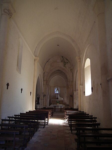 L'église Saint-Romain est située à Guitinières, en Charente-Maritime, et dépendait du diocèse de Saintes. Construite au XIIe siècle, elle présente un plan en croix latine et a conservé plusieurs éléments romans : la nef avec son portail sculpté, le chœur, la partie sud du chevet et la partie basse du clocher, où subsistent des colonnettes. L'édifice a été remanié à plusieurs reprises, la transformation la plus remarquable étant le rehaussement de la nef au XVIIe siècle au moyen de piliers dits « merlons », qui lui donnent une allure de forteresse. La façade occidentale s'ouvre par un portail à trois rouleaux ornés de cordons sculptés de motifs géométriques répétitifs. La nef comprend trois travées ; la travée orientale s'ouvre au nord et au sud sur deux chapelles formant le transept, puis se prolonge par une travée de chœur sous clocher et une abside semi-circulaire. La travée sous clocher est couverte d'une coupole octogonale sur trompes, reposant sur quatre faisceaux de trois colonnes aux chapiteaux sculptés, tandis que l'abside est voûtée en cul-de-four. L'abside conserve du chevet roman un décor à deux registres d'arcatures, rythmé verticalement par des colonnes engagées et des pilastres plats. L'ensemble est bâti en pierre de taille, à l'exception des chapelles et de la cage d'escalier en moellons, ainsi que des parties relevées au nord et à l'est de l'abside. Le clocher, mutilé pendant les guerres de religion, a été partiellement reconstruit ; ses parties hautes ont sans doute été remontées au XVIIe siècle, mais on y retrouve encore des colonnes engagées et des bandes de chevrons d'époque romane. La chapelle nord est d'inspiration gothique, tandis que la chapelle sud a été reconstruite au XVIIIe siècle. Les sculptures romanes du chevet et du portail, par leur diversité, s'apparentent à celles de la basilique Saint-Eutrope de Saintes ; le sculpteur de Guitinières pourrait être celui de Salignac-de-Mirambeau. Chapiteaux, modillons et corniches sont ornés de rinceaux, de motifs géométriques (cercles sécants, étoiles, entrelacs), ainsi que de monstres et de figures animales ou humaines aux costumes finement travaillés. L'édifice a été inscrit au titre des monuments historiques en 1925 et en 2000. Rattachée à la paroisse Saint-Eutrope en pays jonzacais, l'église Saint-Romain n'assure toutefois pas de culte depuis au moins les années 2010.