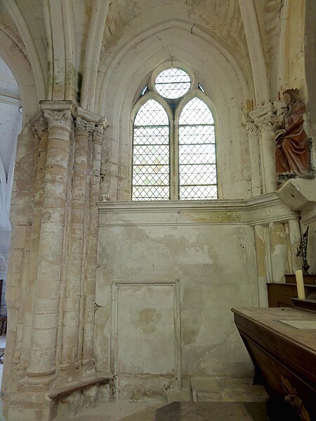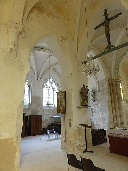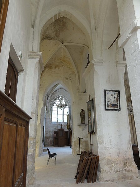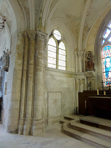 L'église Saint-Romain se dresse à Wy-dit-Joli-Village, dans le Val-d'Oise, et présente une silhouette pittoresque résultant de la juxtaposition de volumes et de campagnes de remaniements successives ; elle est classée monument historique depuis 1981. Elle occupe l'angle nord-est du village, rue Saint-Romain (RD 159), entourée d'une pelouse bordant l'ancien cimetière, avec une impasse derrière le chevet et un petit parvis devant la façade ; une maison proche du chœur masque partiellement la vue sur ce dernier. Selon la tradition, la fondation remonterait à saint Romain vers 625, hypothèse renforcée par la découverte d'un cimetière mérovingien attenant et par des indices de liens avec Rouen, mais rien de l'édifice primitif n'a subsisté. Les parties les plus anciennes de l'édifice actuel — le mur nord et le mur ouest de la nef et les piles de la base de l'ancien clocher — datent du XIe ou du début du XIIe siècle. À la fin de la période romane, le chœur est reconstruit puis, au milieu du XIIe siècle, l'ensemble est voûté d'ogives, la progression du chantier semblant s'être faite d'est en ouest ; la consécration par Eudes Rigaud en 1255 intervient après l'adjonction de la chapelle sud, de style gothique rayonnant. Après la guerre de Cent Ans, une chapelle nord de style gothique flamboyant est élevée ; elle constitue la partie stylistiquement la plus homogène de l'ensemble, tandis que le reste de l'édifice a subi de profonds remaniements et le repercement des baies. En 1682 la flèche octogonale en pierre du clocher central s'effondre et endommage le croisillon sud et la dernière travée de la nef ; la reconstruction engagée à partir de 1695 installe un nouveau clocher au sud-est de la chapelle sud et entraîne la transformation du croisillon, la chapelle étant rebâtie sans style réel. Le porche date du XVIIIe siècle et certains travaux du versant sud de la nef sont attribués soit à la restauration de la fin du XVIIe siècle, soit à des interventions du XIXe siècle. L'église adopte un plan globalement cruciforme mais irrégulier : nef de trois travées sans bas-côtés, ancienne base du clocher correspondant à la croisée du transept, deux travées de chœur à chevet plat, chapelles latérales nord et sud, sacristie et tourelle d'escalier ; l'ensemble est intégralement voûté d'ogives. L'élévation nord de la chapelle, soigneusement appareillée et encore intacte, comporte des baies flamboyantes en tiers-point à meneaux aigus et constitue l'élément le plus homogène de la façade extérieure, tandis que la corniche du chœur, de type romane beauvaisine, rappelle l'ancienne origine de l'édifice. Le clocher, implanté de façon inhabituellement déportée, comporte un étage intermédiaire ajouré d'oculi et un beffroi percé de baies en plein cintre sur chaque face ; son intégration modifie la silhouette du pignon sud et la distribution des travées de la chapelle. À l'intérieur, la qualité du voûtement de la nef et du chœur retient l'attention : ogives, doubleaux et formerets adoptent des profils de la première période gothique et reposent sur des faisceaux de colonnettes de trois diamètres différents, tandis que les chapiteaux, conservés dans un état remarquable, sont sculptés de feuilles plates, de feuilles d'eau et de palmettes, parfois travaillées au trépan. La base de l'ancien clocher, qui forme la première travée du chœur, montre la continuité stylistique entre le chœur et la nef et conserve des cul-de-lampe originaux sculptés en têtes d'animaux ; les piles carrées du clocher, intégrées aux voûtements, expliquent certaines irrégularités d'exécution. Le sanctuaire présente des clés de voûte à rosaces feuillagées et des chapiteaux d'une qualité exceptionnelle, mêlant feuilles d'acanthe, volutes et entrelacs, tandis que l'entablement à la limite des allèges répond à un décor de la Renaissance ajouté ultérieurement. La chapelle nord, largement unifiée et ornée de réseaux flamboyants, conserve une clé armoriée martelée à la Révolution et des culs-de-lampe naïfs ; la chapelle sud, dédiée à saint Romain, est plus étroite, encombrée par les piles du clocher et marquée par une reconstruction de la fin du XVIIe siècle, aux voûtes d'apparence sobre et aux retombées sur culots. Le mobilier comporte plusieurs œuvres notables : quatre éléments sont classés au titre des objets monuments historiques et, pour raisons de conservation, ont été déposés en mairie, des photographies en étant exposées dans la nef ; parmi les pièces encore sur place figurent des statues polychromes de la Vierge à l'Enfant et de saint Romain, des groupes sculptés et une poutre de gloire du XVe siècle. Deux tableaux à l'huile du second quart du XVIIIe siècle, représentant Salomé apportant la tête de saint Jean-Baptiste et saint Jean-Baptiste prêchant au désert, ont été classés en 1980 ; une Annonciation attribuée à l'abbé Dheilly, d'époque XIXe, n'est pas classée. L'église conserve également des dalles funéraires et des plaques de fondation qui témoignent de libéralités des XVIIe et XVIe siècles, une inscription relative à la reconstruction de 1695, ainsi qu'une bannière et des fragments de vitraux, dont une verrière du chevet représentant la Vierge immaculée, le Sacré-Cœur et saint Romain. À proximité se trouve la croix de cimetière du XVe siècle, déplacée après la suppression du cimetière et classée en 1946 ; elle est très mutilée mais laisse deviner une Vierge sous dais sur la face principale. Wy n'est plus paroisse indépendante ; l'église fait aujourd'hui partie du secteur paroissial Avernes et Marines, où les messes dominicales ne sont célébrées à Wy que trois fois par an.