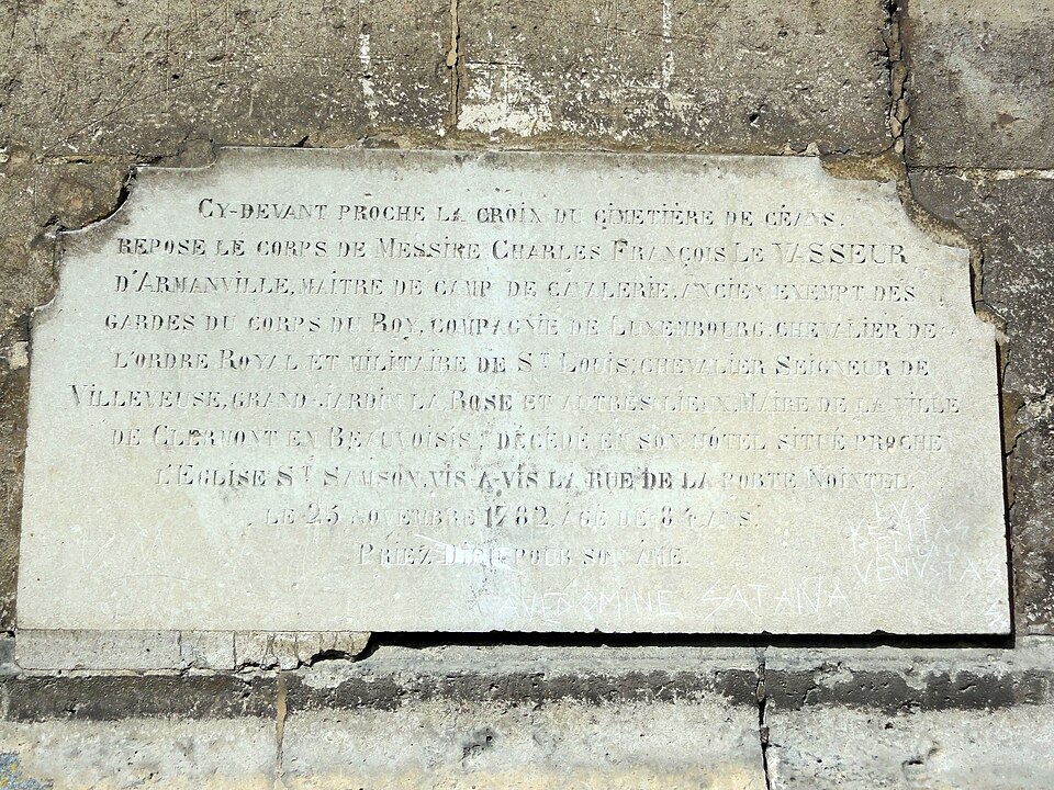 L'église Saint-Samson, église catholique paroissiale de Clermont dans l'Oise, se dresse à l'angle des rues de l'Église et de la Porte Nointel. Sa construction s'étend du XIIe au XVIe siècle et associe des éléments de style gothique et de Renaissance. Les travaux anciens concernent la façade et les bas-côtés nord, tandis que, vers 1220, furent ajoutées les deux dernières travées nord de la nef, puis, à la fin du XIIIe siècle, les voûtes du chœur et les élévations nord de la nef; aux XVe et XVIe siècles datent notamment le clocher, l'entourage du chœur avec déambulatoire et chapelles rayonnantes, le croisillon sud, l'élévation sud de la nef et la sacristie. Trois chapelles — les fonts baptismaux, Saint-Joseph et Saint-Samson — furent aménagées au XVIe siècle. L'édifice remplaça la collégiale du donjon et fut consacré en 1327 par Jean de Marigny sous le vocable de saint Samson; le service paroissial fut assuré par un chapitre dont les chanoines partagèrent la charge. Incendiée pendant la guerre de Cent Ans, l'église ne conserva qu'une chapelle autour de la nef et les offices y furent célébrés dans la chapelle Saint-Nicolas jusqu'à la reconstruction; une restauration importante eut lieu en 1495, suivie d'une seconde dédicace en 1506. Plusieurs épisodes de dommages et de réparations jalonnent son histoire : en 1762 le pavage fut refait après déplacement des pierres tombales, le clocher fut en partie détruit par la foudre en 1785 puis reconstruit en 1812, et la toiture et le clocher connurent d'autres restaurations au cours du XIXe siècle. L'édifice a fait l'objet d'un classement au titre des monuments historiques le 4 janvier 1921. Le plan de l'église reste notablement dissymétrique, la nef présentant six travées au nord et seulement quatre au sud, et l'absence du transept nord tient aux contraintes des fortifications médiévales. Sur le plan architectural, l'église offre un ensemble voûté d'ogives avec de nombreuses voûtes à liernes et tiercerons, des arcades et un faux triforium au nord, ainsi qu'un chevet à triple pans coiffé d'une galerie ajourée et de pinacles. Parmi les éléments remarquables se trouvent un Saint-Sépulcre du XVIe siècle, des vitraux datés principalement du XVIe siècle et des tableaux du XVIIIe siècle. Le mobilier conserve de nombreuses œuvres : sculptures, vitraux anciens, peintures et autels de chapelles telles que Saint-Joseph, Saint-Samson, Saint-Roch et Saint-Louis, ainsi que des boiseries et grilles anciennes. L'orgue principal possède un buffet ancien et l'orgue du chœur, datant de la fin du XIXe siècle, témoigne aussi de la riche tradition musicale de l'église. Longtemps centre spirituel de la paroisse, Saint-Samson reste aujourd'hui au cœur de la paroisse Cœur du Christ de Clermont.