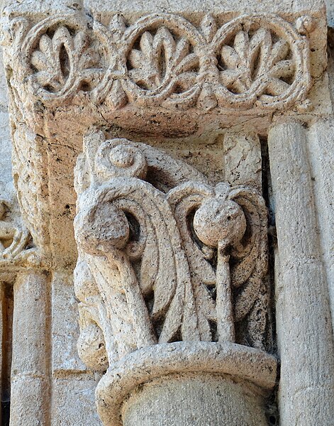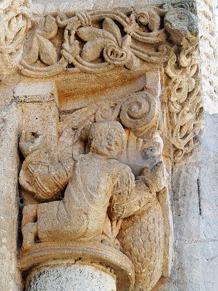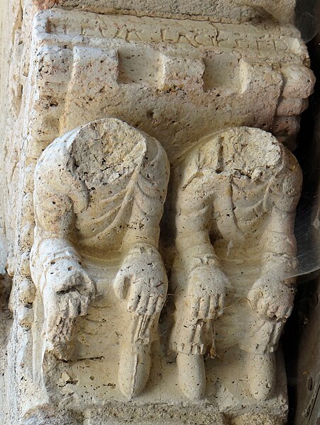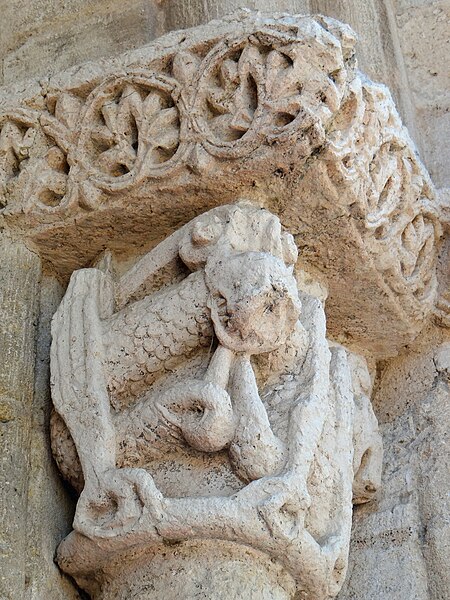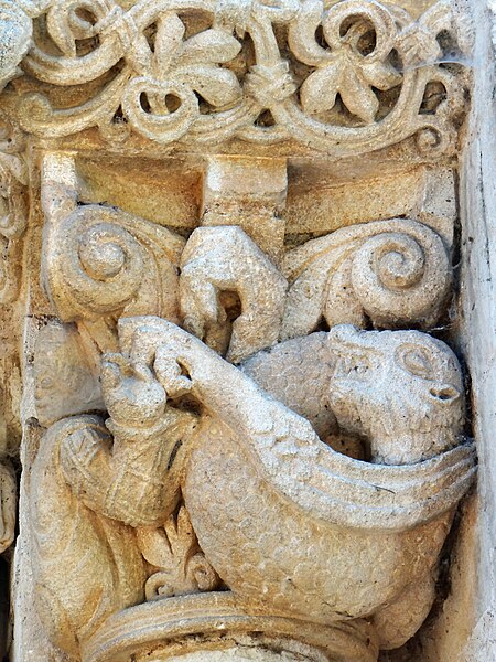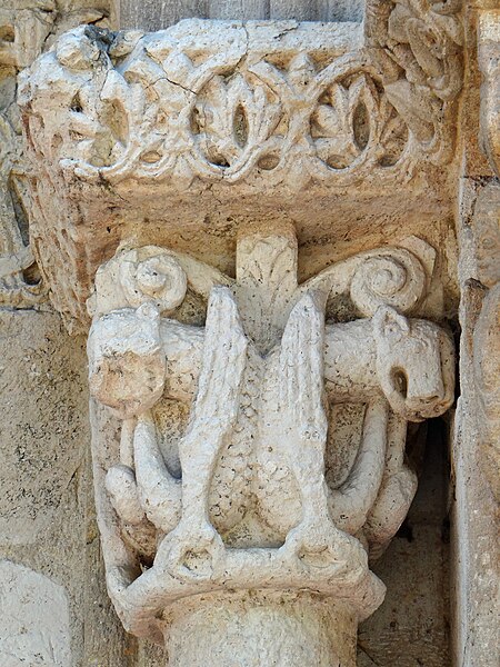 L'église Saint-Sardos occupe le centre de la commune de Saint-Sardos, dans le Lot-et-Garonne ; elle est l'ancien prieuré bénédictin dépendant de l'abbaye de Sarlat, fondé en 1153 d'après Georges Tholin. Une bastide s'était développée autour du monastère, mais les violences de 1323 — et plus largement les conflits des XIVe au XVIe siècles — ont entraîné la destruction partielle du prieuré et de son église. À l'origine, l'église romane comportait un vaisseau central flanqué de deux bas-côtés et terminé par trois absides orientées ; elle fut gravement endommagée lors de la guerre dite de Saint-Sardos et au cours des siècles suivants. Avant 1668, après la destruction de l'ancienne église matrice, l'église priorale était devenue église paroissiale. Il ne subsiste essentiellement de l'édifice roman que le portail nord, encadré par une tour demi‑hors‑œuvre élevée pour servir de clocher, et probablement le départ du mur du chœur, utilisé comme sacristie. D'après J. Marboutin, l'édifice a été largement reconstruit en 1730 ; un bâtiment attenant au sud, visible sur le cadastre napoléonien et peut‑être vestige des bâtiments conventuels, a été reconstruit au XIXe siècle. L'église elle‑même a été remplacée au XIXe siècle par un bâtiment neuf dans lequel ont été incorporées des parties anciennes, puis restaurée complètement entre 1875 et 1877 par l'architecte villeneuvois Adolphe Gilles. Le portail nord a reçu des interventions au XXe siècle et a été restauré dans les années 1950 ; lors d'une campagne de restauration au début des années 1950, deux chapiteaux extérieurs ont été déposés et placés à l'intérieur, remplacés par des copies. Le portail roman, classé au titre des monuments historiques le 16 juin 1939, s'ouvre au nord dans la tour à deux étages. Quatre colonnes décorent les montants en retrait ; un des chapiteaux porte un décor de feuillages, les trois autres présentent des scènes historiées. Les archivoltes plein cintre sont formées de quatre tores séparés par des gorges, et un bandeau orné de palmettes court le long des abaques. Le tympan se compose d'un linteau sur lequel appuie une pierre montant jusqu'aux clés des cintres ; ces deux pierres sont décorées d'entrelacs et de rinceaux. Deux triangles du décor sculpté portent des peintures à l'ocre figurant des échassiers becquetant des fleurs dans des vases ; ces compositions peuvent dater du XVe ou du XVIe siècle. L'édifice conserve enfin des chapiteaux sculptés provenant d'un emplacement originel.
