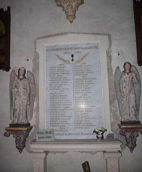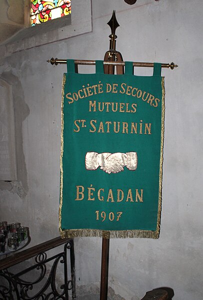 L'église Saint-Saturnin de Bégadan, située au cœur de la commune près de la mairie, dépendait autrefois de l'abbaye de Vertheuil. La partie la plus ancienne est l'abside romane du XIIe siècle, semi‑circulaire à l'intérieur et à cinq pans à l'extérieur. À la naissance du chœur, deux tourelles pleines jouaient autrefois le rôle de contreforts. Les chapiteaux des colonnes sont sculptés de feuillages, de personnages et d'animaux fantastiques ; deux d'entre eux, en marbre et de style corinthien, paraissent être des vestiges d'un monument antique. À l'extérieur, les angles saillants du polygone sont masqués par des faisceaux de trois colonnes engagées, celle du milieu se terminant par un chapiteau, tandis que l'étage supérieur présente des fenêtres géminées aveugles avec une colonnette centrale et quatre colonnettes latérales. Le reste de l'édifice, notamment la nef, la façade et le clocher coiffé d'une flèche, a été détruit puis reconstruit au XIXe siècle ; la nef et la façade datent de la seconde moitié du siècle. L'église est classée au titre des Monuments historiques (liste de 1862).