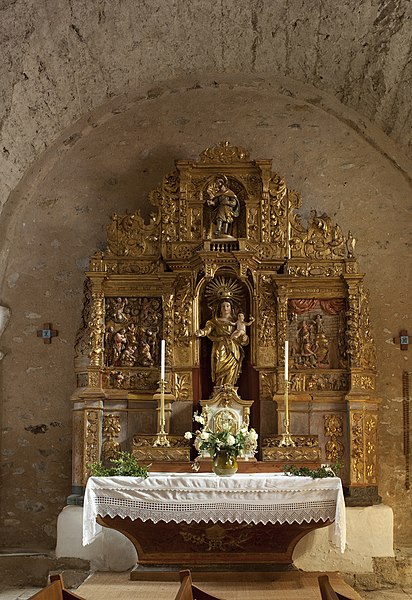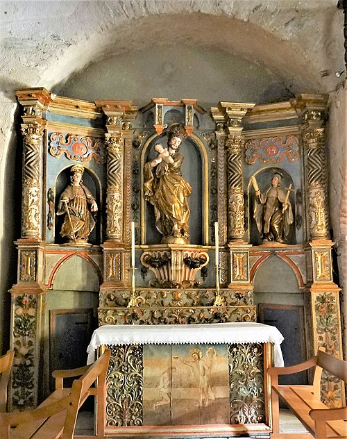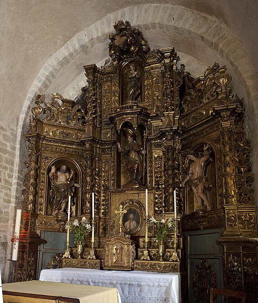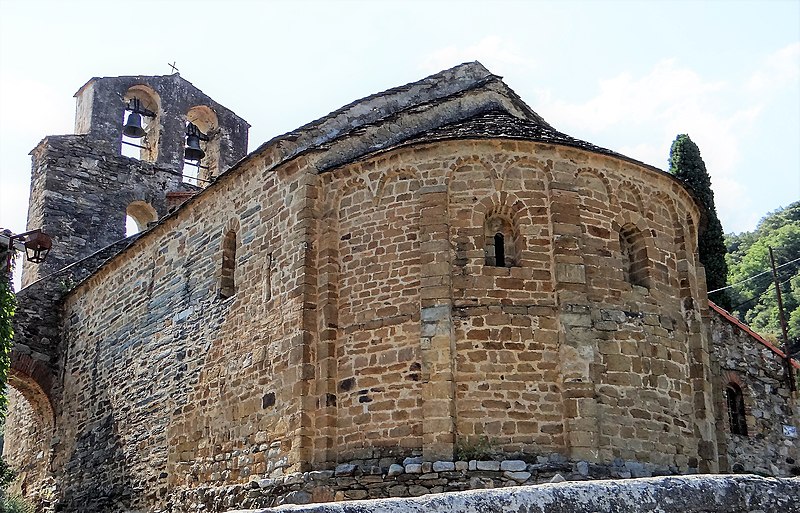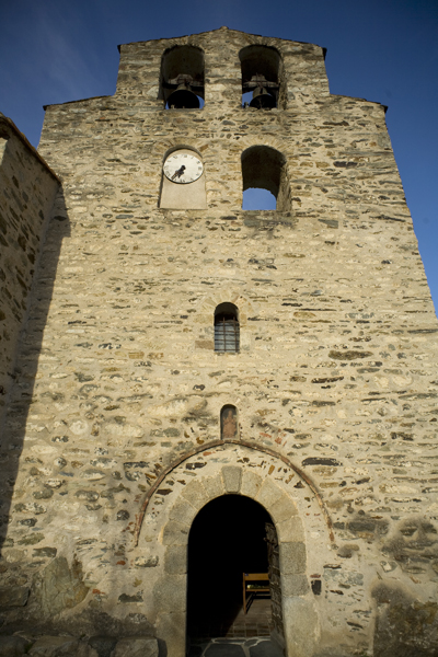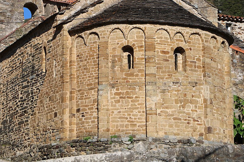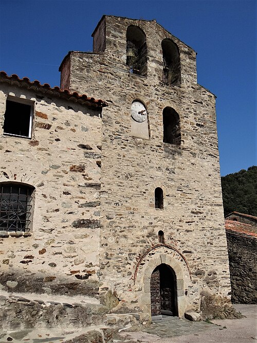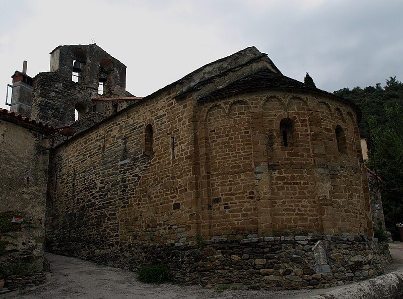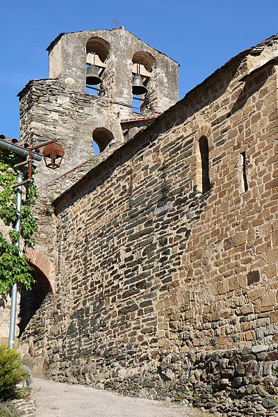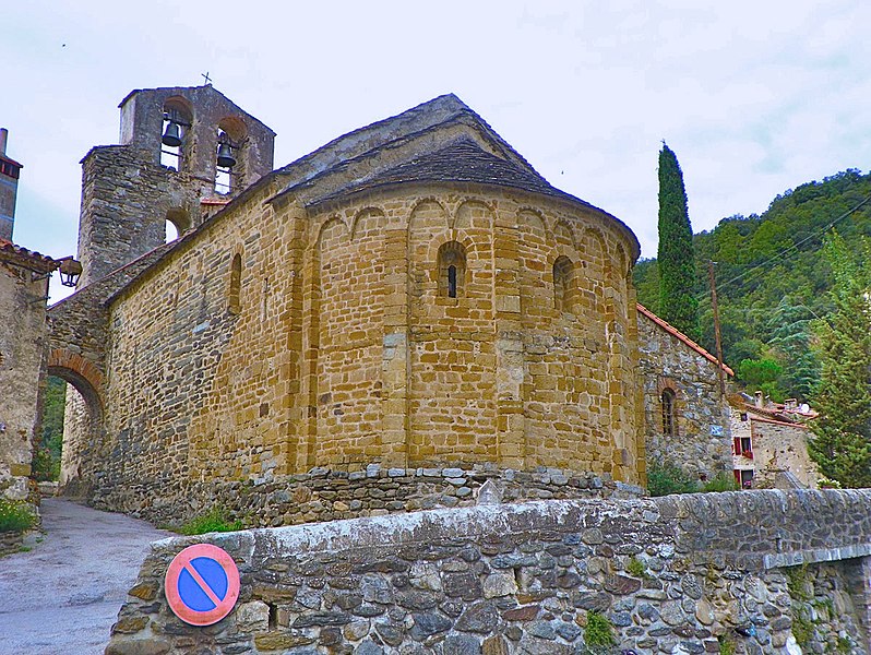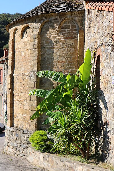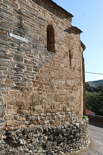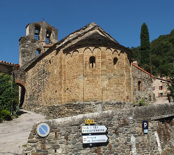 L'église Saint-Saturnin, située à Boule-d'Amont dans les Aspres (Pyrénées-Orientales, Occitanie), se trouve sur la RD 618, à mi-distance entre le prieuré de Serrabona et la chapelle de la Trinité de Prunet-et-Belpuig, entre le Conflent et le Vallespir. Orientée à l'est, l'église romane comporte une nef unique de deux travées, précédée d'une travée de chœur et fermée à l'est par une abside semi-circulaire voûtée en cul-de-four. Entre la nef et l'abside s'intercale un court chevet rappelant le chœur et correspondant à l'arc triomphal. Au nord, la nef a été agrandie au XVIIIe siècle par l'adjonction d'un collatéral de deux travées ; une chapelle latérale y a été tardivement construite et une sacristie y a été ajoutée plus récemment. La communication entre la nef romane et le collatéral se fait par deux arches en plein cintre percées dans le mur septentrional. Le chevet présente un décor de style roman lombard : l'abside, en pierre de taille brune assemblée en appareil irrégulier, repose sur un puissant soubassement en moellons gris et est rythmée par des lésènes reliées par des arcatures aveugles composées de deux ou trois arcs en plein cintre. À mi-hauteur, une assise de pierres plus foncées souligne l'abside, qui est percée de plusieurs fenêtres à simple ébrasement, surmontées d'un arc en plein cintre formé de moellons posés sur champ. La façade occidentale, massive, est dominée par un clocher-mur à deux baies campanaires dont l'étage supérieur est en retrait. La porte occidentale, refaite en 1736 et 1867, s'inscrit dans la tradition romane : ses piédroits sont constitués de blocs de pierre massifs, l'arc en plein cintre présente une clé saillante et l'ouverture est protégée par un larmier ; deux petites baies cintrées la surmontent. Les vantaux de la porte, conservés ou réemployés, conservent des ferrures anciennes : chaque battant porte trois pentures en spirale symétrique, fixées par des clous à tête ronde, complétées par de simples fers plats. L'édifice roman est conservé dans sa quasi-intégralité, tant à l'extérieur qu'à l'intérieur. Mentionnée en 1011 et datée du XIe siècle, l'église Saint-Saturnin est inscrite au titre des monuments historiques depuis le 23 octobre 1972.