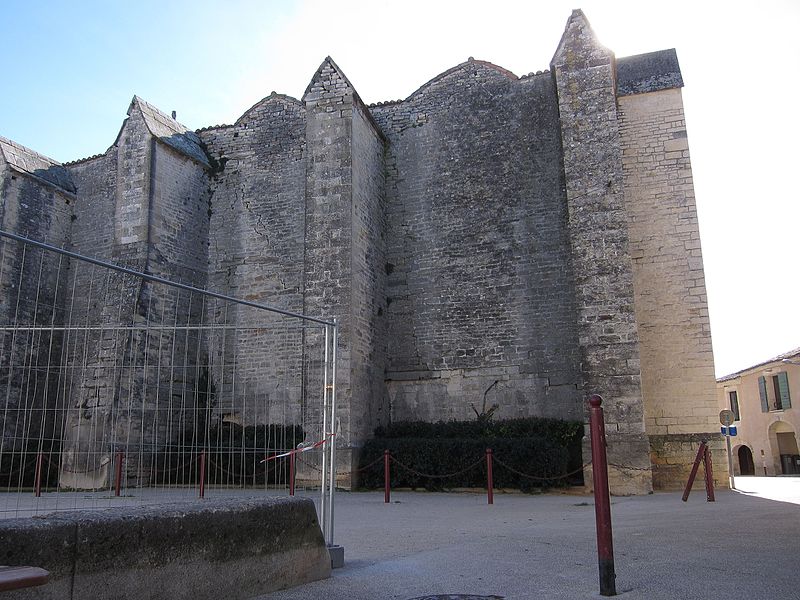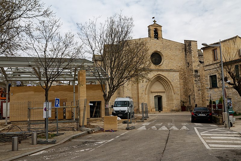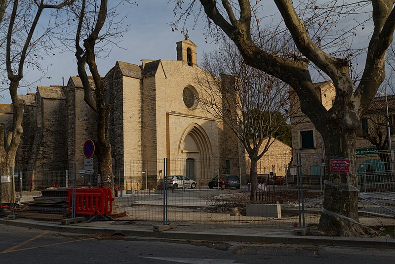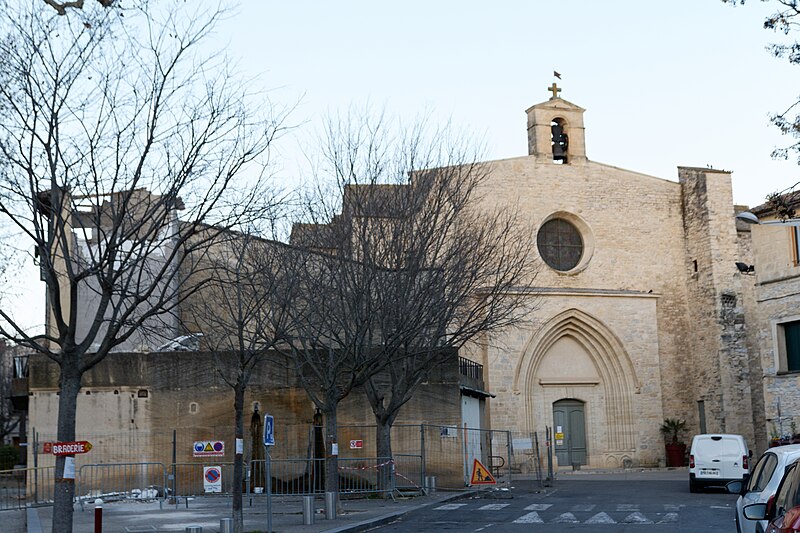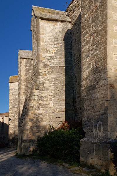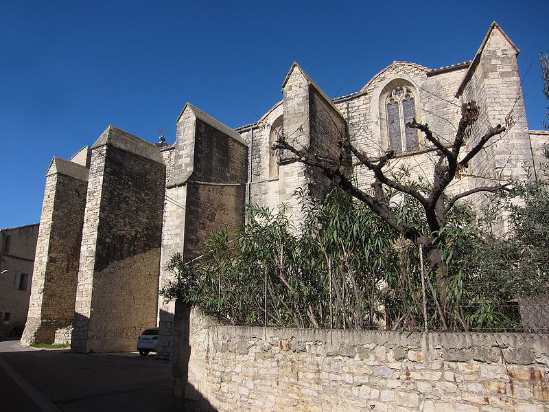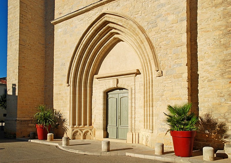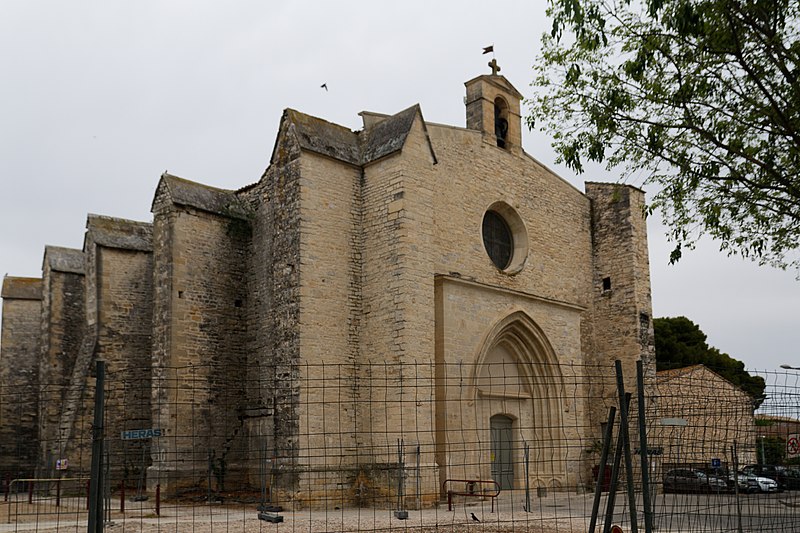 L'église Saint-Saturnin de Calvisson, située dans le Gard en Occitanie, est une église gothique d'origine romane. Le village est mentionné dès 1060 et l'église apparaît dans les cartulaires de Nîmes et de la Font en 1114 et 1156. De la première église recensée en 1156 il ne subsiste rien ; l'édifice actuel fut achevé en 1486 et remanié à la fin du XVe siècle. Les guerres de Religion ont fortement endommagé le prieuré et le cloître, entraînant la disparition du clocher et de trois chapelles latérales sud. L'édifice a connu d'autres transformations et restaurations : en 1665, avec des interventions à partir de 1686 sur les deux travées ouest, après un incendie en 1703 qui n'affecta pas le gros-œuvre, puis une remise en état confiée à la municipalité en 1816. Durant la Révolution l'église fut utilisée comme « Temple de la Raison » en 1794 puis remise aux protestants, qui la restituèrent aux catholiques en 1816. Elle est inscrite au titre des monuments historiques par arrêté du 6 décembre 1949. Une importante campagne de restauration, réhabilitation et mise en valeur a été menée de janvier à juin 2009 : toitures, maçonneries, encadrements en pierre tendre et vitraux ont été restaurés et les baies protégées par des grillages en cuivre et en laiton. L'édifice mesure 35 mètres de long et offre 400 m2 de surface intérieure ; la nef unique de quatre travées, voûtée sur croisées d'ogives, s'étend sur 27 m de long et 11,50 m de large. Les voûtes culminent à 14,50 m tandis que le faîtage de la toiture, d'une surface de plus de 500 m2 munie d'une « ligne de vie », atteint 15 m. Des piles polygonales supportent les retombées des ogives et des doubleaux ; la nef est éclairée au sud par des baies à lancettes et des roses, et à l'ouest par une grande rosace au-dessus du porche. Le bas-côté sud a possédé des chapelles latérales dont subsistent les amorces des voûtes et les formerets ; ces emplacements abritent aujourd'hui deux garages (dont l'un doit être démoli) et le bâtiment de la sacristie. Le chevet est plat et se divise en trois parties, la partie centrale abritant un autel qui fait saillie à l'extérieur. De l'architecture romane originelle, il ne reste que quelques traces, notamment une arcade apparente et une baie cintrée murée dans le mur septentrional. L'appareil de pierre varie : régulier dans les parties basses, plus irrégulier dans les parties hautes. La façade ouest présente un portail ogival en saillie, une porte de style néo-classique édifiée à la fin du XVIIIe ou au début du XIXe siècle, un grand oculus avec vitrail de la seconde moitié du XIXe et un clocheton du XIXe siècle. Le clocheton abrite une baie campanaire et une cloche datée de 1845, provenant de la fonderie avignonnaise Pierre Pierron ; la façade est encadrée par deux contreforts nettement asymétriques, dont l'un contient un escalier en colimaçon. La façade méridionale, rythmée de contreforts en pierre de taille et percée de grandes fenêtres ogivales terminées par des roses, conserve les vestiges des chapelles latérales ; la façade septentrionale, plus austère, laisse apparaître l'arcade romane évoquée. Le chœur comprend trois chapelles alignées dotées de fenêtres gothiques et de vitraux de la seconde moitié du XIXe siècle (atelier Martin, Avignon), et comporte des voûtes sur croisées d'ogives ; la chapelle principale est plus basse que la nef. Le chœur renferme des fragments de colonnes gallo-romaines, dont deux éléments superposés supportant une cuve circulaire, et chaque chapelle latérale présente des culs-de-lampe historiés représentant des moines en avant et des visages grotesques à l'arrière. Au fond de la nef, côté nord, se trouvent des fonts baptismaux en pierre taillée du XVIe siècle : une cuve cylindrique au décor géométrique reposant sur un socle octogonal et entourée d'une clôture de pierre à fortes balustres ; ces fonts sont classés au titre des monuments historiques depuis le 30 septembre 1911. L'église abrite enfin une copie du XVIIe siècle du Mariage mystique de sainte Catherine d'Alexandrie attribué au Corrège et classée au titre des objets monuments historiques depuis le 7 décembre 1965.