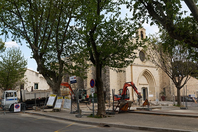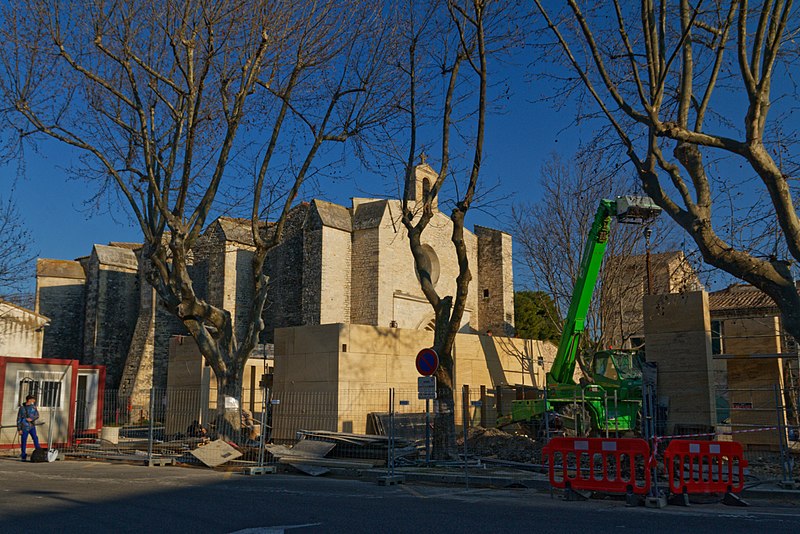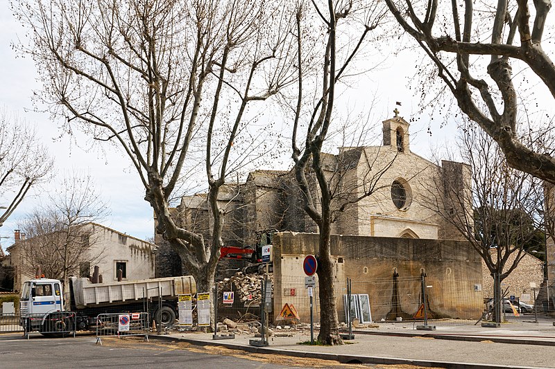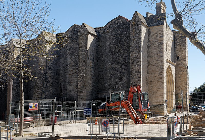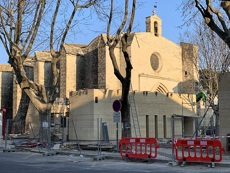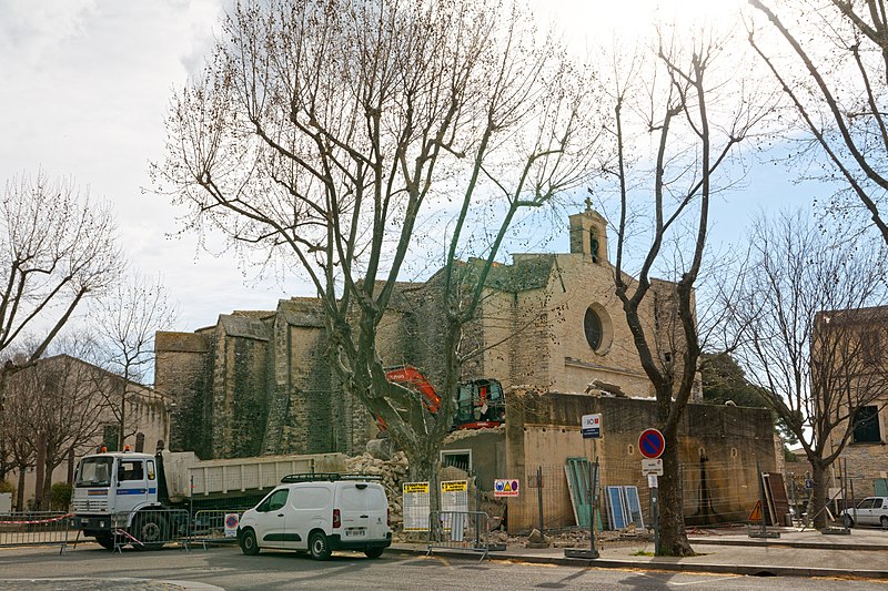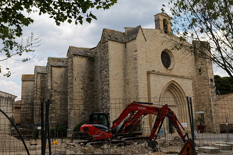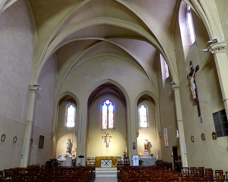 L'église Saint-Saturnin de Calvisson, située dans le Gard en Occitanie, est une église gothique d'origine romane. Le village est mentionné dès 1060 et l'église apparaît dans les cartulaires de Nîmes et de la Font en 1114 et 1156. De la première église recensée en 1156 il ne subsiste rien ; l'édifice actuel fut achevé en 1486 et remanié à la fin du XVe siècle. Les guerres de Religion ont fortement endommagé le prieuré et le cloître, entraînant la disparition du clocher et de trois chapelles latérales sud. L'édifice a connu d'autres transformations et restaurations : en 1665, avec des interventions à partir de 1686 sur les deux travées ouest, après un incendie en 1703 qui n'affecta pas le gros-œuvre, puis une remise en état confiée à la municipalité en 1816. Durant la Révolution l'église fut utilisée comme « Temple de la Raison » en 1794 puis remise aux protestants, qui la restituèrent aux catholiques en 1816. Elle est inscrite au titre des monuments historiques par arrêté du 6 décembre 1949. Une importante campagne de restauration, réhabilitation et mise en valeur a été menée de janvier à juin 2009 : toitures, maçonneries, encadrements en pierre tendre et vitraux ont été restaurés et les baies protégées par des grillages en cuivre et en laiton. L'édifice mesure 35 mètres de long et offre 400 m2 de surface intérieure ; la nef unique de quatre travées, voûtée sur croisées d'ogives, s'étend sur 27 m de long et 11,50 m de large. Les voûtes culminent à 14,50 m tandis que le faîtage de la toiture, d'une surface de plus de 500 m2 munie d'une « ligne de vie », atteint 15 m. Des piles polygonales supportent les retombées des ogives et des doubleaux ; la nef est éclairée au sud par des baies à lancettes et des roses, et à l'ouest par une grande rosace au-dessus du porche. Le bas-côté sud a possédé des chapelles latérales dont subsistent les amorces des voûtes et les formerets ; ces emplacements abritent aujourd'hui deux garages (dont l'un doit être démoli) et le bâtiment de la sacristie. Le chevet est plat et se divise en trois parties, la partie centrale abritant un autel qui fait saillie à l'extérieur. De l'architecture romane originelle, il ne reste que quelques traces, notamment une arcade apparente et une baie cintrée murée dans le mur septentrional. L'appareil de pierre varie : régulier dans les parties basses, plus irrégulier dans les parties hautes. La façade ouest présente un portail ogival en saillie, une porte de style néo-classique édifiée à la fin du XVIIIe ou au début du XIXe siècle, un grand oculus avec vitrail de la seconde moitié du XIXe et un clocheton du XIXe siècle. Le clocheton abrite une baie campanaire et une cloche datée de 1845, provenant de la fonderie avignonnaise Pierre Pierron ; la façade est encadrée par deux contreforts nettement asymétriques, dont l'un contient un escalier en colimaçon. La façade méridionale, rythmée de contreforts en pierre de taille et percée de grandes fenêtres ogivales terminées par des roses, conserve les vestiges des chapelles latérales ; la façade septentrionale, plus austère, laisse apparaître l'arcade romane évoquée. Le chœur comprend trois chapelles alignées dotées de fenêtres gothiques et de vitraux de la seconde moitié du XIXe siècle (atelier Martin, Avignon), et comporte des voûtes sur croisées d'ogives ; la chapelle principale est plus basse que la nef. Le chœur renferme des fragments de colonnes gallo-romaines, dont deux éléments superposés supportant une cuve circulaire, et chaque chapelle latérale présente des culs-de-lampe historiés représentant des moines en avant et des visages grotesques à l'arrière. Au fond de la nef, côté nord, se trouvent des fonts baptismaux en pierre taillée du XVIe siècle : une cuve cylindrique au décor géométrique reposant sur un socle octogonal et entourée d'une clôture de pierre à fortes balustres ; ces fonts sont classés au titre des monuments historiques depuis le 30 septembre 1911. L'église abrite enfin une copie du XVIIe siècle du Mariage mystique de sainte Catherine d'Alexandrie attribué au Corrège et classée au titre des objets monuments historiques depuis le 7 décembre 1965.