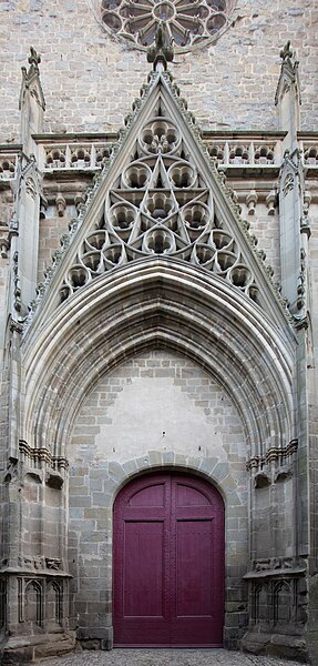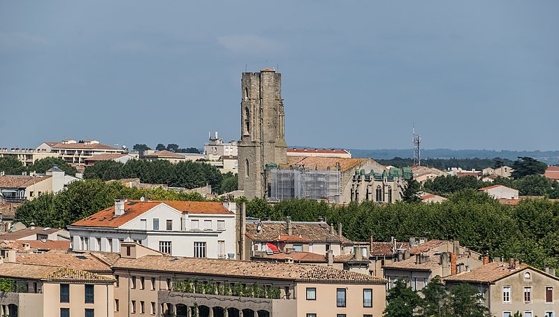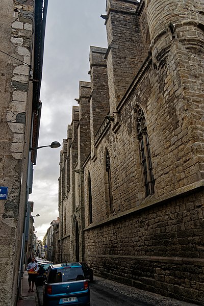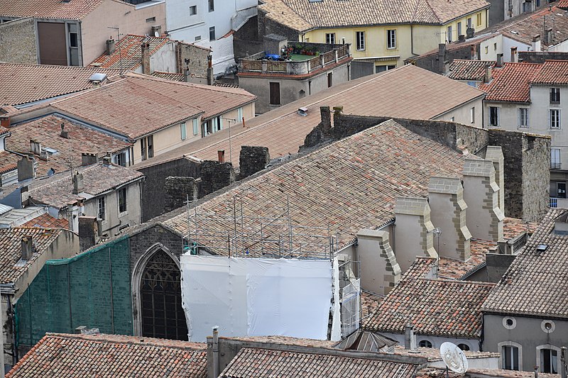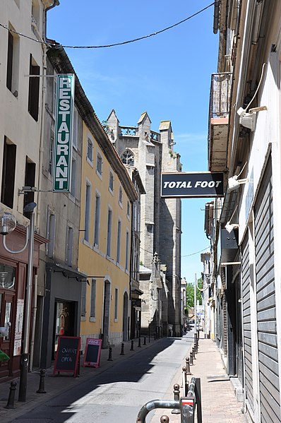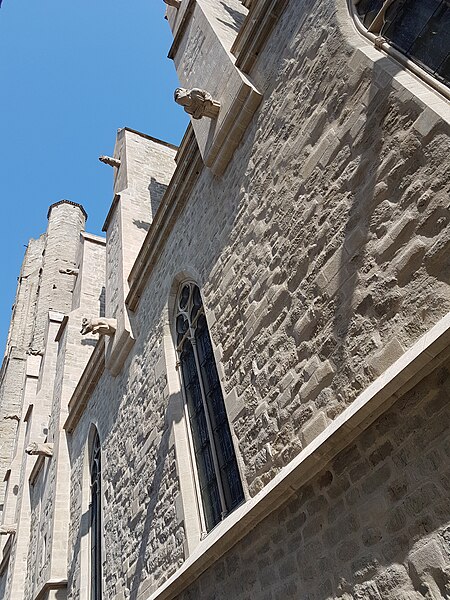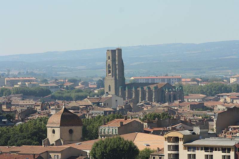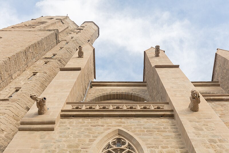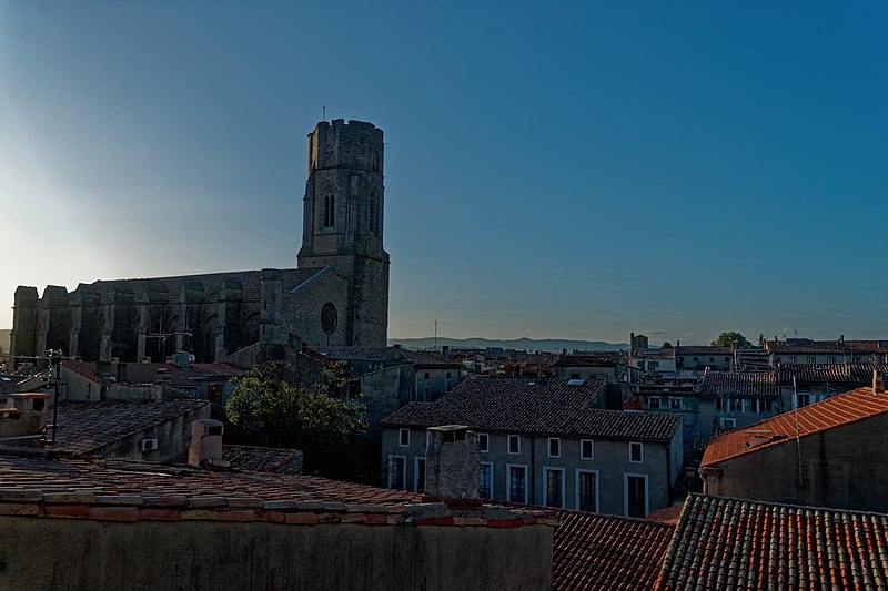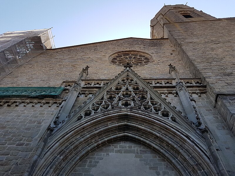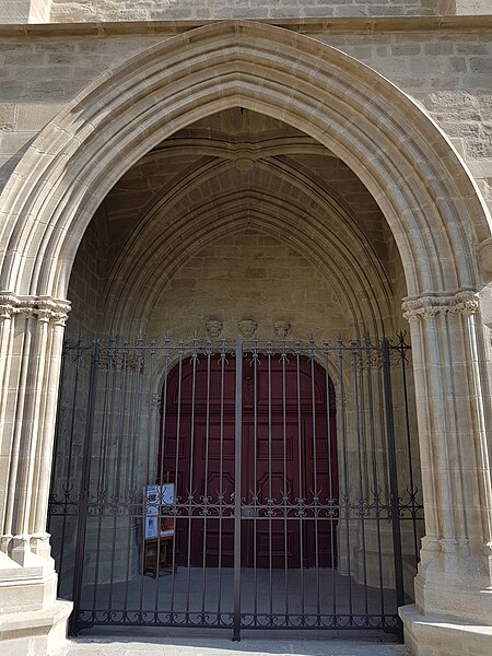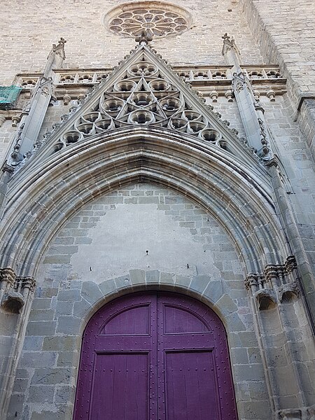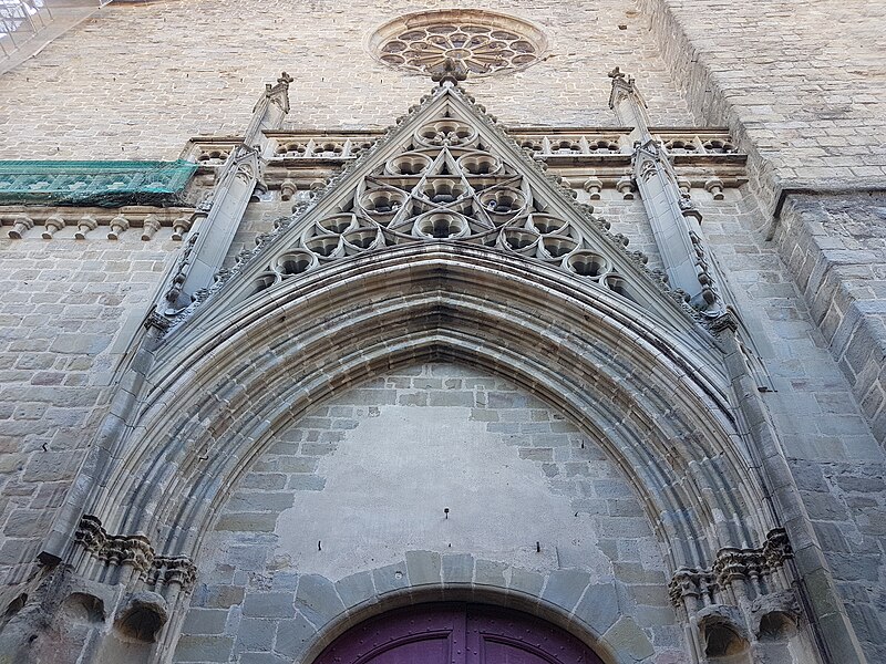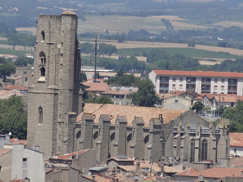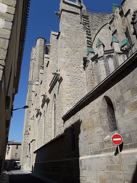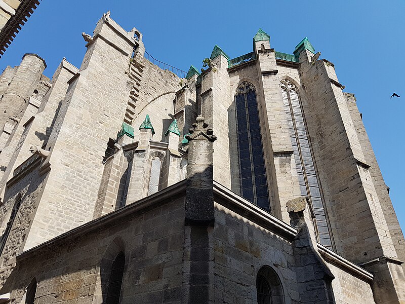 De plan languedocien, la nef, dont la largeur remarquable est de 20,15 mètres, est bordée de six chapelles au nord et de sept au sud ; sa portée en fait l'une des plus larges nefs gothiques, un statut conservé pendant de longues périodes. La construction de la nef s'étala sur environ soixante ans : les quatre premières travées présentent des sculptures de clés et chapiteaux caractéristiques de la première moitié du XIVe siècle, tandis que les deux dernières, plus tardives, laissent apparaître les prémices du décor flamboyant. Les chapelles latérales et le chœur conservent leur voûtement d'origine ; la nef, initialement couverte par une charpente reposant sur des arcs diaphragmes, fut voûtée après l'élévation de la tribune. Le chevet, de facture légèrement postérieure, et les sacristies respectent cependant le plan du XIVe siècle ; l'abside principale s'éclaire par cinq fenêtres à remplages flamboyants.