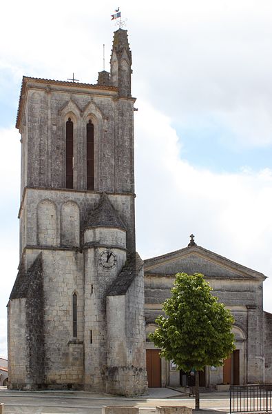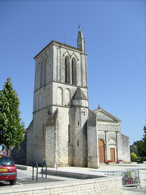 L'histoire du lieu remonte probablement au IXe siècle, lorsque la villa de « Miscaria » fut donnée à Saint-Seurin de Bordeaux, même si l'existence d'un édifice à cette époque n'est pas attestée. Une église est reconstruite au XIIe siècle, puis remaniée au siècle suivant sous l'impulsion des moines de Saint-Jean-d'Angély, qui édifièrent également un prieuré. Après des déprédations probables pendant la guerre de Cent Ans, un nouvel édifice est élevé vers 1480 dont subsiste le clocher ; l'église est ensuite sérieusement endommagée lors d'attaques et de combats au XVIIe siècle, perdant alors le couronnement de son clocher. Une construction simple succède à ces destructions ; sous ses voûtes fut prêté le serment fédératif le 14 juillet 1790. Jugée dégradée, l'église fit l'objet d'une reprise presque totale décidée en 1827, aboutissant à la réédification mentionnée en 1837 et suscitant des débats en raison du parti néo-classique retenu. Des campagnes de restauration eurent lieu en 1958 et des aménagements intérieurs furent réalisés pour tenir compte des décisions du concile Vatican II.
