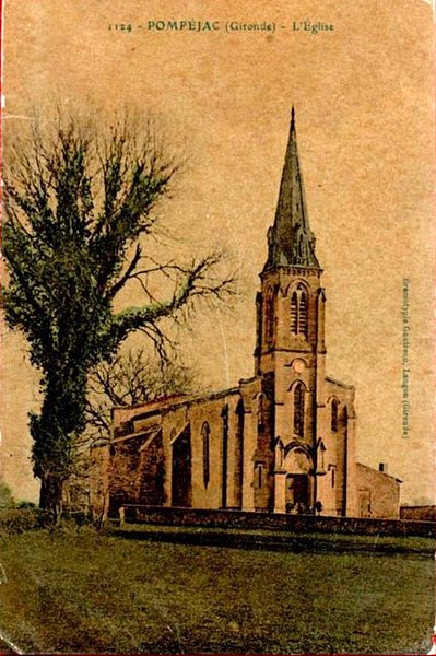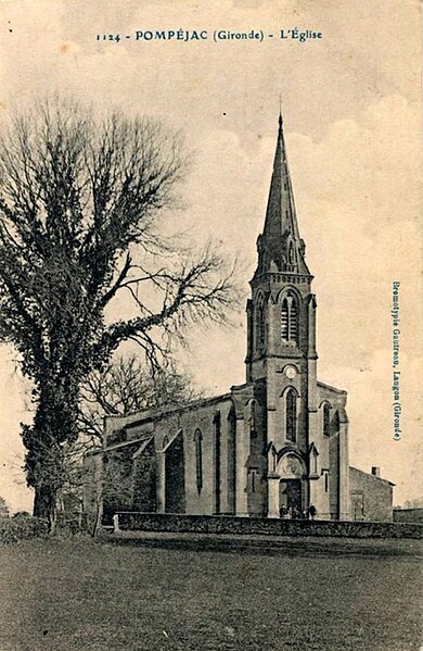 L'église Saint-Saturnin, située à Pompéjac dans le département de la Gironde, est un édifice catholique dont la partie la plus ancienne est l'abside. Celle-ci est à pans coupés et flanquée de contreforts aux angles. À l'intérieur, la croisée d'ogives repose sur de simples colonnes engagées munies de chapiteaux et de tailloirs polygonaux. L'église se trouve dans la partie sud du bourg, à proximité de la route départementale D9 qui mène à Préchac. Construite aux XIVe ou XVe siècles, elle a conservé son chevet et son abside d'époque, tandis que la nef et le clocher ont été reconstruits en 1869. L'abside est inscrite au titre des monuments historiques par arrêté du 24 décembre 1925. L'édifice abrite par ailleurs une cloche de bronze datée du XVe siècle, classée au titre des objets en 1916.