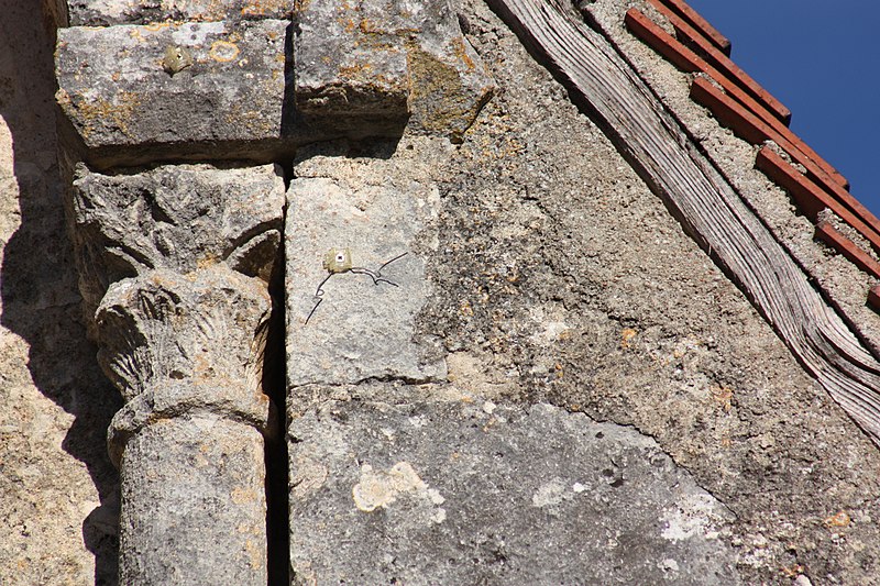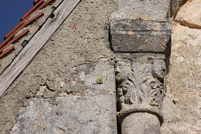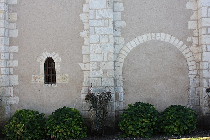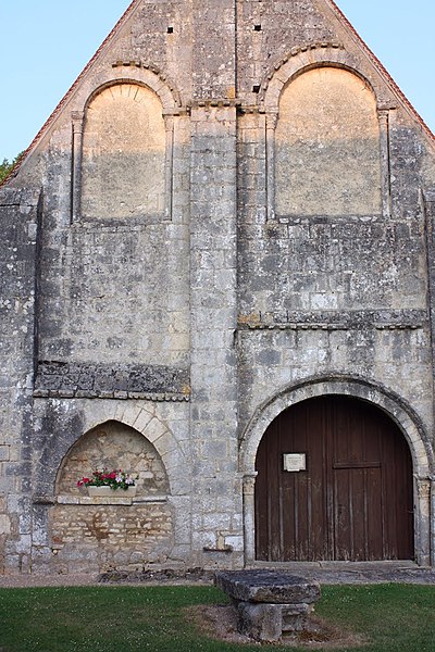 L'église primitive, élevée en 1149, n'a laissé que trois travées du mur extérieur du bas-côté nord, trois piles séparant la nef du bas-côté sud et les deux tiers de la façade. Chapelle de prieuré, elle offrait l'organisation d'une vaste église : bas-côtés voûtés en berceau et tribunes, configuration très rare dans la région au XIIe siècle. L'abside a totalement disparu. En 1173, l'édifice aurait été brûlé. Pendant les guerres de Religion, il fut détruit puis réutilisé. De nouvelles mutilations ont eu lieu en 1829. On note la présence de chapiteaux sculptés, ornés notamment d'amours nus, et une cloche du XVIe siècle qui mentionne la libération du territoire des armées huguenotes, après la destruction de l'église.