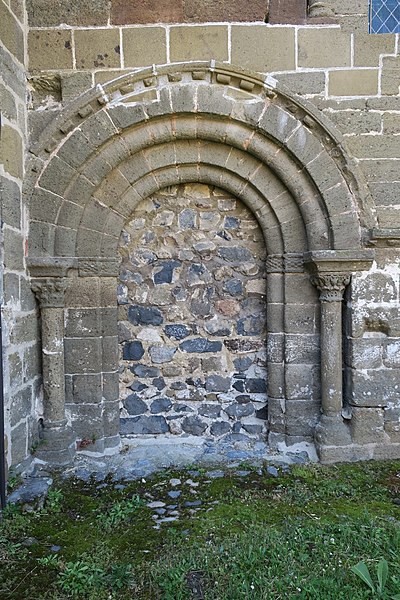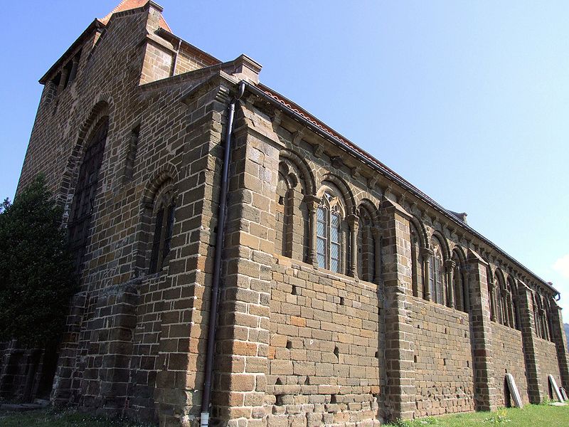 L'église Saint-Saturnin, aussi appelée Saint-Marcellin, est l'ancienne église abbatiale du prieuré de Chanteuges, sur la commune éponyme en Haute-Loire, région Auvergne-Rhône-Alpes. Le clocher date des travaux menés par l'abbé de La Chaise-Dieu, Jacques de Saint-Nectaire. Dépourvue de transept, l'abbatiale présente trois vaisseaux, chacun ouvrant sur une abside. La nef comporte deux portails — sur la façade occidentale et sur la troisième travée du bas-côté nord — qui n'offrent pas de décor sculpté majeur. Le portail occidental est bordé d'un tore extradossé et d'un rouleau, avec des colonnettes encastrées à l'angle de la maçonnerie ; il était autrefois précédé d'un avant-porche aujourd'hui disparu et est surmonté d'une vaste baie ogivale. Le portail nord, aujourd'hui muré, permettait l'accès des religieux depuis les bâtiments claustraux ; il est encadré de tores et rouleaux alternés et de colonnettes engagées, et il est rehaussé d'un cordon à billettes et d'impostes à damiers. La façade méridionale comporte un ensemble de fenêtres au décor similaire, les baies du haut-vaisseau et du bas-côté étant inscrites dans une arcature qui enveloppe des trilobes. À l'intérieur, les baies sont encadrées de colonnettes et la plupart des chapiteaux renvoient à l'Antiquité, représentant notamment des sirènes, des hommes nus saisissant des végétaux, des porte-brebis, des aigles aux ailes déployées et des oiseaux picorant. Sur les 62 chapiteaux sculptés, 14 sont figurés ; les autres sont principalement végétaux et dérivent du corinthien. Les voûtes d'arêtes des bas-côtés sont d'origine. Parmi les chapiteaux figurés se distinguent des chefs-d'œuvre du Haut-Allier, proches de ceux de la basilique Saint-Julien de Brioude et de l'abbaye de Mozac : on y reconnaît un porteur d'agneau, symbole d'humilité et image du Christ et des croyants, ainsi qu'une scène dénonçant l'avarice ou l'usure, où un personnage au sac riche est entouré de vouivres gardiennes d'un trésor. Ces œuvres ont été rapprochées de l'atelier du meilleur sculpteur de la basilique Saint-Julien de Brioude, tandis que d'autres chapiteaux évoquent ceux de l'église Saint-Georges de Saint-Paulien. L'église est classée au titre des monuments historiques par la liste de 1840.