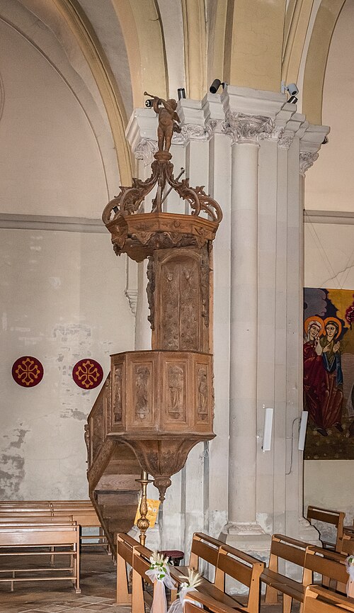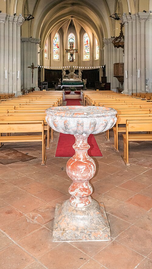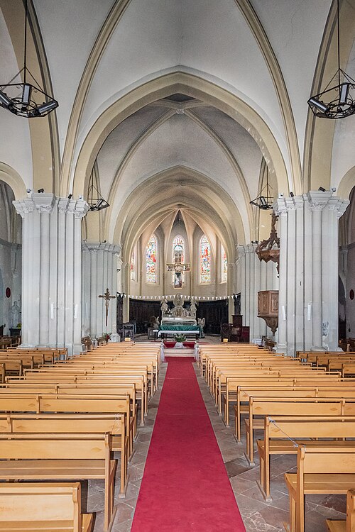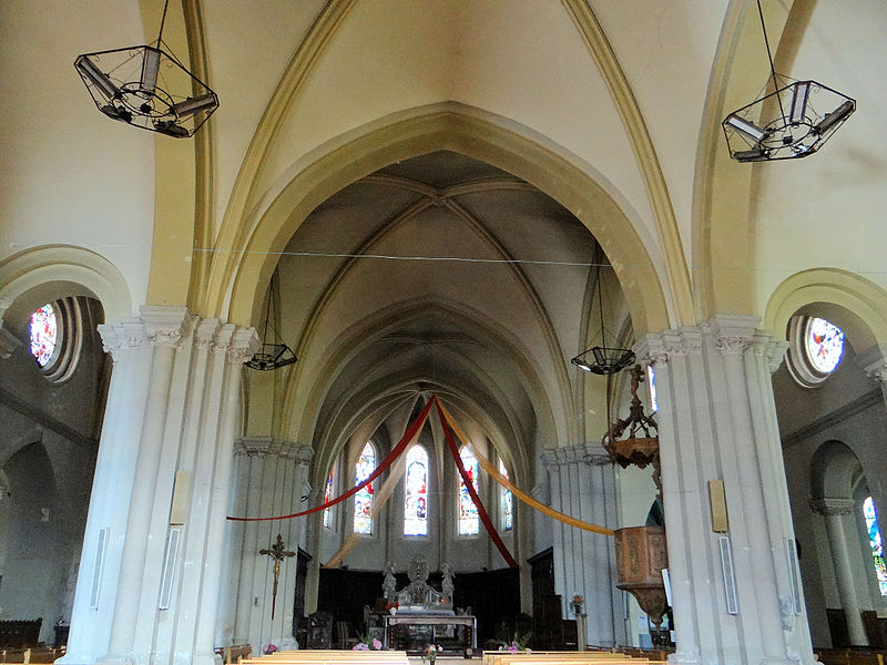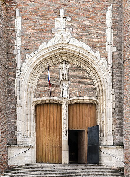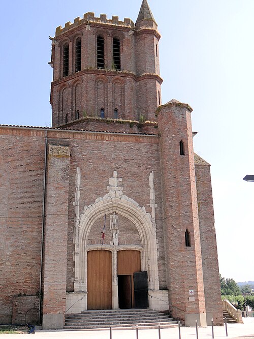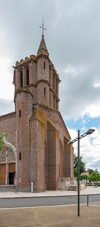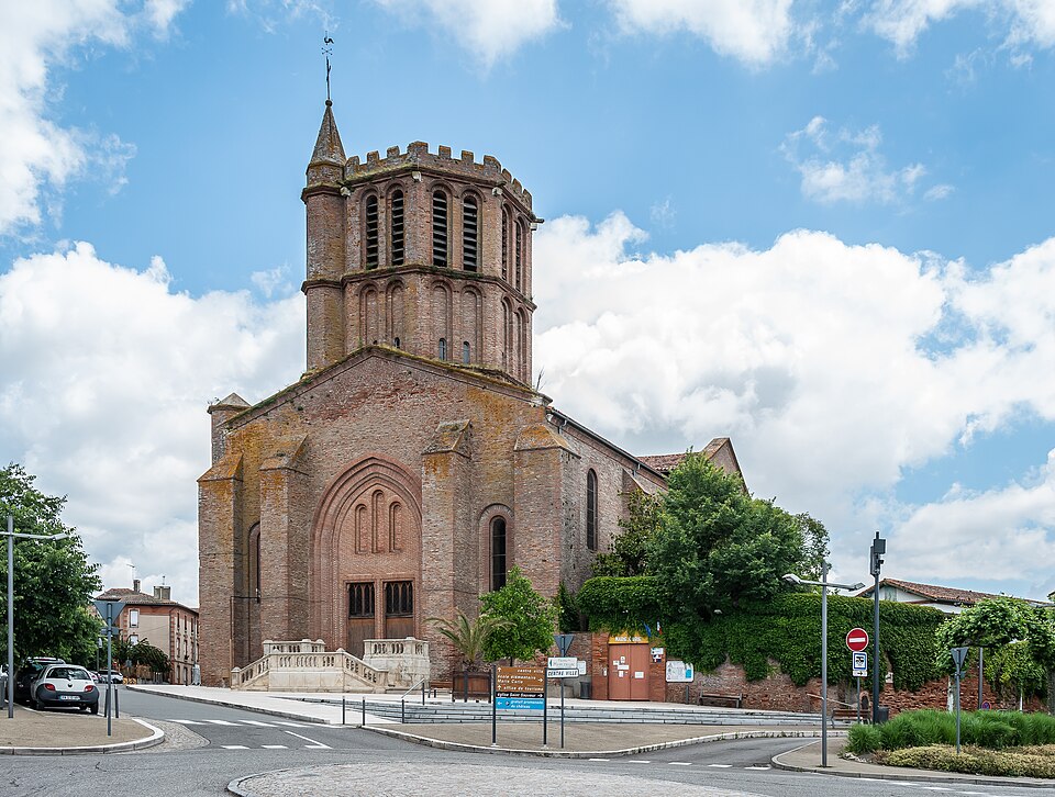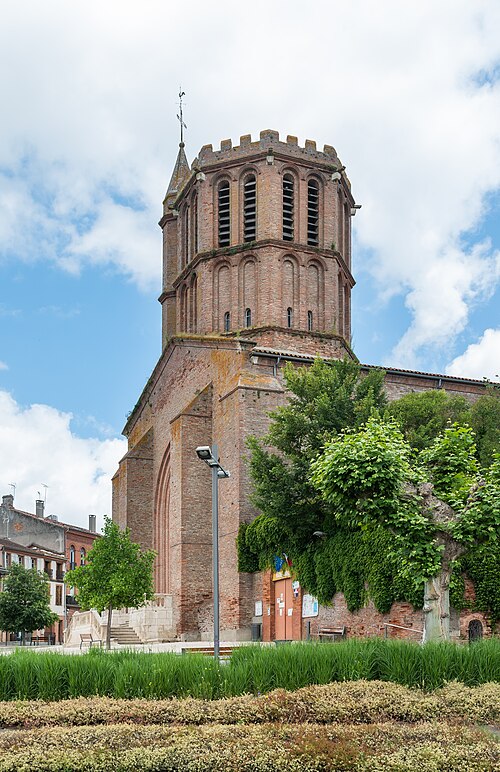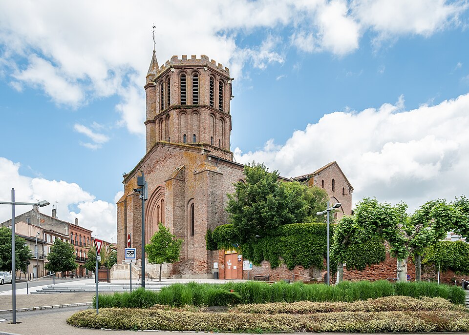 L'église Saint-Sauveur, située place de la Raison à Castelsarrasin (Tarn-et-Garonne), dépendait autrefois du prieuré de l'abbaye de Moissac. Mentionnée dès 961 lors d'une donation de Raymond II de Rouergue, elle fut à nouveau confirmée au monastère par un acte de 1155. L'édifice actuel date essentiellement du milieu du XIIIe siècle : une bulle d'Innocent IV de 1254 incite au financement des travaux, et la reconstruction priorale menée sous la direction de frère Guillaume paraît achevée vers 1260. De plan transitionnel, l'église présente trois nefs, un transept peu saillant et une voûte composée d'ogives et de berceaux transversaux ; des sculptures du XIIIe siècle subsistent autour du transept et dans la travée droite du chœur. Deux chapelles, probablement ajoutées au XIVe siècle, flanquent le chœur ; au XVe siècle on perce le portail nord et le chevet plat est remplacé à la fin du XVe siècle par l'abside à pans coupés qui existe aujourd'hui. Au sud de l'église se trouvaient le prieuré, le cloître et la maison du prieur ; le cloître fut détruit en 1769 et quelques chapiteaux qui en proviennent seraient conservés dans la région. Le prieuré décline et les religieux quittent les lieux en 1625, puis il disparaît définitivement à la fin du XVIIIe siècle. Pendant la Révolution l'église est utilisée comme Temple de la Raison entre 1793 et 1795, avant d'être rendue au culte catholique. Des travaux de confortation ont été menés au XVIIIe siècle, notamment sur la voûte et les piliers du clocher, et le cimetière paroissial est abandonné avant 1836. Le XIXe siècle apporte de nombreuses transformations : pose d'un nouveau carrelage en 1814, renouvellement des vitraux, création d'un baldaquin par Loubens pour le maître-autel et interventions successives sur les chapelles ; en 1839 Pédoya exécute un décor peint sur les voûtes de la nef. Les restaurations importantes de la seconde moitié du XIXe siècle comprennent la reconstruction du clocher et de la première travée de la nef sous la responsabilité des architectes Théodore Olivier et Jean-Jacques Esquié, puis la reprise des travaux par Louis Calmettes à partir de 1868 ; Spinedi réalise en 1876 un pavement en mosaïque dans le sanctuaire et un programme de verrières historiées est mis en place. Les vitraux conservés proviennent notamment des ateliers de Joseph Villiet (1869, 1870, 1875), Louis Victor Gesta et Henri Feur (1882, 1895), ainsi que des ateliers Bordieu et Bornier ; Villiet a probablement réalisé les rosaces du transept. Le décor peint a fait l'objet d'enquêtes et de campagnes successives : des fragments du XIIIe siècle ont été retrouvés, des décors du chœur et des chapelles ont été réalisés ou repris aux XIXe et début du XXe siècle, Loubens et les frères Pedoya figurent parmi les auteurs de ces travaux, puis un blanchiment généralisé intervient au milieu du XXe siècle. L'église conserve un mobilier baroque important provenant de l'abbaye de Belleperche, dont le maître-autel acquis en 1797, des stalles et le buffet d'orgue classé, et abrite les reliques de saint Alpinien ainsi qu'un monument élevé à son souvenir en 1937. L'orgue, attribué au facteur Paul Chazelle, a fait l'objet d'une reconstruction au milieu du XIXe siècle et d'une restauration au XXe siècle. L'édifice est inscrit au titre des monuments historiques depuis le 31 juillet 2002.