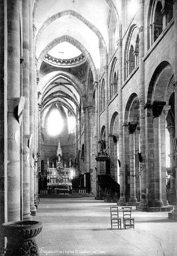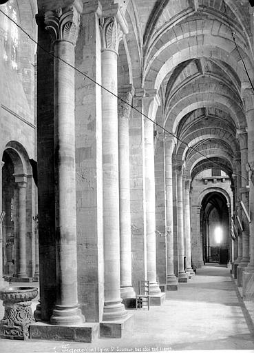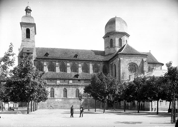 L'abbaye Saint-Sauveur de Figeac est l'église abbatiale de la commune de Figeac, dans le Lot (Occitanie). Elle a été fondée en 838 par le roi Pépin Ier d'Aquitaine à la demande de l'abbaye Sainte-Foy de Conques pour compenser l'éloignement de Conques et remplacer le monastère détruit de Jonant (ou Lunan). Les deux abbayes devaient rester indépendantes mais partager un abbé, ce qui suscita des tensions à Figeac ; les moines y forgèrent des actes pour faire remonter leur fondation à Pépin le Bref en 755 afin d'asseoir leur autonomie. Cette rivalité entraîna des vols de reliques : Conques chercha les reliques de sainte Foy à Agen, tandis que les moines de Figeac allèrent à Saintes pour s'emparer des reliques de saint Vivien et de saint Marcel, opérations attribuées à l'abbatiat d'Aymar. Une inscription rapporte que l'abbé Adacius (Adace) fit reconstruire une partie de l'église en avant de Saint-Vivien avant sa mort en 988. En 1074, pour rompre définitivement avec Conques, les moines de Figeac élurent abbé Hugues de Semur, abbé de Cluny, décision qui provoqua un conflit tranché au concile de Nîmes de 1096 : le pape Urbain II rattacha alors Figeac à Cluny. Après un siècle de tranquillité suivirent d'importantes restaurations à la fin du XIIe siècle. En 1240, l'abbaye s'opposa aux consuls de Figeac, qui refusèrent de payer certains droits et de fournir habillement et nourriture aux moines ; cette affirmation du pouvoir urbain affaiblit la discipline jusqu'à l'intervention de l'abbé de Cluny en 1314. Les reliques des deux saints protecteurs, saint Sauveur et saint Marcel, furent élevées en 1329. Au début du XVe siècle l'abbaye était en difficulté ; des travaux de consolidation du transept et du chœur furent entrepris en 1438, et, après la guerre de Cent Ans, le prieur Aimery de Roquemaurel témoigna de l'état de ruine des bâtiments. Désireuse d'indépendance, l'abbaye obtint son rattachement direct au Saint-Siège en 1496 par le pape Alexandre VI, mais les querelles se prolongèrent jusqu'en 1556, date à laquelle le monastère, réduit à douze moines, fut sécularisé sous l'abbé cardinal d'Armagnac. Les calvinistes prirent Figeac en 1576 et, en 1577, tentèrent de détruire l'abbatiale en sapant ses piliers avec des étais en bois incendiés, provoquant l'effondrement de piliers et de voûtes ; la partie sud fut moins atteinte. Les protestants restèrent maîtres de Figeac jusqu'en 1623 ; la reconstruction de l'église nécessita la remise en état complète de la partie nord, la réfection des hautes fenêtres du côté sud, des voûtes de la nef centrale et du collatéral sud, des piles de la croisée du transept, de l'abside, des travées droites du chœur, du bras sud du transept et de la chapelle Saint-Vivien. Les travaux commencèrent en 1625 par la reconstruction de l'élévation nord, ralentirent après 1636 et aboutirent notamment à l'achèvement des piles nord en 1642 ; les clés de voûte de la partie occidentale portent les dates 1701 et 1748. La reconstruction réutilisa des éléments de pierre récupérés dans l'abbatiale, parfois replacés de façon hétéroclite (chapiteaux romans sur colonnes gothiques), et s'inspira du style gothique ; le dôme de la croisée du transept fut reconstruit vers 1720. Le cloître et les bâtiments monastiques au sud furent probablement détruits pendant la Révolution, mais la salle capitulaire subsiste. En 1823 l'architecte Charles Malo fit disparaître le massif occidental sans relevé ; quelques chapiteaux furent sauvés grâce à l'intervention du baron Chaudruc de Crazannes et sont visibles dans l'église, dont un transformé en bénitier. La nef et les bas-côtés furent voûtés en 1829-1830. L'édifice est classé au titre des monuments historiques depuis la liste de 1840 et plusieurs objets y sont référencés dans la base Palissy, sans que ce classement ait empêché des restaurations menées sans contrôle dans la décennie suivante. Entre 1869 et 1900 l'abbé Massabie mena une campagne de restauration grâce à des dons et à une souscription ; en 1883 l'ancienne salle capitulaire fut aménagée en chapelle Notre-Dame-de-Pitié et l'architecte Jean Camille Formigé fit établir le presbytère au-dessus. La charpente aurait été réparée en 1908. En 1917 le dôme de la croisée s'effondra, entraînant la chute de la voûte de la travée orientale de la nef et de la première travée du bras nord du transept ; les réparations entreprises ensuite remplacèrent le dôme par une voûte d'ogives.