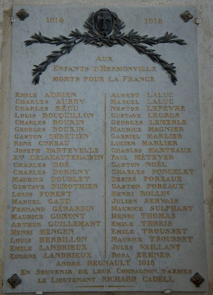 L'église Saint-Sauveur d'Hermonville, dans la Marne, est un édifice roman construit du XIIe au XIIIe siècle, majoritairement entre 1160 et 1190, et classé au titre des monuments historiques par arrêté de 1919. Son clocher excentré est antérieur et remonte au XIe siècle. L'architecture présente un porche champenois, un chevet plat et un cadran solaire sur la face sud daté du XIIe siècle. Le porche, ouvert par une suite de dix colonnes, était antérieurement ouvert seulement aux deux extrémités et sa façade comportait douze arcades ; l'ouverture centrale date du XVIe ou du XVIIe siècle. Sous le porche, une porte de style Renaissance donne accès à un escalier menant aux combles ; l'édifice comporte par ailleurs un escalier desservant le clocher. La nef et les bas-côtés sont plafonnés ; le plafond de la nef date de 1870. Le grand portail occidental en arc brisé est constitué de six colonnes reliées par trois tores ; le tympan en bois, représentant la Vierge à l'Enfant, est du XVIIIe siècle. L'orgue, classé, se trouve sur une tribune au revers de la façade occidentale et date du XIXe siècle. Dans la chapelle nord, un retable de l'Annonciation du XVIe siècle porte des traces de polychromie. Le maître-autel du XVIIIe siècle est bordé de quatre colonnes en marbre et surmonté d'un baldaquin doré ; l'autel est du même marbre. Le chœur comporte deux stalles en chêne de la même époque ainsi que deux consoles de style Louis XV. L'église conserve également un tableau représentant Charles Borromée guérissant les pestiférés et un chapiteau remarquable. Le monument rassemble ainsi des éléments et du mobilier s'échelonnant du XIIe au XIXe siècle.