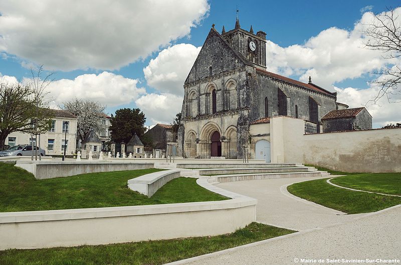 L'église Saint-Savinien, située sur la commune de Saint-Savinien en Saintonge (Charente-Maritime, Nouvelle-Aquitaine), est un édifice d'origine romane bâti entre les XIIe et XIIIe siècles. Le sanctuaire actuel succède à un ancien prieuré cité dans une charte de 1039, dont aucun vestige ne subsiste. La façade, la nef et le clocher sont classés monuments historiques depuis 1910 et le reste de l'édifice a été inscrit en 2014. Le plan est en croix latine avec une nef unique de trois travées voûtées en croisées d'ogives, prolongée par une abside en hémicycle. La nef est flanquée de deux croisillons voûtés en berceaux brisés ; l'abside se présente à l'extérieur en hémicycle tandis qu'à l'intérieur elle adopte cinq pans et une voûte nervurée en onze quartiers. La façade romane saintongeaise, sobre, s'organise en deux niveaux séparés par une corniche à modillons où alternent motifs animaliers et masques humains. Le niveau inférieur ouvre sur un portail en arc brisé à cinq voussures, encadré de deux arcatures aveugles. Le second niveau comporte une baie centrale à deux voussures soutenues par des colonnettes aux chapiteaux historiés, également flanquée d'arcatures aveugles, et l'ensemble est surmonté d'un pignon couronné d'une croix. Le clocher, érigé sur la base d'une chapelle située au nord, a été reconstruit au XIVe siècle dans le style gothique Plantagenêt et reste inachevé, ayant été conçu pour recevoir une flèche. Le remplage de la baie murée de la chapelle est rapproché des productions parisiennes du second quart du XIIIe siècle. L'église a beaucoup souffert pendant la guerre de Cent Ans puis pendant les guerres de religion et a fait l'objet de restaurations successives. Au XIXe siècle, l'édifice a été profondément remanié : le chevet abîmé fut remplacé par une abside, les voûtes furent couvertes d'ogives et une tribune fut édifiée sous les curés Le Moal et Knutt. Pendant la Révolution, le croisillon nord servit de lieu de justice, de prétoire et de prison. La chapelle Notre-Dame, au nord, conserve seize statues représentant des personnages bibliques.
