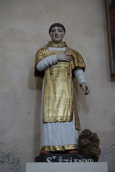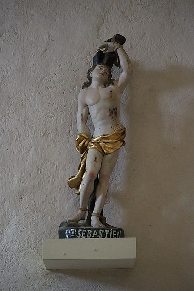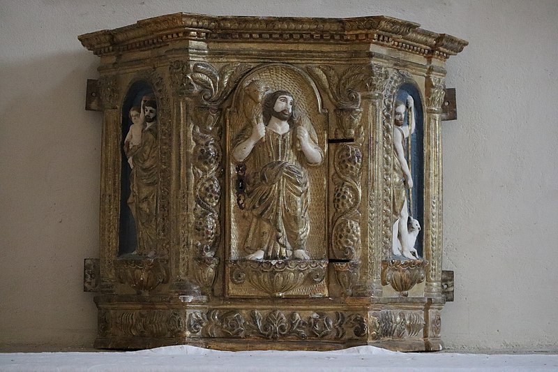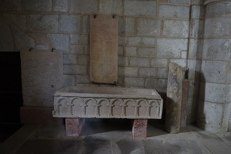 Le mobilier conserve dans le narthex un cercueil du XIe siècle muni d'un emboîtement pour la tête et orné d'arcatures extérieures, ainsi que deux plaques tumulaires : l'une richement ornée d'un chrisme et attribuée par certains à un sarcophage d'époque mérovingienne, l'autre carolingienne, enrichie de pampres. On y trouve également un bénitier en marbre quadrilobé et des fonts baptismaux.