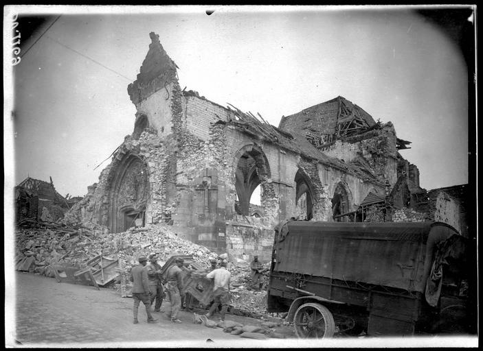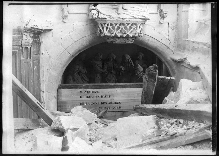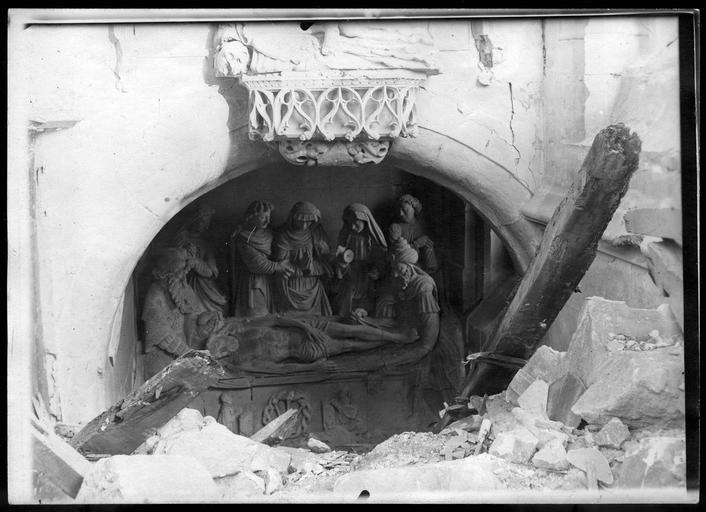 L'église Saint‑Sépulcre de Montdidier, située en centre‑ville, trouve son origine dans les croisades. Payen de Montdidier, présenté comme l'un des fondateurs de l'ordre des Templiers (à ne pas confondre avec Hugues de Payns), participa avec Hugues Ier de Vermandois au siège de Jérusalem en 1099 ; à leur retour, ils offrirent à la commune deux fragments de la Vraie Croix, ce qui provoqua la construction d'une église dédiée au Saint‑Sépulcre pour les conserver. Un premier édifice fut édifié en 1146 mais se trouvait en dehors des remparts élevés sur l'ordre du roi Philippe Auguste. L'église fut détruite en 1411 puis reconstruite en 1419 à l'intérieur des remparts; jugée trop petite, elle fut remplacée par une nouvelle construction entreprise de 1510 à 1519, qui fut ensuite détruite par l'artillerie de Charles Quint en 1523. Gravement endommagée en 1918 pendant la Première Guerre mondiale, l'édifice fit l'objet d'une restauration pendant l'entre‑deux‑guerres : le gros œuvre s'acheva en 1935 et les vitraux furent posés en 1939. Classée monument historique en 1920, l'église subit encore des dommages en 1940 lors de la bataille de France et ne rouvrit au public qu'en 1960; ses vitraux furent restaurés dans les années 1970.