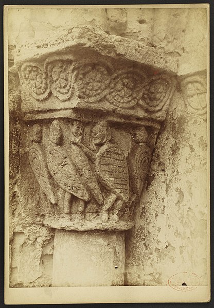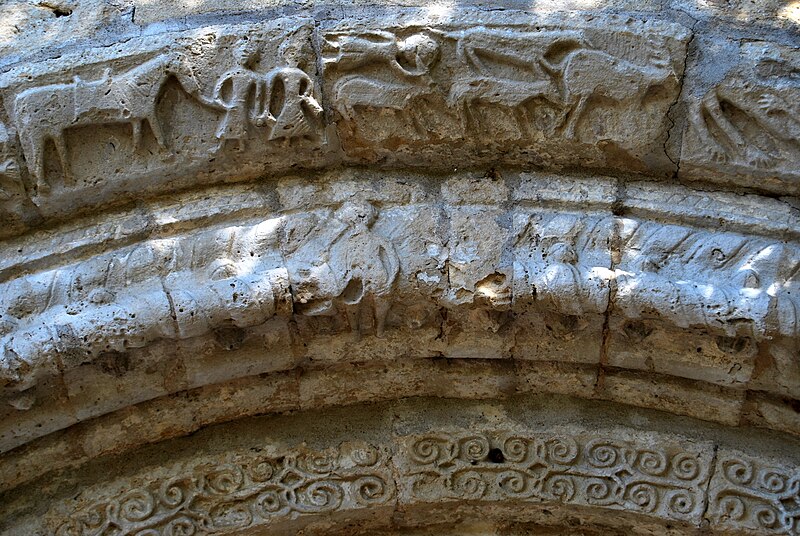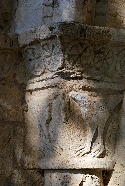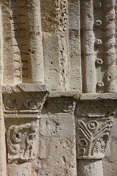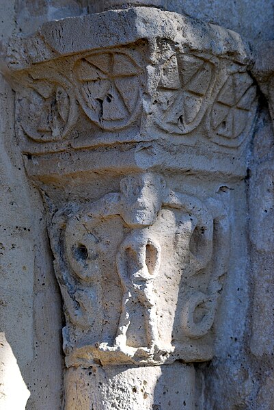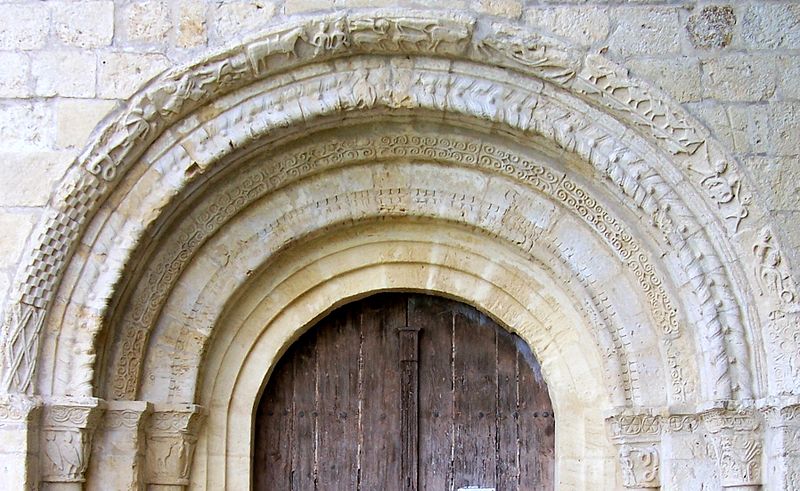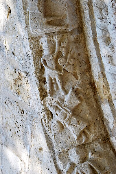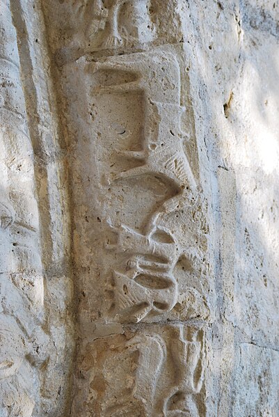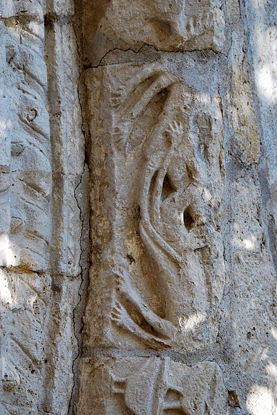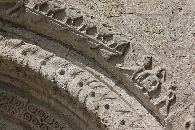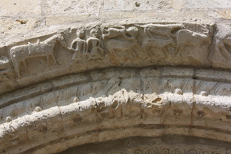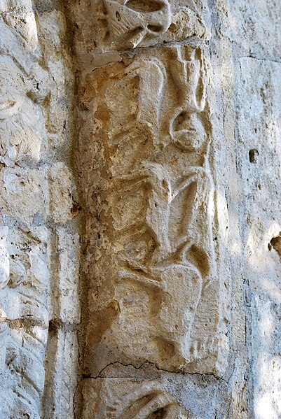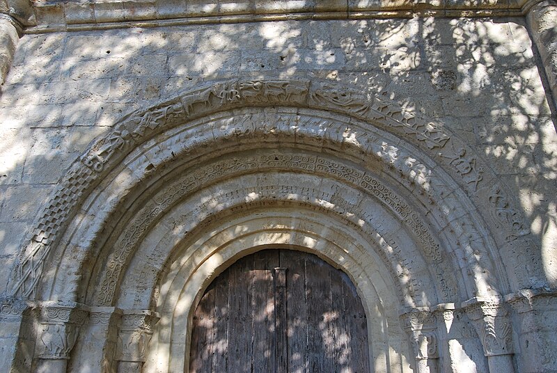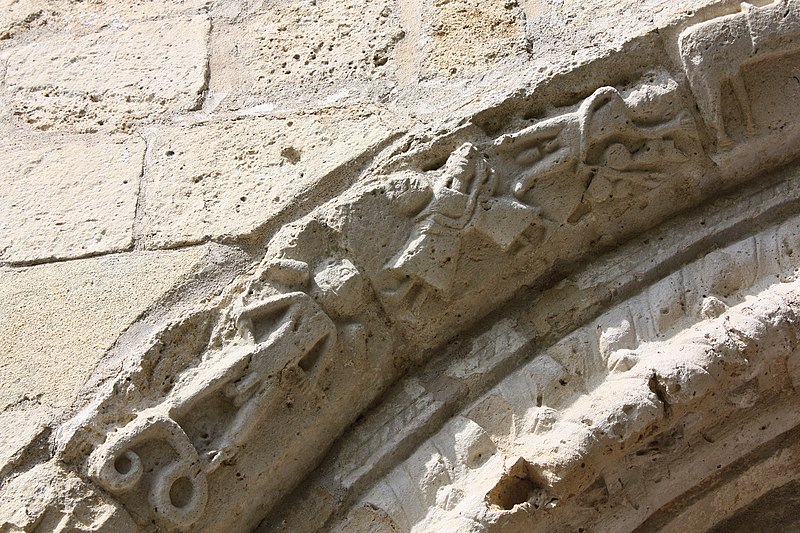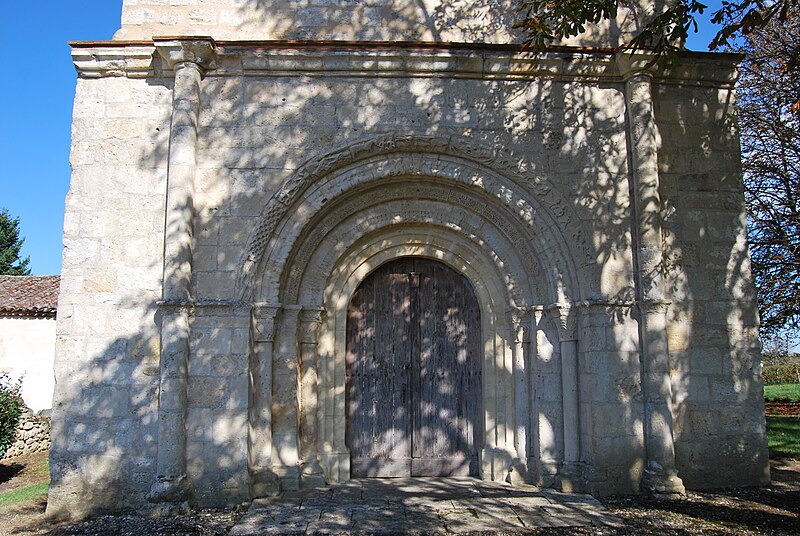 L'église Saint-Seurin de Gabarnac, en Gironde, se situe dans la partie nord du lieu-dit appelé "le Bourg", le long de la route communale qui traverse le village vers Loupiac et vers une voie entre Sainte-Croix-du-Mont et Mourens. L'édifice, d'apparence homogène, est daté par les auteurs soit du XIe siècle soit de la limite des XIIe et XIIIe siècles ; la sacristie a été bâtie au XVIIIe siècle. C'est un petit sanctuaire surplombant la vallée de la Garonne, à nef unique, chœur carré voûté en berceau brisé et chevet plat. La façade occidentale est coiffée d'un clocher-mur rectangulaire à trois baies ; en dehors de cette façade, l'édifice est presque dépourvu de décoration sculptée. L'église abrite une Pietà du XVIe siècle, classée au titre des Monuments historiques depuis 1971. L'édifice est inscrit pour son portail par arrêté du 21 novembre 1925 ; le portail, peut‑être de la fin du XIIe ou du début du XIIIe siècle, a été restauré en 1899. La façade occidentale a été restaurée en 1934 et le clocher‑mur en 2006. Le portail présente un faible ébrasement et quatre voussures — une fine sur imposte et trois larges en ressaut — qui retombent sur huit chapiteaux. Le répertoire ornemental des voussures (damiers, losanges, perles, etc.) est très abondant et dépasse en surface le programme figuré. Curieusement, la façade ne comporte aucun symbole chrétien ni référence biblique. L'archivolte extérieure se compose d'une frise en neuf épisodes entièrement profanes dont les descriptions alignées forment un synopsis proche du roman courtois, genre très en vogue à l'époque de la construction. Trois chapiteaux historiés subsistent et sont en lien direct avec les scènes de l'archivolte, ce qui suggère que les chapiteaux aujourd'hui disparus et un chapiteau géométrique remployé faisaient à l'origine partie du même programme narratif. L'emploi de textes et d'images profanes en langue d'oc ou d'oïl dans un lieu sacralisé était alors une innovation ; les sculptures de Gabarnac datent du premier quart du XIIe siècle. Les grandes œuvres littéraires de l'époque — Flamenca, Tristan et Iseut, Fénice et Cligès, le Roman de la Rose, le Roman d'Alexandre et la légende arthurienne — sont citées comme succès contemporains, mais le récit ayant inspiré les sculptures de Gabarnac demeure inconnu. Les sculptures des chapiteaux existants paraissent frustes, issues d'un atelier secondaire ou du travail d'apprentis. Côté nord, un chapiteau montre deux oiseaux efflanqués encadrant et picorant une pomme de pin, le tailloir étant orné de rouelles à six quartiers ; un autre représente quatre guerriers en file indienne dont les corps sont dissimulés derrière des écus pointus aux motifs différents, le troisième exhibant un objet cylindrique enroulé, peut‑être un étendard, tandis que les premiers claveaux géométriques sont des remplois tardifs. Côté sud, un chapiteau combine avarice et luxure : un personnage nu, à grosse tête, touche ses parties génitales pendant que deux grands serpents lui chuchotent, le tailloir étant décoré de rouelles ; un autre chapiteau sud, au décor purement géométrique de volutes et de rouelles et au tailloir à tiges feuillues entrelacées, présente un style d'inspiration XIe siècle mais une exécution de moindre qualité, ce qui laisse penser qu'il remplace une corbeille historiée d'origine. Les deux premières voussures sont non figurées ; sur le plat de la troisième, au claveau central, une femme nue touche sa vulve de la main gauche ; la sculpture est érodée et a peut‑être été martelée. Ce type d'image, jugé obscène au XIXe siècle, appartient à une typologie récurrente dans l'iconographie romane de l'arc atlantique et véhiculait un message moralisateur. L'archivolte raconte en neuf scènes une suite profane et moralisatrice souvent résumée comme "la chevauchée des amoureux qui se termine mal" ; au début de l'arc, des claveaux disparates à décor d'entrelacs et de damiers proviennent de réparations tardives. Dans les premières scènes, on voit un homme ithyphallique nu tenant un rouleau et une tige ou un serpent tandis qu'un long serpent commence à s'enrouler autour de sa jambe, puis un couple habillé couché l'un sur l'autre, et un deuxième homme ithyphallique avançant la jambe gauche, saluant peut‑être le couple et portant une tige feuillue à trois fruits, ses bottines gisant au sol. Le couple réapparaît en promenade main dans la main, la femme au visage partiellement martelé montrant de petits seins et un bandeau au poignet, le chevalier tenant son destrier harnaché comme à la fin du XIe siècle, puis un veneur à pied sonnant du cor tandis qu'un cerf est aux abois, association littéraire fréquente entre amour et chasse. Suivent deux animaux indéterminés à croupe haute aux cous entrelacés, puis des échassiers affrontés en haut et des volatiles processionnant en bas. Enfin, une scène montre l'exécution d'un homme présenté de face, tenant un objet rectangulaire pendant que le bourreau lève son cou pour la décapitation et qu'un troisième personnage tient la tête, et la dernière scène représente la pendaison d'une femme, un homme passant une corde autour de son cou comme pour un nœud coulant. L'ensemble de la façade forme un "sermon en pierre" dénonçant la luxure, l'avarice, l'amour interdit et leurs conséquences, et l'intrusion de la littérature profane dans cette petite église rurale de l'Entre‑deux‑Mers est particulièrement remarquable.
