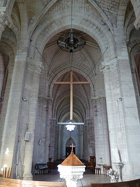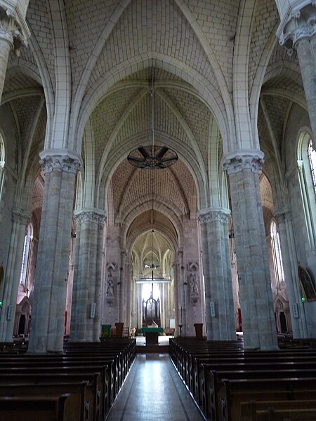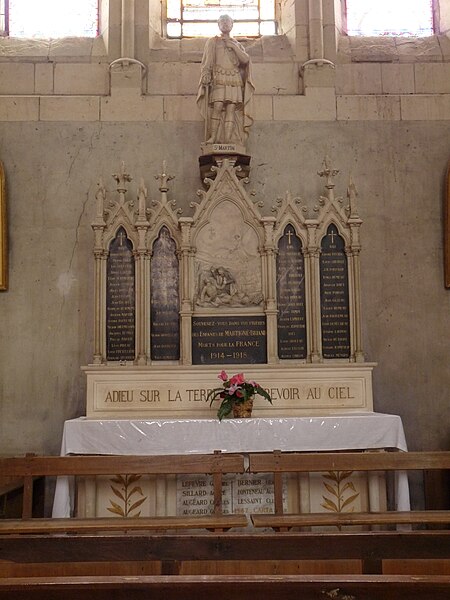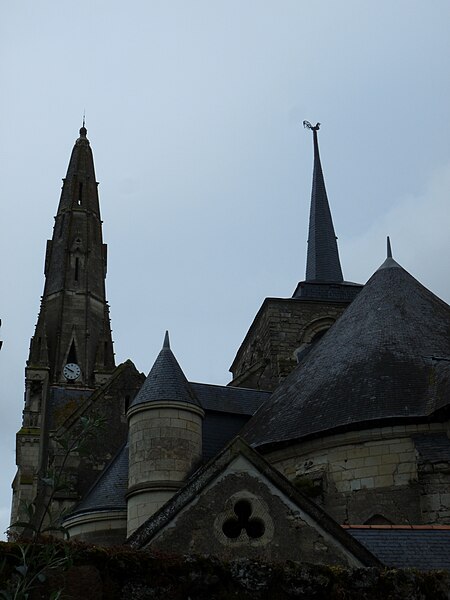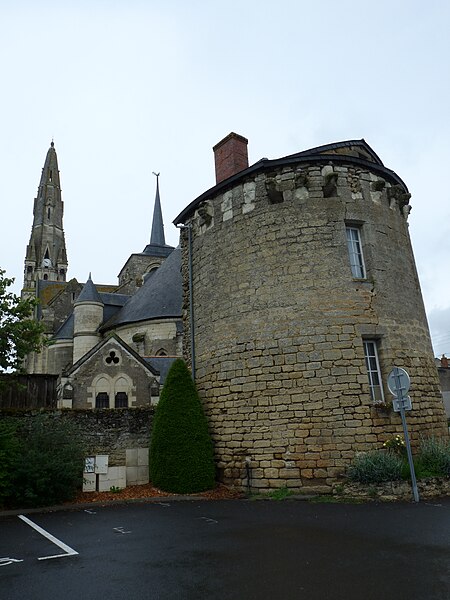 L’église Saint-Simplicien est historiquement liée au château de Martigné-Briand, édifié entre 1490 et 1514-1520, et constitue une composante du système défensif de la demeure. Des souterrains appareillés existent sous la cour du château, entre le logis et l’église. Le chevet, attenant au portail d’entrée, est intégré à ce dispositif défensif, et l’édifice, qui ferme la cour au nord, tient lieu de mur d’enceinte. Profondément remaniée au XIXe siècle par l’architecte diocésain René Eugène Dusouchay, elle a fait l’objet de travaux commencés en 1864 et achevés en 1874 par la construction d’un immense clocher. Parmi les éléments anciens conservés figurent le chœur hémi‑circulaire doté de mâchicoulis, un clocher du XIIIe siècle et l’abside, qui conserve des éléments d’un décor peint vraisemblablement du XVIIIe siècle.