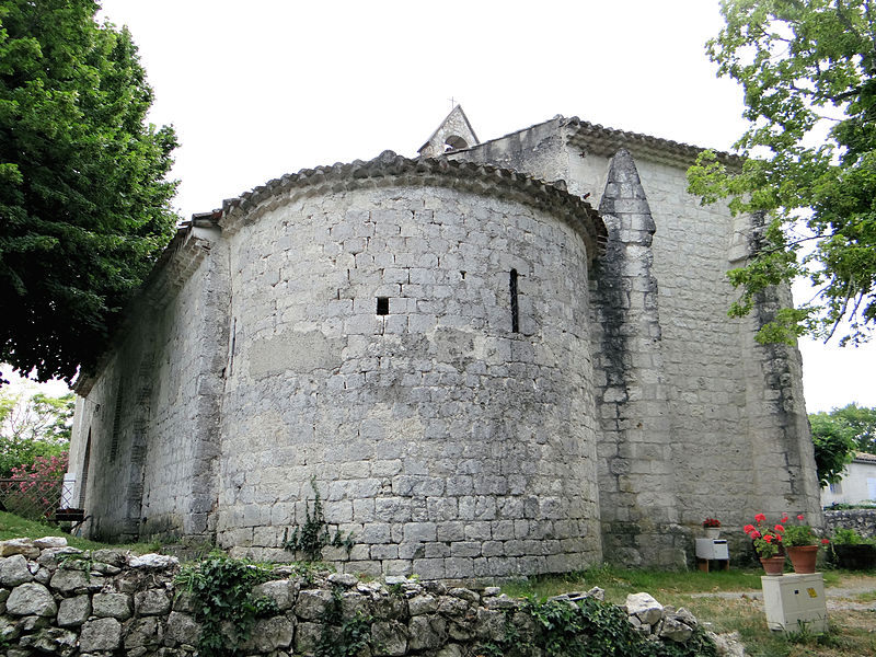 L'église, d'origine romane, se termine par une abside en hémicycle éclairée par une unique fenêtre à large ébrasement. L'entrée est marquée par un arc triomphal en plein cintre à double rouleau reposant sur une imposte. La nef, plus large, est couverte d'un lambris. Le chevet porte à l'extérieur quelques vestiges très effacés d'une litre funéraire. À la fin du XVe siècle fut élevée une vaste chapelle juxtaposée à l'édifice roman, qui forme comme une seconde église ; elle a été construite pour les Pellegrue, seigneurs de Montagudet. Cette chapelle comprend un chœur à cinq pans et une travée unique, couverts d'une voûte dont les ogives toriques filetées se prolongent sur les piliers par un faisceau de trois colonnettes également terminées par un plat. La naissance des arcs est marquée par un chapiteau à corbeille allongée, limité par deux bagues et orné de feuillage ou d'un masque humain. Le chœur du XIIe siècle constitue un vestige du premier édifice roman. Le mur sud a été refait en 1874.
