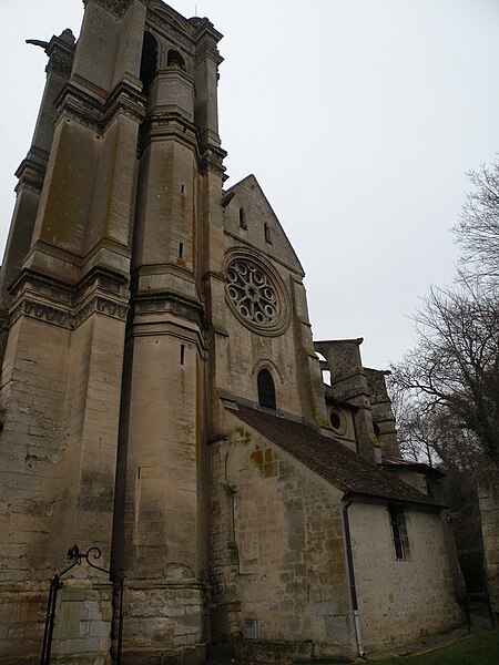 L'église Saint-Sulpice de Chars est une église catholique paroissiale située rue de l'Église, dans le village de Chars (Val‑d'Oise), dans la vallée de la Viosne au sein du Parc naturel régional du Vexin français. Édifiée lors d'une campagne de construction unique, elle voit la nef et les bas‑côtés achevés vers 1145 et la partie haute du chœur se mettre en place vers 1210. Son plan relève de l'apogée de l'architecture romane et l'élévation conserve, dans ses grandes lignes, la conception d'origine, tandis que le chœur illustre la transition vers le gothique primitif. L'élévation du chœur, structurée sur quatre niveaux, est d'une ambition exceptionnelle et ne trouve que quelques parallèles en France. L'intérieur dégage une grande élégance malgré des remaniements des XVIe et XVe siècles, dont la reconstruction de trois piles de la croisée du transept, et l'élévation d'un clocher de style Renaissance. La façade occidentale, tournée vers le bourg, s'ouvre sur un petit parvis entre la rue de l'Église et la rue de la Gloriette ; l'église est dégagée sur ses côtés, mais le chevet est adossé à un coteau boisé qui empêche une vue d'ensemble reculée et la proximité des maisons limite la perspective sur la façade sud. Aucun document antérieur au XIIe siècle n'est connu ; sous l'Ancien Régime la cure dépendait de l'archidiocèse de Rouen et fut successivement rattachée à des abbayes dont Saint‑Martin de Pontoise puis Saint‑Denis. Les observations architecturales montrent une interruption ou une reprise des travaux entre la fin du XIIe siècle et le début du XIIIe siècle, expliquant la coexistence d'éléments romans et gothiques. Les voûtes du déambulatoire et les absidioles remontent au XIIe siècle, tandis que des galeries en encorbellement et certaines nervures relèvent du siècle suivant. Après l'effondrement du clocher central au XVIe siècle, les doubleaux et les voûtes du transept et du chœur furent refaits et trois des quatre piles de la croisée reconstruits ; seule la pile nord‑est est restée intacte depuis le XIIe siècle. Un nouveau clocher fut élevé au dessus de la quatrième travée du bas‑côté sud : la date de 1562 est gravée au second étage et la balustrade porte la date d'achèvement vers 1576. Classée parmi les monuments historiques en 1840, l'église fut déclassée en 1845 après des travaux maladroits et continua à se dégrader jusqu'à une souscription locale complétée par l'engagement de plusieurs curés qui permirent d'importantes réparations en 1868–1870. Les interventions du XIXe siècle comprirent le renforcement des contreforts du chevet, la reconstruction d'arcs‑boutants et la reprise de piliers, mais aussi des opérations contestées comme l'élévation du niveau du sol de la nef qui entraîna l'enfouissement des bases des colonnes. La protection au titre des monuments historiques fut rétablie par décret en 1912 ; des travaux subventionnés au XXe siècle firent restaurer le clocher en 1925, réparer le pourtour du chevet et remplacer après 1944 les vitraux endommagés par des créations de Francis Chigot en 1956, tandis que toitures et maçonneries furent reprises jusqu'en 1965. Les restaurations anciennes suscitent encore des débats : si certains spécialistes reconnaissent que l'action des habitants a sauvé l'édifice, d'autres critiquent l'authenticité de certaines dispositions et l'impact des restaurations maladroites. Depuis la création du diocèse de Pontoise en 1966, Chars n'est plus une paroisse indépendante et dépend du groupement paroissial d'Avernes et Marines ; les messes dominicales y sont célébrées de façon irrégulière, quelques fois par an. Le plan de l'église associe une nef de quatre travées flanquée de bas‑côtés, un transept non saillant, un chœur de deux travées avec déambulatoire et cinq chapelles rayonnantes ; le vaisseau central conserve une largeur constante sur toute sa longueur. Les travées sont voûtées en ogives sauf l'abside et les absidioles, qui conservent des voûtes en compartiments ; la plupart des voûtes remaniées au XVIe siècle conservent un vocabulaire gothique flamboyant sobre. La nef, étroite (4,92 m entre murs, 4,16 m entre piliers), présente une élévation sur deux niveaux composée des grandes arcades et d'un étage de fenêtres hautes ; la lumière y reste tamisée en raison de petites baies en plein cintre haut placées et de l'ombre du clocher. Les chapiteaux des grandes arcades offrent une sculpture raffinée, dominée par des feuilles d'acanthe, des rinceaux et quelques chapiteaux historiés, motifs qui renvoient à l'influence de Saint‑Denis et d'autres ensembles régionaux. Le transept, plus élevé que la nef, développe triforia et galeries ouvertes sur combles ; le carré du transept présente aux angles des massifs octogonaux dus aux remaniements, à l'exception de la pile nord‑est d'origine. Le chœur, organisé sur quatre niveaux, associe une travée d'entrée trapézoïdale et une abside à cinq pans ; ses arcades à double rouleau, ses tailloirs octogonaux et ses oculi polylobés témoignent d'une conception ambitieuse qui anticipe les grands chœurs gothiques. Le déambulatoire conserve des voûtes d'ogives du XIIe siècle et les chapelles rayonnantes, remaniées au fil du temps, présentent des remplages flamboyants ; les clés de voûte portent parfois des écus mutilés et des inscriptions anciennes. À l'extérieur, la façade occidentale romane du milieu du XIIe siècle présente un portail en plein cintre à archivoltes décorées et une arcature plaquée surmontée d'un pignon ; la grande rosace du croisillon sud, intacte depuis la fin du XIIe siècle et d'environ 3,45 m de diamètre, est un élément remarquable et remarquablement conservé. Le clocher Renaissance, volumineux et dépourvu de flèche, s'ouvre par des baies d'abat‑sons et se distingue par des entablements et une tou