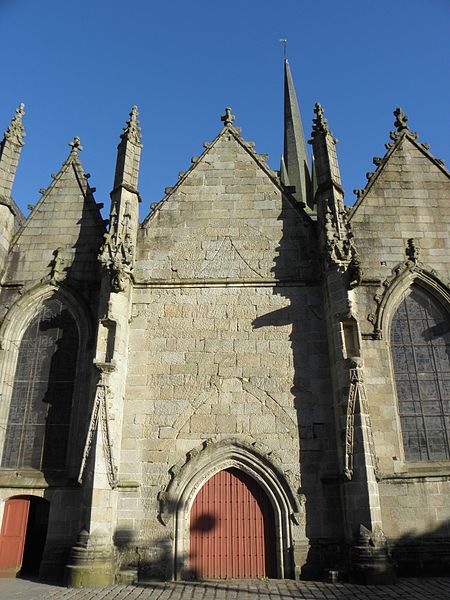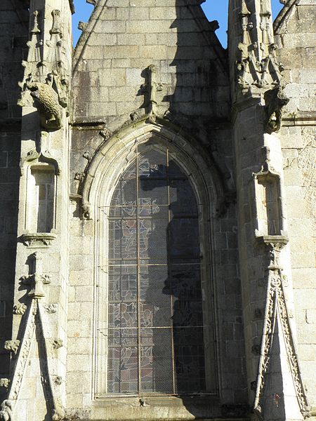 L'église Saint-Sulpice de Fougères, située au pied du château dans le quartier médiéval des tanneurs en Ille-et-Vilaine, fut la première église paroissiale de la ville et présente une masse irrégulière résultant de quatre siècles de construction. Fondée au XIe siècle, elle a été largement reconstruite à partir du XVe siècle : la nef, d'inspiration gothique flamboyant, fut remaniée progressivement, tandis que le chœur, commencé au XVIe siècle, ne fut achevé qu'en 1760. L'édifice se dresse entre les douves du château et l'ancien cours du Nançon, dans l'enclos Étienne de Fougères, ancien cimetière, et la paroisse accueille encore le culte catholique, avec une messe le samedi à 11h et des confessions de 10h à 11h. La fondation de la paroisse est liée à l'essor de la ville autour du château ; les seigneurs favorisèrent l'implantation de l'église sous le patronage de Sulpice Sévère et permirent l'installation d'un prieuré dépendant de l'abbaye de Marmoutiers, dont l'abbé présenta la cure pendant l'Ancien Régime. La construction actuelle, étalée de 1380 à 1760, résulte d'une série d'agrandissements et de remplacements successifs : chapelles latérales, clocher d'angle et pignons occidentaux furent ajoutés autour d'une nef initiale, tandis que le chœur fut prolongé et remanié selon des phases interrompues par des crises comme la peste. Malgré cette évolution irrégulière, la qualité de la stéréotomie et l'abondance de la sculpture en granite et en ardoise assurent une forte unité matérielle et décorative. À l'extérieur, la partie occidentale conserve le modèle des églises haut-bretonnes des XIVe–XVe siècles avec un large vaisseau aveugle et collatéraux à pignons multiples tandis que le chœur, à trois travées et chevet plat, est couvert sous un toit continu et orné d'un petit campanile hexagonal. Des sculptures remarquables ponctuent les façades et les contreforts : représentations des sept péchés capitaux, la fée Mélusine sur la porte sud et une gargouille dite « le satyre » figurent parmi les motifs sculptés. L'intérieur oppose une nef de quatre travées avec collatéraux et une élévation à un étage à un chœur à trois travées surélevé et séparé par un arc triomphal ; les collatéraux sont interrompus par deux imposants retables en granite du XVIe siècle. L'église conserve deux des derniers retables médiévaux de Bretagne, dont le retable nord associé au duc de Bretagne, et le retable des tanneurs, riche en iconographie de la Passion ; ces retables ont été classés au titre des immeubles en 1906. Le mobilier est surtout abondant aux XVIIe et XVIIIe siècles : le chœur a été meublé dans un style rocaille sur l'initiative de Jean Vallée entre 1757 et 1774, avec un maître-autel dessiné par La Fontaine-Jehanne et exécuté en marbres par Jean Rousseau, un tabernacle sculpté et un retable de Thomas Thory. Les stalles et les lambris contribuent à la théâtralisation de l'espace sacerdotal, tandis que plusieurs peintures et statues attribuées à l'École de Coypel et à Antonin Viollard complètent l'ensemble. Les vitraux datent principalement de 1885 à 1926, à l'exception de fragments de 1558 attribués au maître-verrier Pierre Symon, et l'église possède notamment un vitrail patriotique de Jeanne d'Arc offert par des familles locales après la Première Guerre mondiale. La statue de Notre-Dame-des-Marais, objet d'une dévotion ancienne et entourée d'une tradition locale, a connu de multiples translations et restaurations, a été couronnée en 1923 et faisait l'objet d'un pardon annuel ; elle a malheureusement été détruite le 28 février 2021. Les grandes-orgues, dont l'existence est attestée dès 1447, ont été reconstruites de 1919 à 1921 par Georges Gloton et modifiées au XXe siècle ; elles sont installées au fond du chœur, derrière une tenture, sans buffet visible. Monument majeur du patrimoine fougerais, l'église Saint-Sulpice a fait l'objet d'un classement au titre des monuments historiques le 26 septembre 1910.
