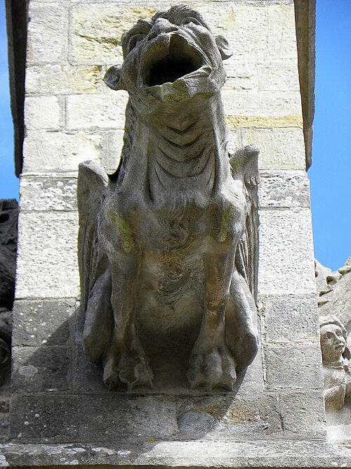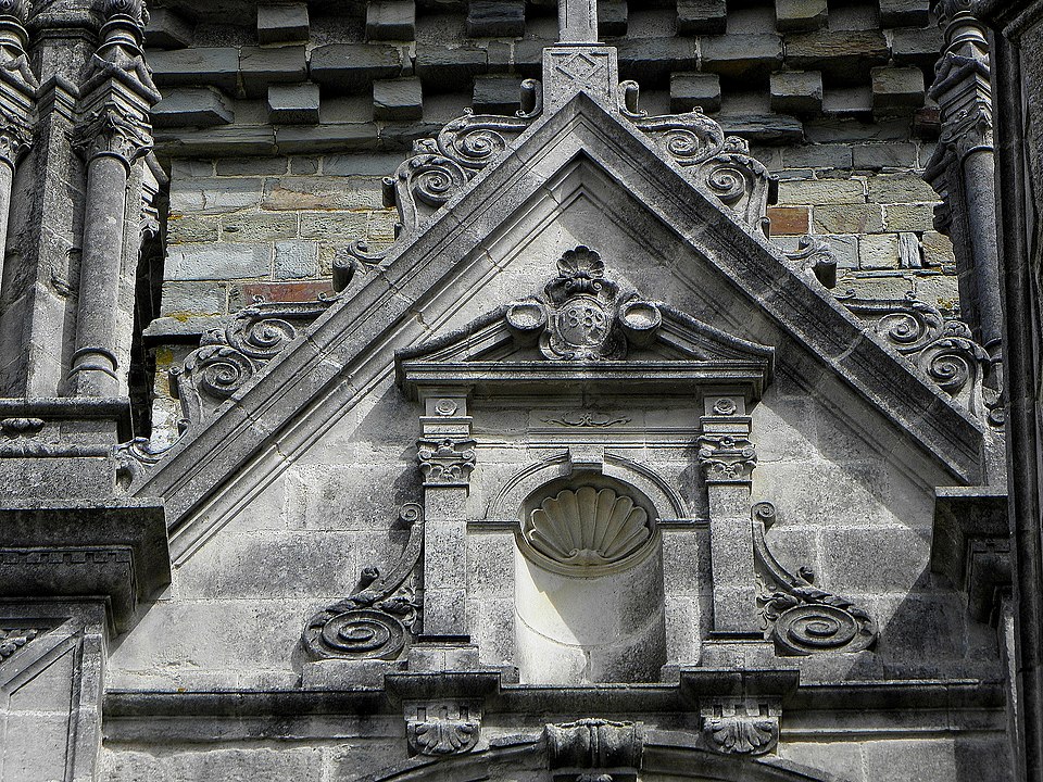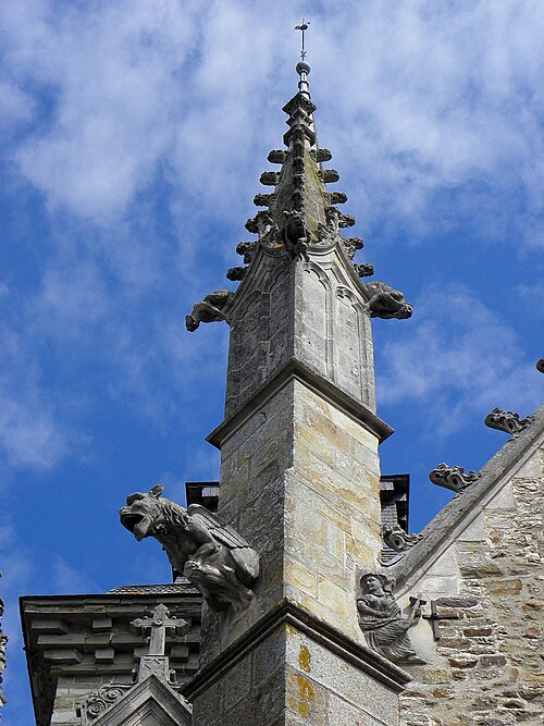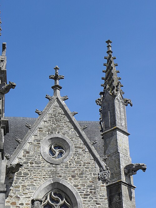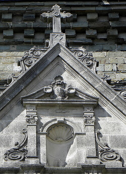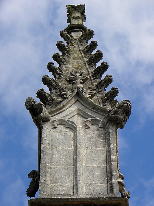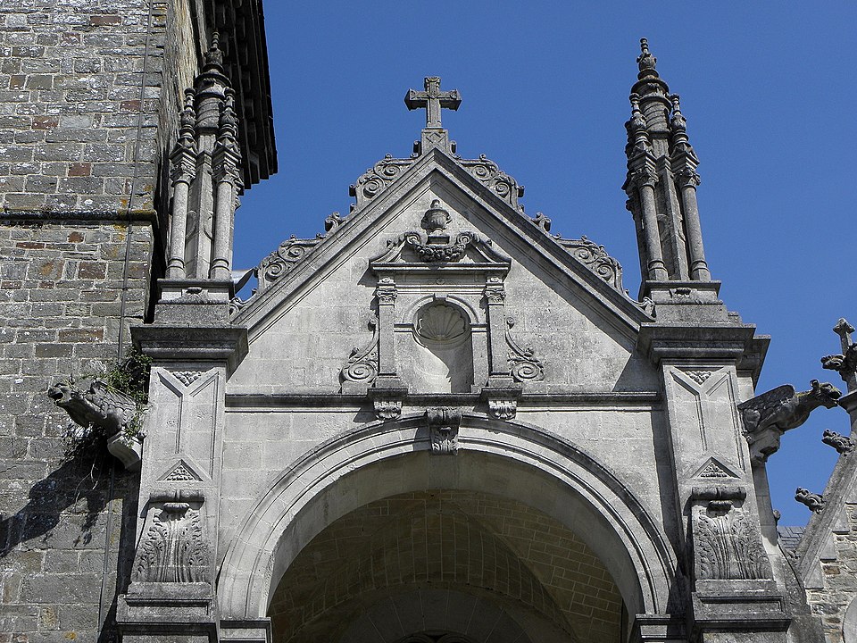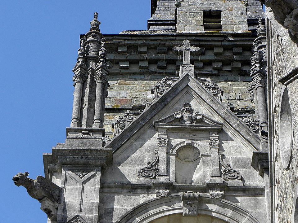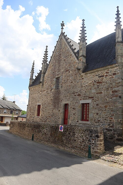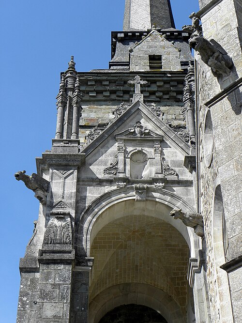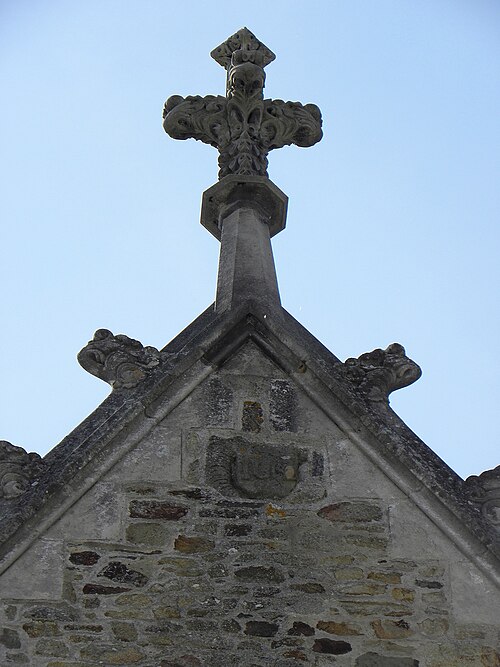 L'église Saint‑Sulpice de Gennes‑sur‑Seiche (Ille‑et‑Vilaine) est un édifice à trois nefs couvertes de voûtes en bois, chaque travée se marquant par un comble particulier et un pignon de façade. La nef est précédée d'un porche accolé au clocher ; le porche occidental actuel, reconstruit en 1882 par l'entrepreneur Gandon sous la direction d'Arthur Regnault, réemploie des éléments du porche de la seconde moitié du XVIe siècle. L'édifice prioral est mentionné dès le XIe siècle comme dépendant de l'abbaye Saint‑Serge d'Angers, et l'église actuelle résulte d'une reconstruction progressive aux XVIe et XVIIe siècles, avec notamment la tour‑porche, les chapelles latérales, le portail sud et la sacristie à étage portant les dates 1660 et 1662. Inscrite au titre des monuments historiques par arrêté du 14 octobre 1926, l'église se situe au sud du bourg de Gennes‑sur‑Seiche, sur une parcelle cadastrée B 467 d'environ 1 028 m2, à une centaine de mètres au nord de la Seiche. Le terrain, bordé à l'ouest par la rue Jean de Gennes et au sud et à l'est par la rue de l'église, est séparé au nord d'habitations par une étroite venelle. L'église est campée sur une butte artificielle correspondant à l'ancien cimetière ; la croix hosannière du placître, taillée dans le grès et posée sur un court fût de granite, rappelle cet usage. Cette croix fleuronnée du XVe siècle présente un quadrilobe orné à l'orient d'une Vierge à l'Enfant accompagnée d'une femme agenouillée et à l'occident d'un Christ en Croix surmontant la représentation d'un chevalier en prière sculptée sous le médaillon. La parcelle affiche une forte déclivité rattrapée par plusieurs escaliers : un escalier de huit degrés face à l'entrée principale, deux autres percés dans le mur de soutènement du placître de onze et six marches, une pente douce au nord‑ouest et une entrée au chevet donnant sur la venelle du flanc nord.