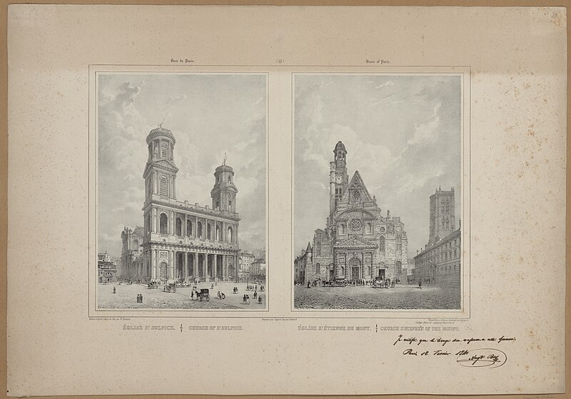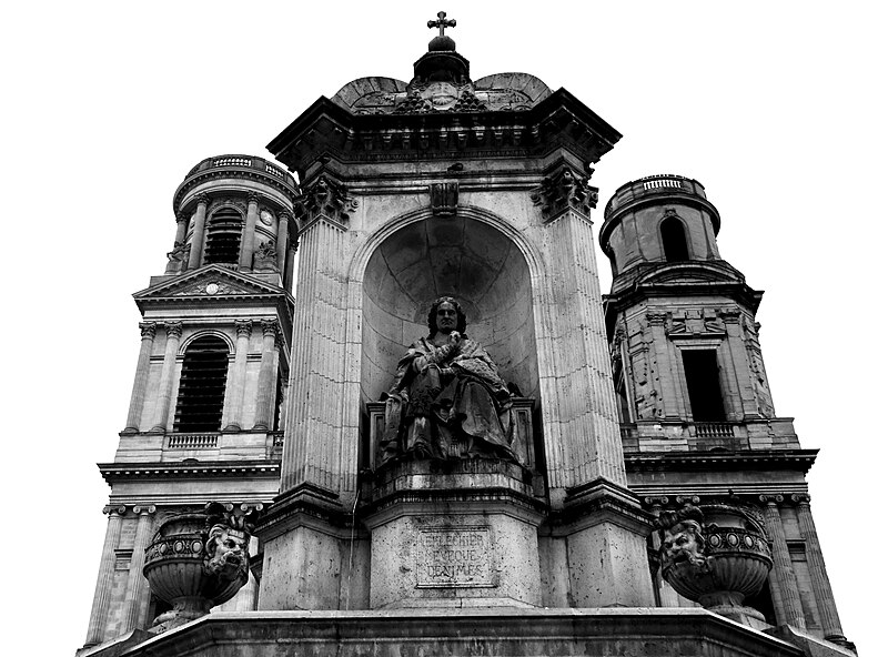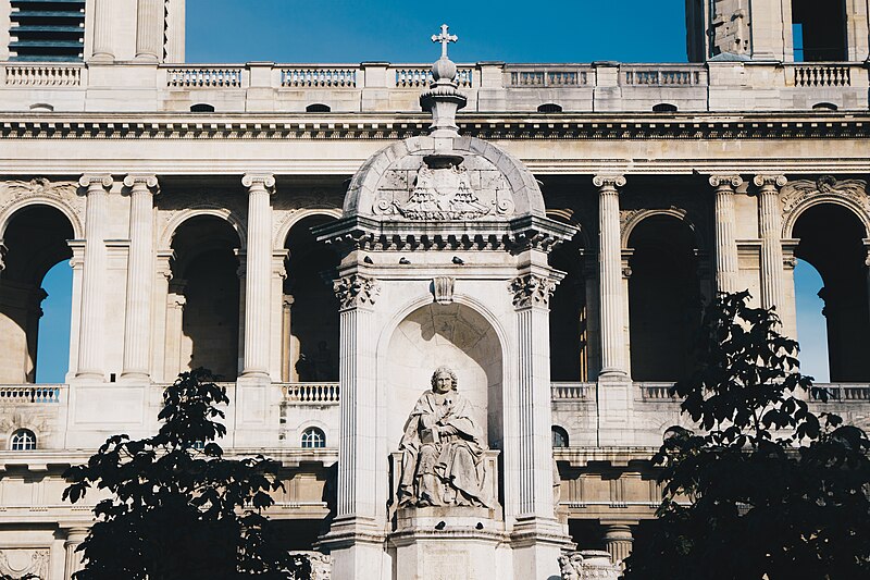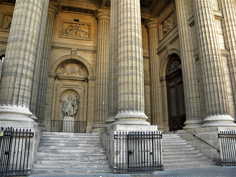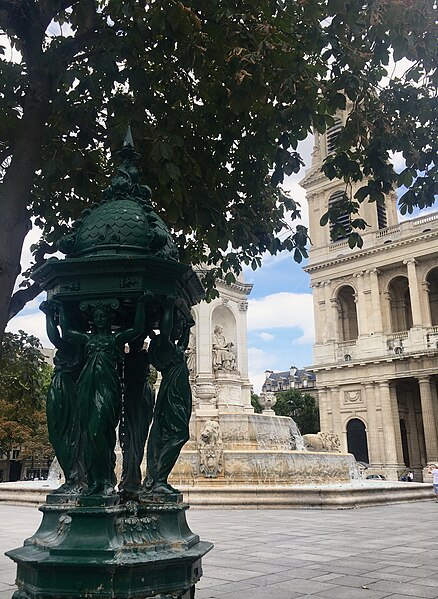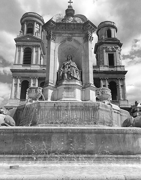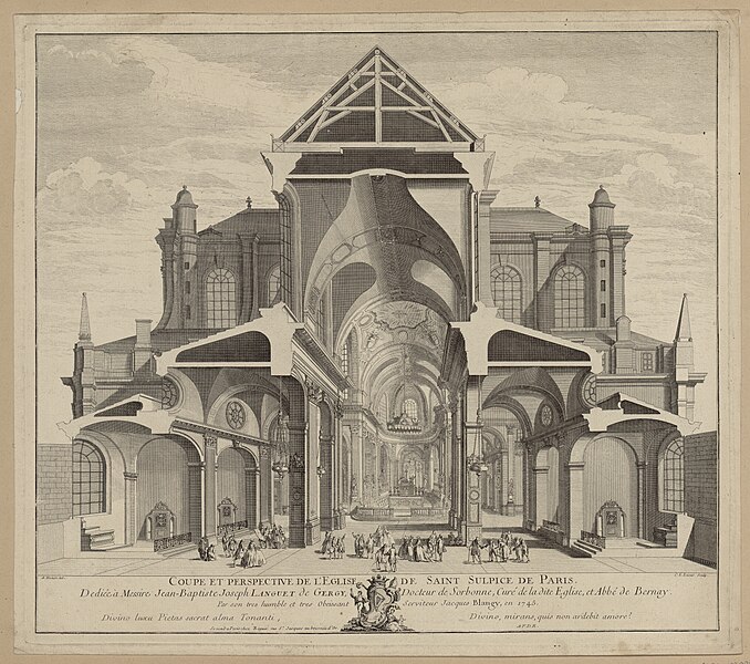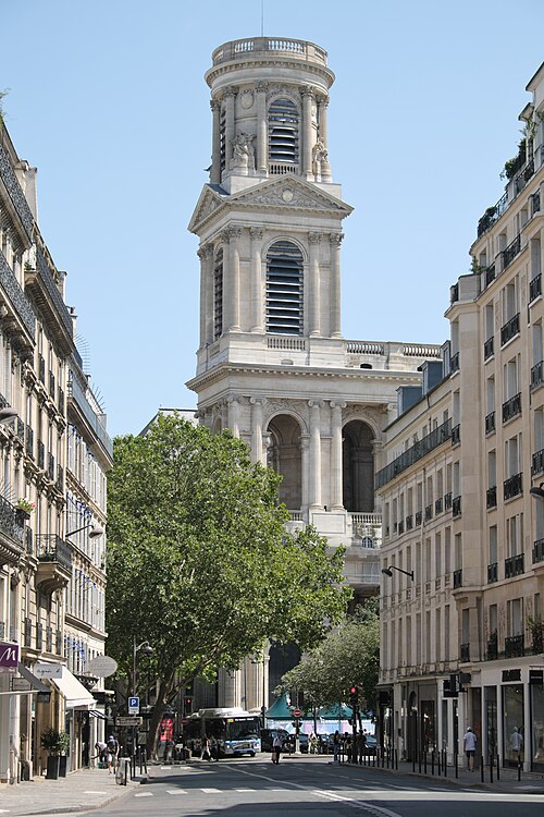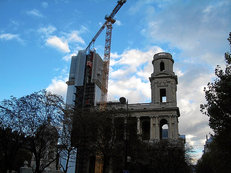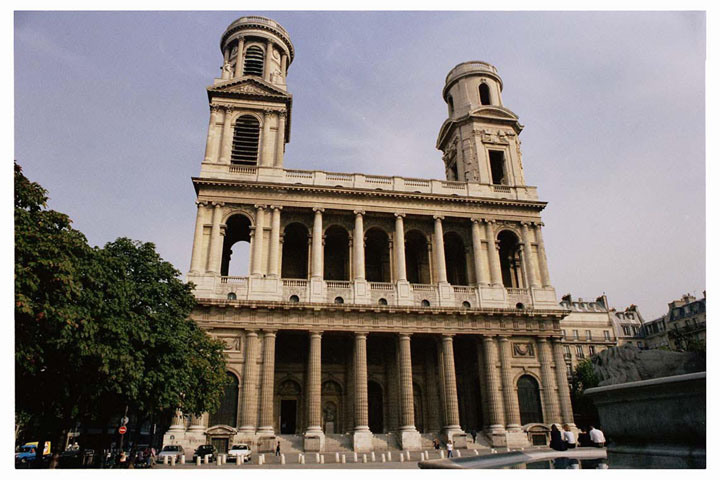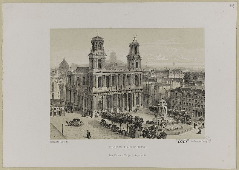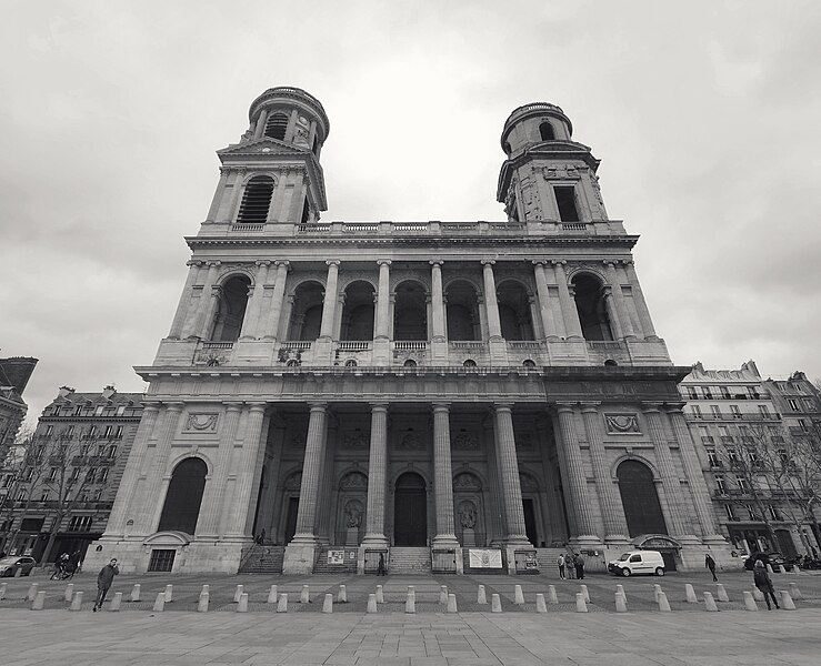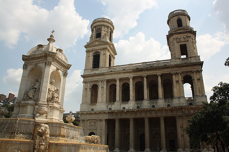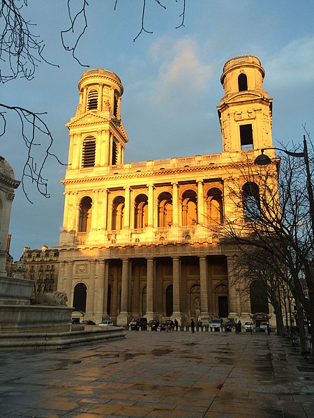 L'église Saint-Sulpice est une église paroissiale catholique du VIe arrondissement située place Saint‑Sulpice à Paris, au 2 rue Palatine, desservie par les stations de métro Saint‑Sulpice, Saint‑Germain‑des‑Prés, Odéon et Mabillon. Elle est dédiée à Sulpice le Pieux et classée au titre des monuments historiques depuis le 20 mai 1915. L'origine d'un lieu de culte à cet emplacement est ancienne mais imprécise : un oratoire est déjà cité en 807 et des fouilles ont mis au jour une pierre tombale du Xe siècle, tandis qu'une première église est attestée autour du XIIe siècle. La paroisse a longtemps été liée au domaine de l'abbaye de Saint‑Germain‑des‑Prés, puis s'est développée au fil des siècles, rendant nécessaire l'édification d'un bâtiment beaucoup plus vaste. À partir du XVIIe siècle, la reconstruction et l'agrandissement ont mobilisé successivement Christophe Gamard, Louis Le Vau, Daniel Gittard, Gilles‑Marie Oppenord, Giovanni Servandoni, Oudot de Maclaurin et Jean‑François Chalgrin ; la construction, interrompue à plusieurs reprises, s'étend sur plus d'un siècle. Le plan général reprend le modèle jésuite adapté à la liturgie post‑tridentine : nef unique bordée de chapelles communicantes, transept peu saillant et coupole à la croisée. La façade occidentale, conçue par Servandoni, oppose un péristyle néoclassique et deux tours inégales, résultat d'interventions successives et d'un achèvement échelonné entre le XVIIIe et le XIXe siècle, qui confère à l'édifice une apparente dissymétrie. Le décor du péristyle comprend sept bas‑reliefs sculptés par Michel‑Ange Slodtz et deux statues de saint Pierre et saint Paul réalisées par Émile Thomas. À l'intérieur, le chœur présente des statues d'Edmé Bouchardon et une importante série de chapelles ornées de peintures et fresques, dont les célèbres compositions d'Eugène Delacroix dans la chapelle des Saints‑Anges et la coupole peinte par Lemoyne dans la chapelle de la Vierge. L'édifice conserve aussi une Vierge de Jean‑Baptiste Pigalle, des boiseries, des peintures de divers artistes et un riche mobilier liturgique. Le grand orgue, issu d'un instrument de Clicquot et reconstruit par Aristide Cavaillé‑Coll, est l'un des plus importants de Paris ; l'église possède également un orgue de chœur construit par Cavaillé‑Coll. Le transept abrite un gnomon installé au XVIIIe siècle par des scientifiques de l'Observatoire de Paris pour déterminer précisément le méridien et la date de l'équinoxe de mars. La crypte a accueilli de nombreuses sépultures et monuments funéraires désormais disparus ; l'organiste Charles‑Marie Widor repose toutefois encore dans la crypte. Saint‑Sulpice a été le cadre de mariages et de funérailles de personnalités, et a accueilli en 2019, en raison de l'incendie de Notre‑Dame, certaines cérémonies diocésaines et les funérailles nationales de Jacques Chirac. L'église a subi un incendie criminel le 17 mars 2019 qui a endommagé notamment une verrière du transept sud et le portail sud, et a fait l'objet de campagnes de restauration au XXe et XXIe siècles, parmi lesquelles la remise en état de la tour nord entre 2006 et 2011 avec un budget important, ainsi que la restauration progressive des verrières, sculptures et décors peints depuis 2016. Des travaux ponctuels ont aussi porté sur les couvertures, la sécurité incendie et le réseau électrique, et des protections (filets) ont été posées en 2023 pour prévenir la chute de pierres. L'église demeure un lieu vivant de culte, de patrimoine et de culture, fréquentée pour ses œuvres d'art, son architecture et ses grandes orgues, et elle conserve la mémoire de son long chantier et de son rôle marqué dans l'histoire religieuse et sociale de Paris.