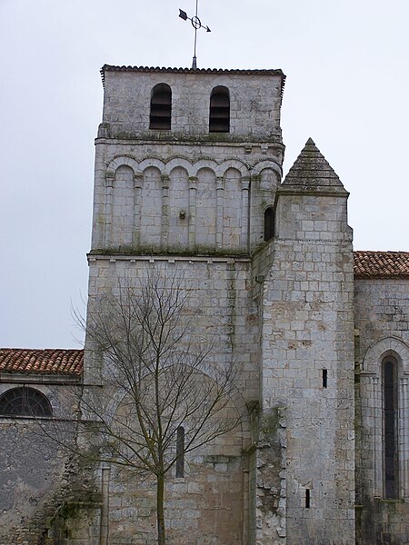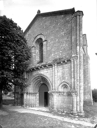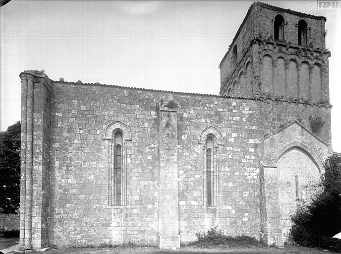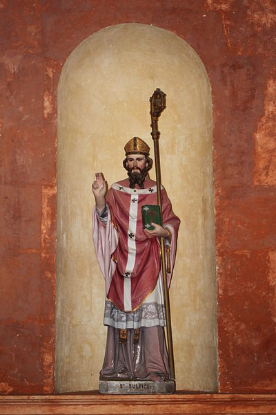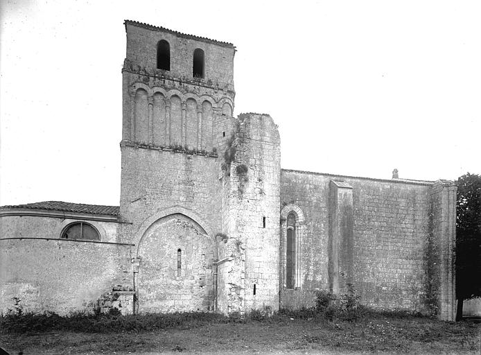 L'église paroissiale Saint-Sulpice se situe à Saint-Sulpice-de-Royan, en Charente-Maritime, dans le diocèse de La Rochelle et Saintes ; elle dépend du doyenné de Royan et du secteur pastoral Saint-Hilaire en Pays Royannais, et a pour saint patron Saint Sulpice. La nef et la base du clocher constituent les seuls vestiges de l'édifice roman du XIIe siècle ; le transept, disparu lors des guerres de Religion, n’a pas été reconstruit. La façade principale s'organise autour d'un portail à cinq voussures surmonté d'une baie haute et encadré de deux portes ornées ; elle est ajourée par une grande baie centrale formée de cinq arcs superposés et par deux baies latérales aveugles composées chacune de deux arcs superposés, les chapiteaux et les archivoltes étant sculptés. À l'intérieur, la nef aboutit à une abside hémisphérique moderne ; les deux premières travées sont couvertes de voûtes d'ogives en pierre, sur doubleaux, dosserets et arcs diagonaux reposant sur des colonnes aux chapiteaux sculptés datés du XIIIe siècle. La troisième travée est coiffée d'une coupole circulaire qui s'appuie sur un plan octogonal racheté par des trompes ; une baie centrale éclaire directement cette coupole. Le clocher carré présente une première élévation du XIIe siècle, percée d'une série de cinq arcatures en plein cintre aux chapiteaux finement travaillés, surmontée d'une corniche à modillons, puis d'un second étage postérieur pourvu de grandes baies sur trois faces — la façade ouest n'en comporte qu'une. Une petite tour accolée abrite l'escalier desservant le clocher. L'intérieur reste sobre, à l'exception de traces de peinture murale visibles sur le mur sud, où subsistent les restes d'une frise et de fausses tentures attribuées au XVIIe siècle. La documentation et les relevés photographiques rassemblent des vues extérieures (notamment la façade ouest et le portail), des vues intérieures (nef, maître-autel, fresque du chœur et détail sur pilier), des représentations sculptées de saints (Saint Sulpice, Saint Joseph, Notre-Dame, Sainte Marie, Sainte Anne) et des vitraux, dont ceux du chœur et un vitrail Saint Louis. La nef et le clocher de l'église Saint-Sulpice sont classés au titre des monuments historiques depuis le 22 octobre 1913.