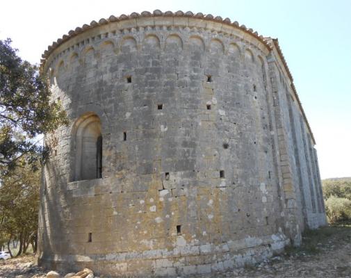 L'église romane Saint-Sylvestre-des-Brousses, dite aussi Saint-Sylvestre de Montcalmès, se dresse près du village de Puéchabon, dans les garrigues de la vallée de l'Hérault en Occitanie, à l'écart des grandes voies modernes mais à quelques centaines de mètres d'un chemin de pèlerinage menant à Saint-Guilhem-le-Désert et situé sur le chemin d'Arles (Via Tolosona/Via Domitia). Datant du XIIe siècle, l'édifice offre un plan simple : une nef de trois travées terminée par une abside en cul-de-four, avec des ouvertures extérieures étroites en forme de meurtrières qui lui confèrent un aspect massif proche d'une petite forteresse. La nef était couverte par une charpente apparente, formée de deux pannes et d'une faitière soutenues par des arcs-doubleaux et des chevrons espacés. Un petit campanile roman a disparu, puis un clocher rectangulaire fut ajouté au sud de la travée orientale, sa partie sommitale ayant été reconstruite en 1761. À l'intérieur, cinq rangs de gradins s'étagent contre le mur ouest de la nef et deux le long du mur nord. L'abside, divisée en cinq panneaux par des arcs lombards et des colonnettes, présente des chapiteaux à haut tailloir ornés de motifs archaïsants, un feston d'arcatures et un cordon de dents d'engrenage sous la corniche ; la baie axiale à double ébrasement repose sur un tore et des colonnettes. Un cordon marque le départ de la voûte pour l'abside et la travée de chœur, le reste de l'édifice n'ayant pas été voûté mais prévu pour être couvert par une charpente portée par un arc diaphragme, ce qui traduit deux campagnes de construction aux moyens différents. Le portail, discret dans la travée médiane, se compose de trois voussures en plein cintre sans ornementation ; l'arc, sans impostes, part directement du sol, témoignant de la sobriété de l'ensemble. Le mur sud, sans contrefort, révèle la diminution de la taille des assises vers le sommet, contrainte liée au débitage des matériaux lors de l'édification. Des éléments de décor peint rouge et ocre jaune subsistent sur le mur du chevet, et l'ornementation géométrique se retrouve sur archivoltes et voussures ; l'édifice conserve également des colonnes et des chapiteaux stylisés. L'histoire de la paroisse est ancienne : mentionnée dès 1100 dans un acte de donation à l'abbaye d'Aniane, l'église fut occupée pendant près de six siècles par des bénédictins qui, au XVIe siècle, délaissèrent Saint-Sylvestre au profit de Saint-Pierre de Puéchabon, puis la quittèrent en 1658 après la visite de monseigneur de Bosquet, qui suscita des réparations. Confisquée comme bien national pendant la Révolution, elle appartient à la commune de Puéchabon depuis 1812 et a fait l'objet de restaurations successives ; elle est classée au titre des monuments historiques par arrêté du 20 juillet 1918. L'édifice se trouve aujourd'hui au milieu d'une oliveraie, remise en état par l'association des « Vieux Oliviers de Puéchabon », et de vignobles, et le défrichement permet une vue dégagée vers le sud, jusqu'à Aniane et Saint-Jean-de-Fos. Un ancien cimetière pourrait exister sous le remblai d'accès à l'église.