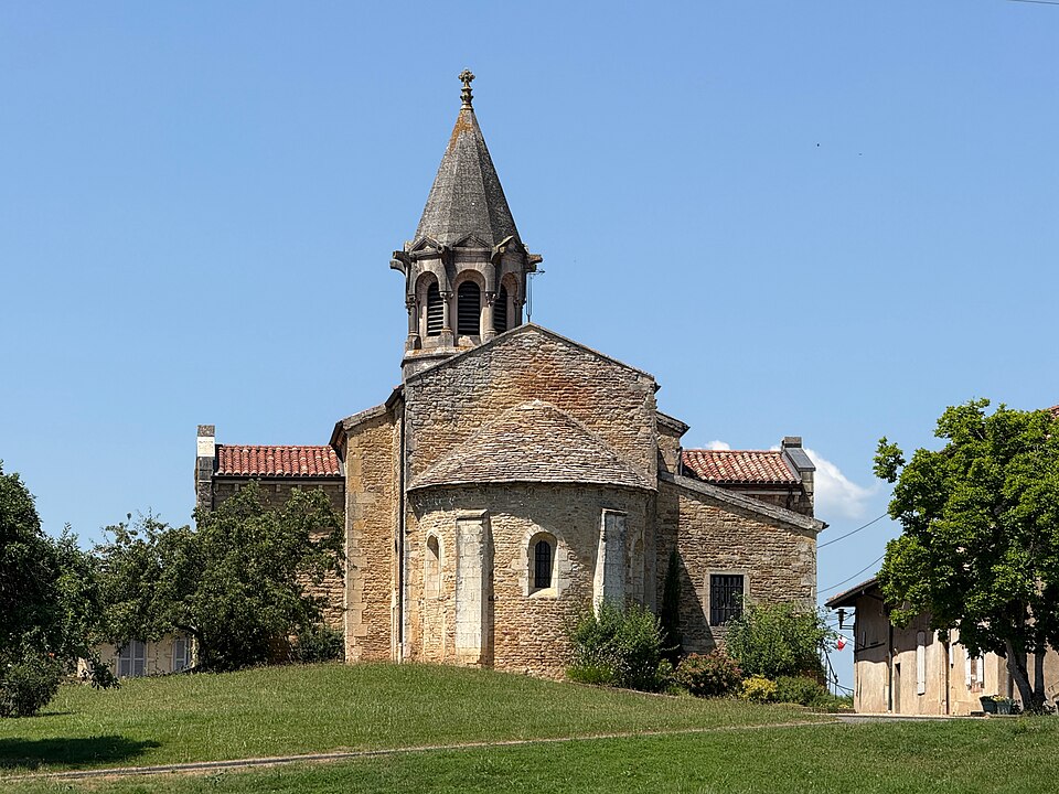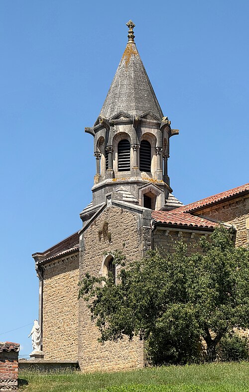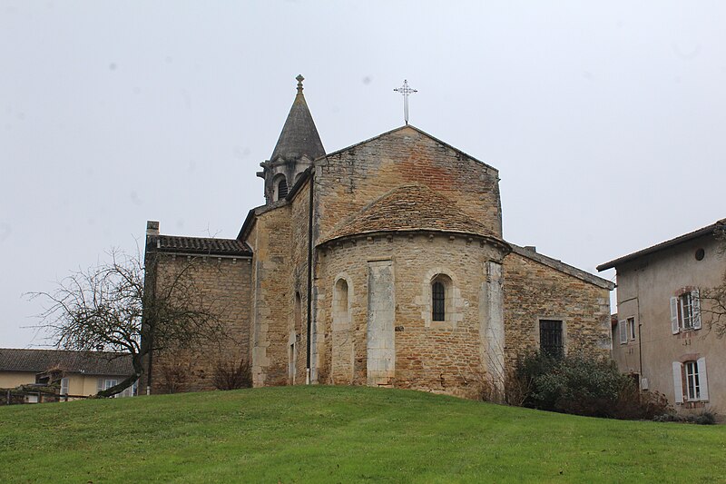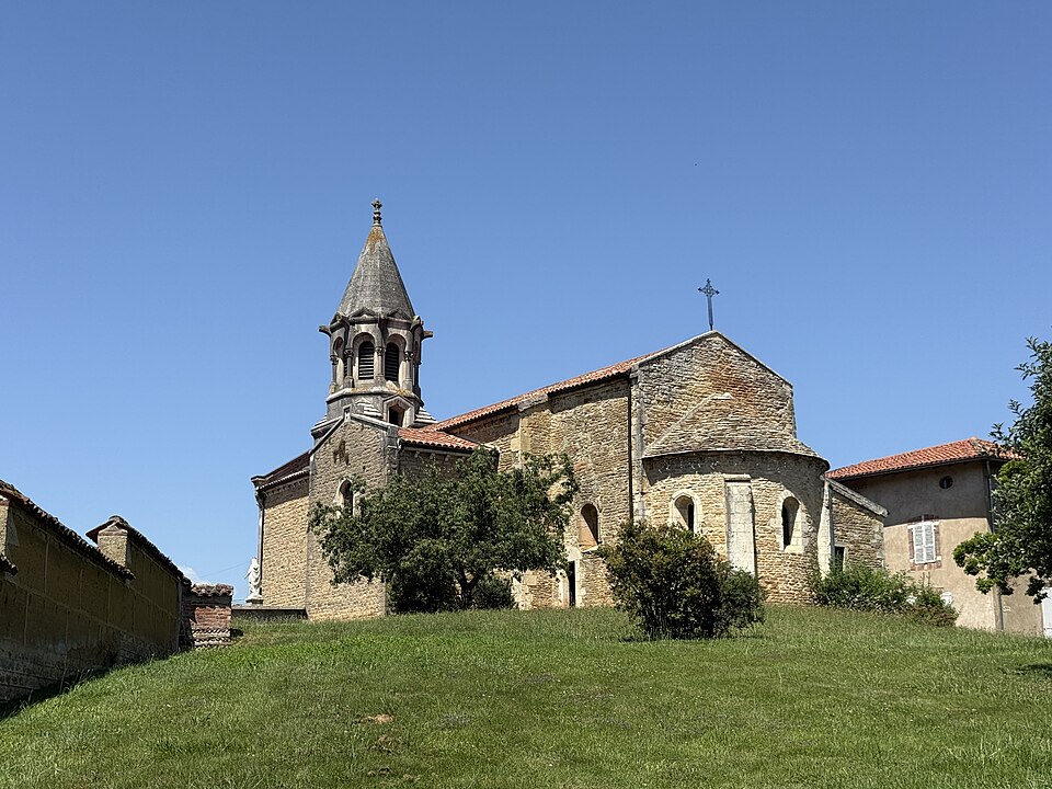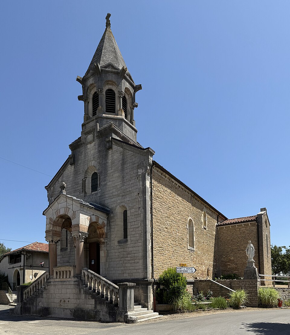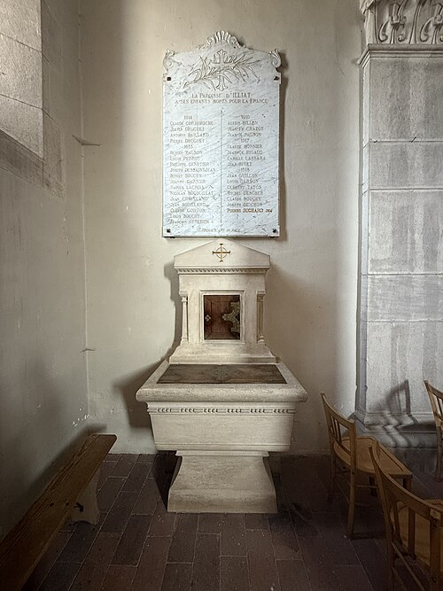 L'église Saint-Symphorien, située à Illiat dans l'Ain (Auvergne‑Rhône‑Alpes), s'élève sur une motte féodale et est inscrite au titre des monuments historiques depuis le 9 avril 2008. La découverte en 1981 d'un petit autel paléochrétien des Ve‑VIe siècles portant l'inscription "Procolus in Christi nomine presbyter voto suo Fecit" atteste une origine très ancienne. L'édifice relevait de la présentation de l'archevêque de Lyon, mais dans son état actuel il n'est pas antérieur au XIIe siècle. À la fin du XVIIIe siècle, des modifications mineures ont été apportées, notamment le lambrissage d'une charpente jusque-là apparente et la suppression du banc en maçonnerie autour de la nef. Les transformations majeures datent surtout du XIXe siècle : construction de chapelles latérales formant transept en 1836, allongement de la nef et édification d'un clocher sur la nouvelle façade. Une double rampe d'escalier donnant accès au portail a été ajoutée en 1876. Ces aménagements ont entraîné la destruction du portail roman et la perte de deux autels à l'entrée du chœur, consacrés à Notre‑Dame‑de‑Pitié et à Saint‑Pancrace, ce dernier appartenant aux seigneurs de la Poype de Lurcy.