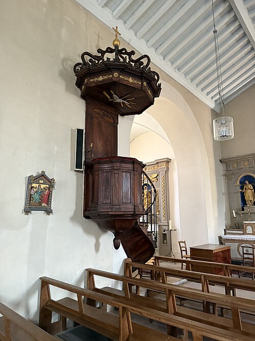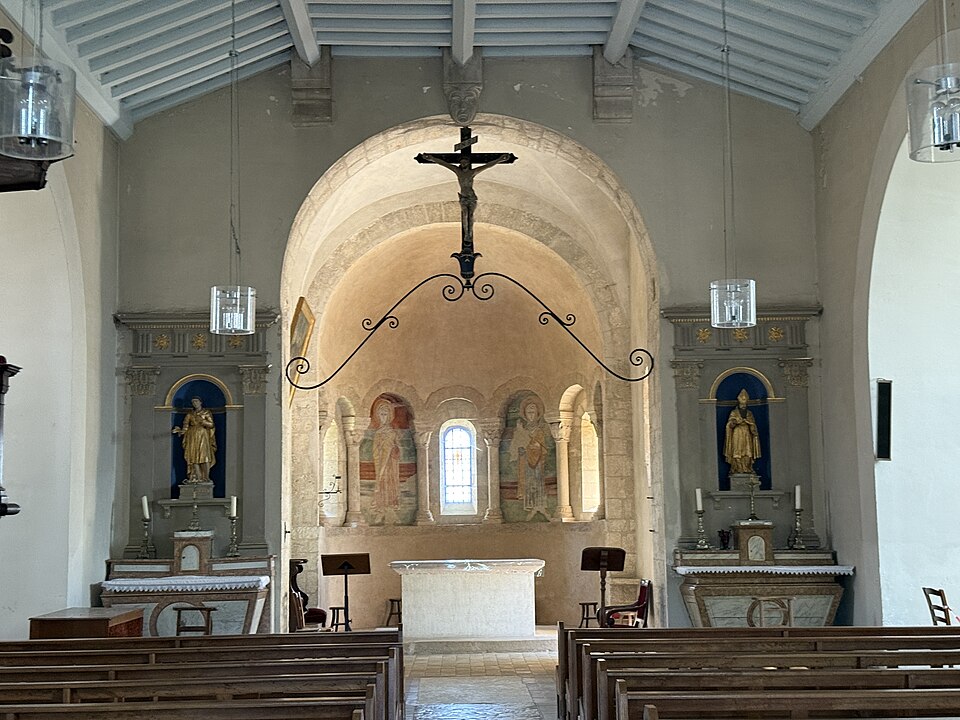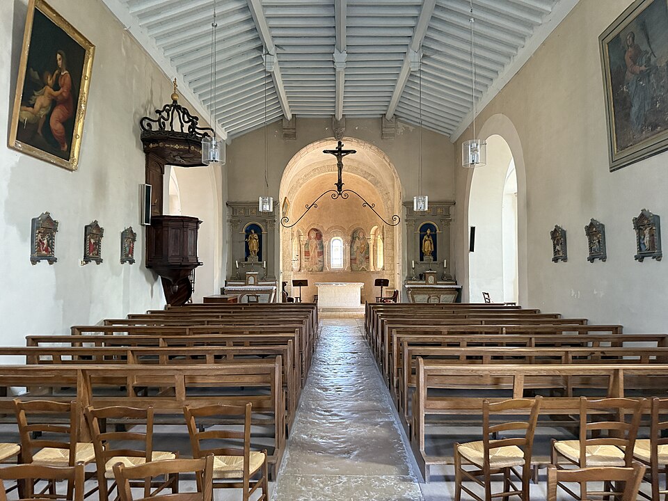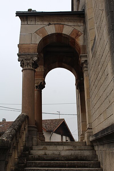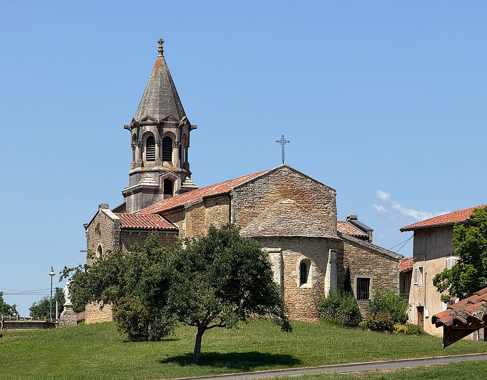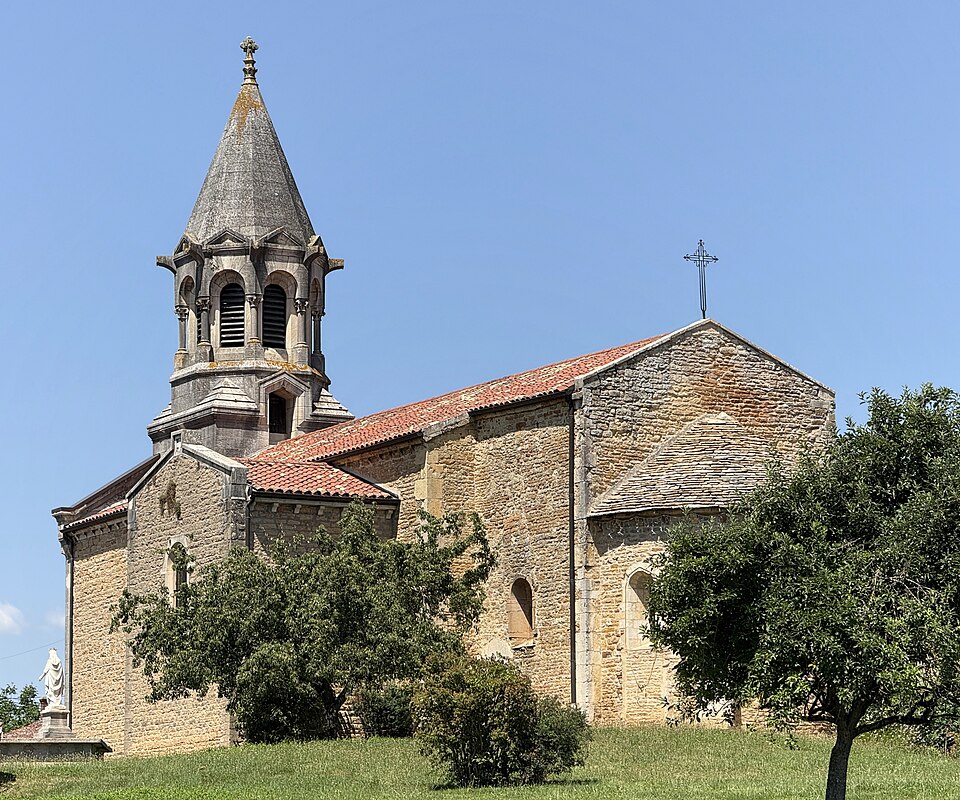 L'église Saint-Symphorien, située à Illiat dans l'Ain (Auvergne‑Rhône‑Alpes), s'élève sur une motte féodale et est inscrite au titre des monuments historiques depuis le 9 avril 2008. La découverte en 1981 d'un petit autel paléochrétien des Ve‑VIe siècles portant l'inscription "Procolus in Christi nomine presbyter voto suo Fecit" atteste une origine très ancienne. L'édifice relevait de la présentation de l'archevêque de Lyon, mais dans son état actuel il n'est pas antérieur au XIIe siècle. À la fin du XVIIIe siècle, des modifications mineures ont été apportées, notamment le lambrissage d'une charpente jusque-là apparente et la suppression du banc en maçonnerie autour de la nef. Les transformations majeures datent surtout du XIXe siècle : construction de chapelles latérales formant transept en 1836, allongement de la nef et édification d'un clocher sur la nouvelle façade. Une double rampe d'escalier donnant accès au portail a été ajoutée en 1876. Ces aménagements ont entraîné la destruction du portail roman et la perte de deux autels à l'entrée du chœur, consacrés à Notre‑Dame‑de‑Pitié et à Saint‑Pancrace, ce dernier appartenant aux seigneurs de la Poype de Lurcy.