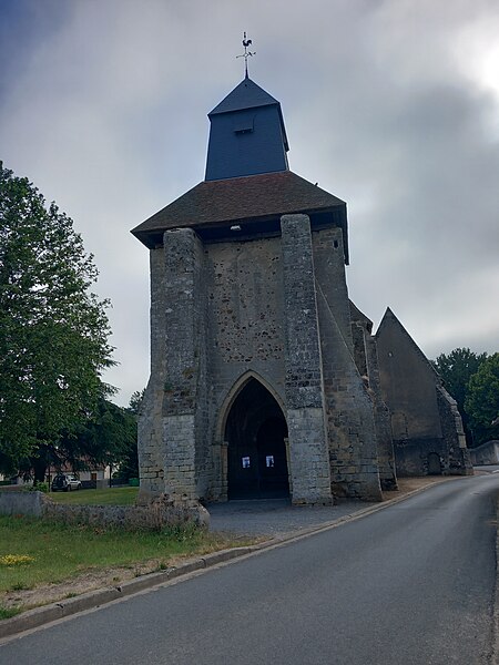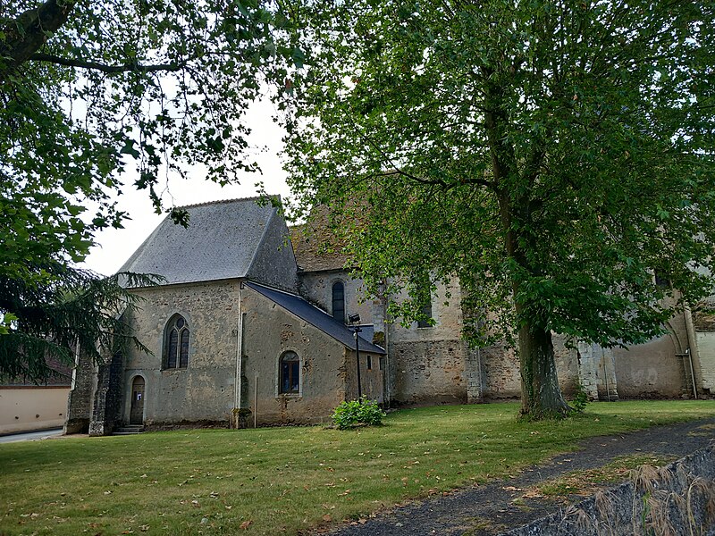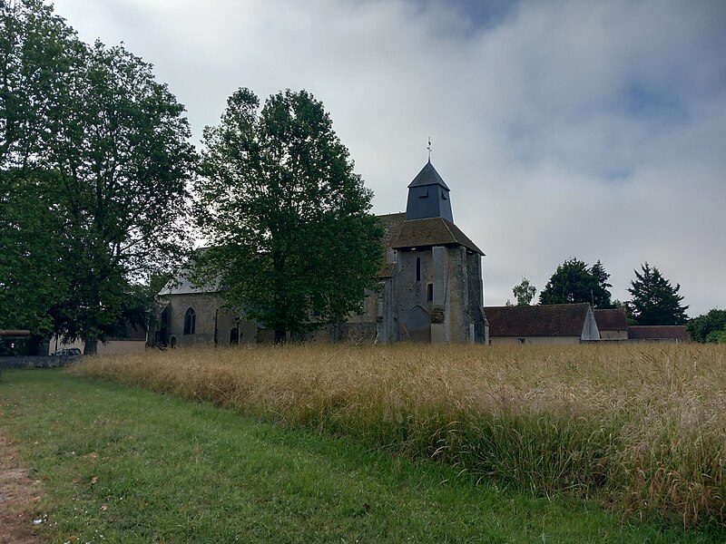 L'église Saint-Symphorien, située route d'Anjouin à Genouilly (Cher), présente un style de transition entre l'art roman et l'ogival. Les archives sont rares et l'édifice n'apparaît nettement que dans des documents du XIIIe siècle. La nef et le chœur datent du dernier quart du XIIe siècle ; le chœur se termine par une abside extérieurement hémicycle et intérieurement polygonale. L'abside tournée vers l'est est couverte de trois voûtains rayonnants soutenus par deux arcs d'arête et éclairée par des fenêtres encadrées de chapiteaux à feuilles d'acanthe, dont l'un porte un sommier carré enveloppé de feuilles étroites. L'ouverture entre abside et chœur est formée par un doubleau bordé de deux tores ornés de macarons semi-sphériques. Le clocher-porche, une puissante tour carrée flanquée de contreforts à long glacis, a été élevé au début du XIIIe siècle ; son rez-de-chaussée forme le porche. Cette tour était autrefois ajourée de quatre baies brisées et surmontée d'un beffroi ; la flèche du beffroi a été remplacée vers 1900 par la toiture quadrangulaire actuelle. Seuls le chevet et le chœur conservent nettement les caractères romans du XIIe siècle, tandis que les ogives et certains ajouts relèvent du style gothique. Le chœur présente quatre arcades en tiers point, parfois appuyées sur des groupes de colonnes, et des chapiteaux romans sculptés d'arabesques et de rinceaux, dont l'un figure un acrobate tête en bas accompagné de deux animaux sauvages. La voûte du chœur est très bombée, suggérant une influence de l'architecture angevine ; les quatre branches d'ogives portent une large bande ornée de fleurettes à quatre pétales accompagnée de deux tores. Côté nef, quelques claveaux sont décorés de petites têtes vues de face ; la voûte en berceau de bois ancienne a été modifiée au XIXe siècle et remplacée par des voûtes en pierre recouvertes d'ogives en plâtre. Le portail primitif de la façade, avant la construction du porche, est décoré de voussures reposant sur des colonnettes aux chapiteaux à crochets. Aux XVIe siècle les seigneurs de la Maisonfort ont fait construire les deux chapelles latérales du chœur : Gabriel de la Châtre de Nançay et sa troisième épouse Jeanne Sanglier pour la chapelle sud, dont l'écusson est gravé sur la clé de voûte. Ces chapelles, à ogives de profil flamboyant, retombent sur des culs-de-lampe historiés ornés de pampres, de feuillages, d'angelots (chapelle nord) et de coquilles ou d'un oiseau fantastique (chapelle sud), puis se prolongent par des absidioles à pans coupés. Les chapelles reçurent en 1536, par la générosité de Claude Ier de La Châtre et d'Anne Robertet, cinq verrières qui ont été classées aux monuments historiques en 1892. Ces vitraux ont été restaurés au XIXe siècle puis au début du XXe siècle de manière insatisfaisante ; des travaux menés de 1975 à 1978 ont permis de les recomposer selon le modèle d'origine en ajoutant quelques panneaux contemporains. Dans la chapelle nord, le vitrail montre notamment un ange de l'Annonciation vêtu de vert aux ailes rouges jouant de la harpe, avec l'inscription "AVE MARIA", et porte les noms des saints des lancettes : saint Cosme et saint Antoine. Les autres verrières de la chapelle nord figurent sainte Anne instruisant la Vierge, sainte Marguerite avec la palme du martyre et la Vierge de l'Annonciation en oculus, ainsi que sainte Marthe foulant le dragon et un Christ portant la croix de résurrection en oculus. Le vitrail de l'abside représente saint Claude ; la partie supérieure du personnage et l'entablement datent du XVIe siècle ; dans la chapelle sud figurent saint Jean-Baptiste et sainte Suzanne. Les verrières montrent des éléments de style proches de l'atelier de Jean Lécuyer, maître verrier à Bourges au XVIe siècle. L'autel et les stalles, datés du XVIIIe siècle, proviennent de la chapelle du château de la Maisonfort sur la commune. Dans la chapelle sud se trouve un monument funéraire de la fin du XVIe et du début du XVIIe siècle, probablement élevé par le maréchal Claude de La Châtre de La Maisonfort pour Gabriel de la Châtre de Nançay ; le corps du maréchal y fut déposé en 1614 avant d'être transporté à Bourges. Ce cénotaphe consiste en un enfeu surmonté d'un cadre de pierre de style Renaissance, partiellement mutilé, reposant sur des pattes de lion ; consoles, rinceaux, voûte à caissons et pilastres cannelés portent des attributs guerriers. La plaque centrale a été remplacée par la plaque commémorative des morts de la Première Guerre mondiale, ce qui a modifié le caractère du monument. L'édifice est inscrit au titre des monuments historiques par arrêté du 26 janvier 1927.