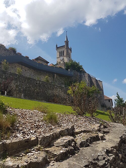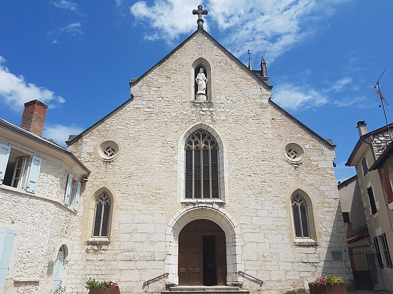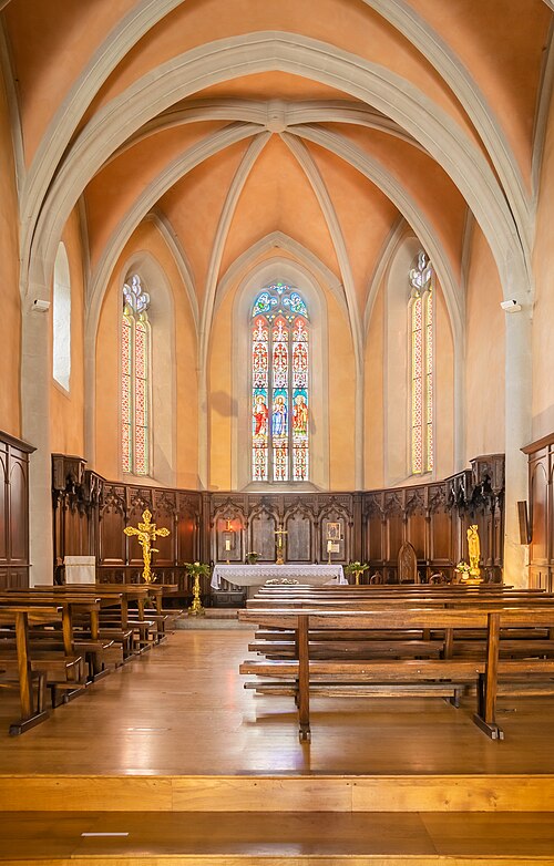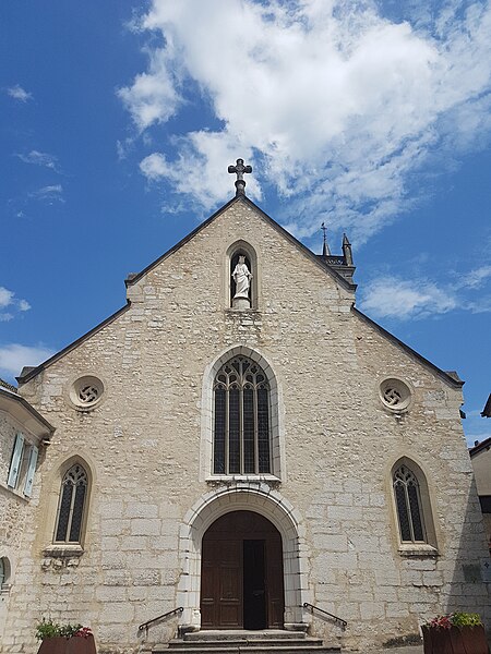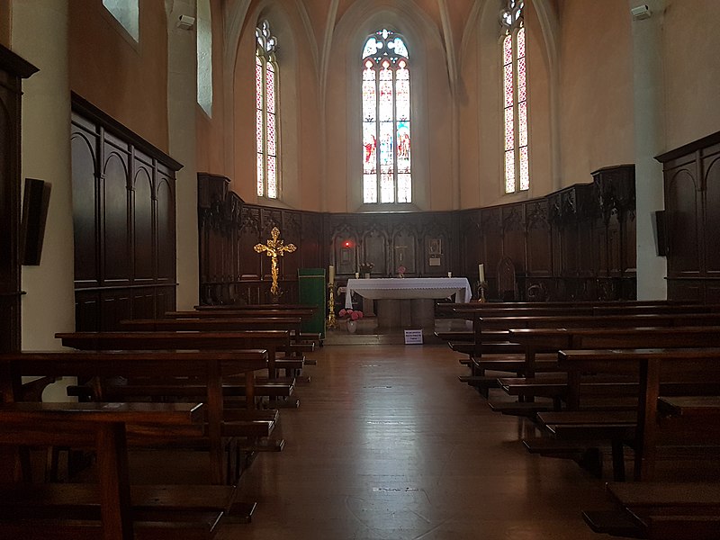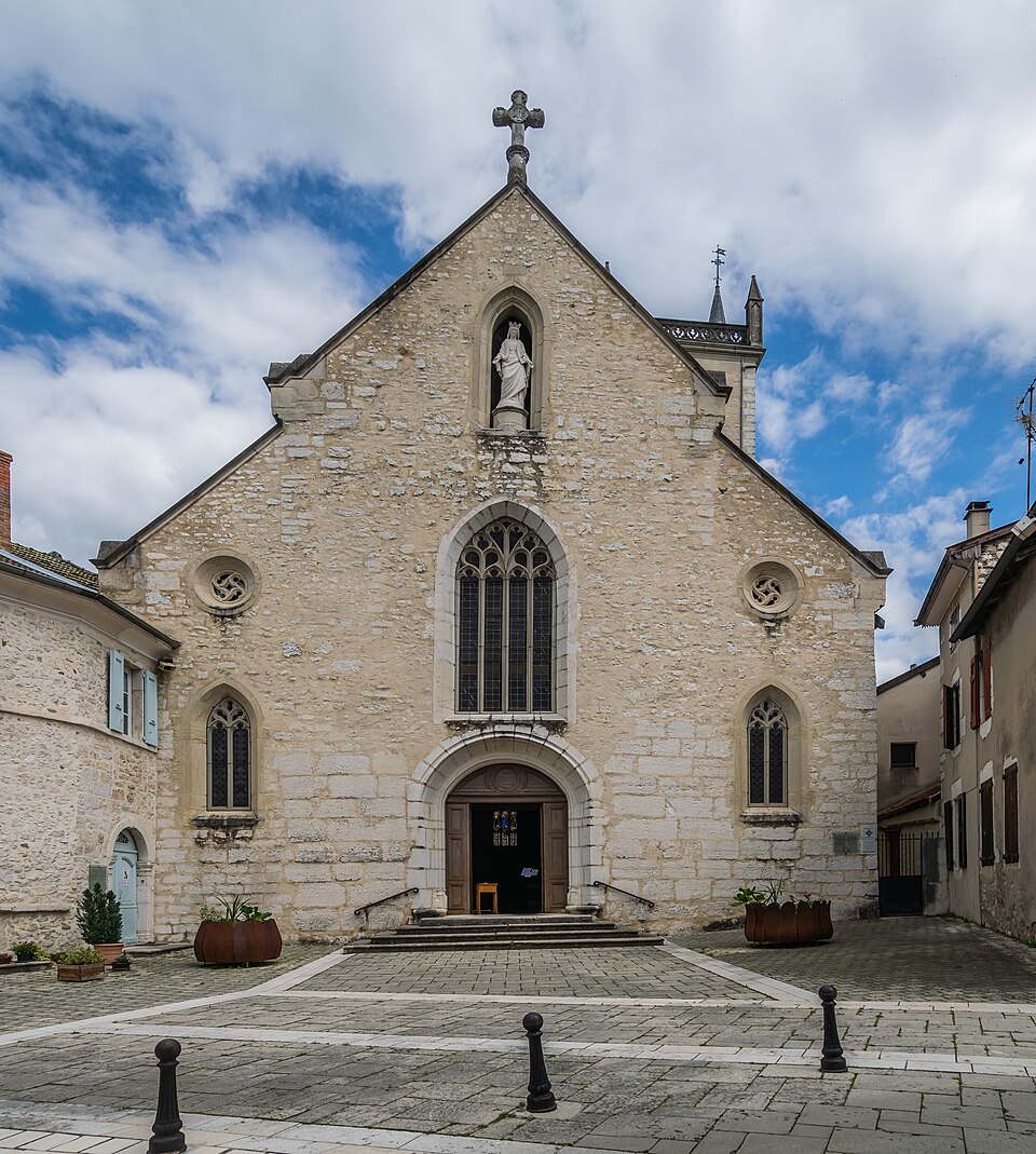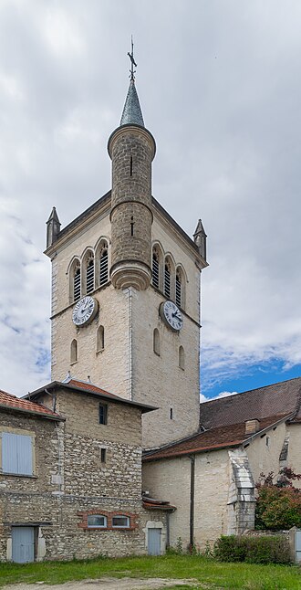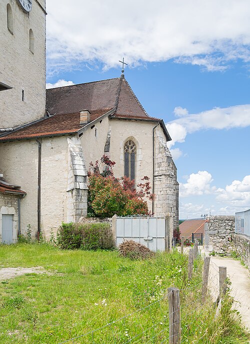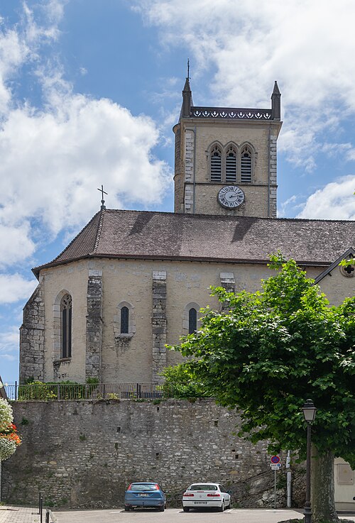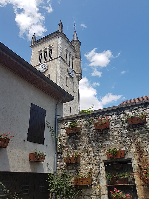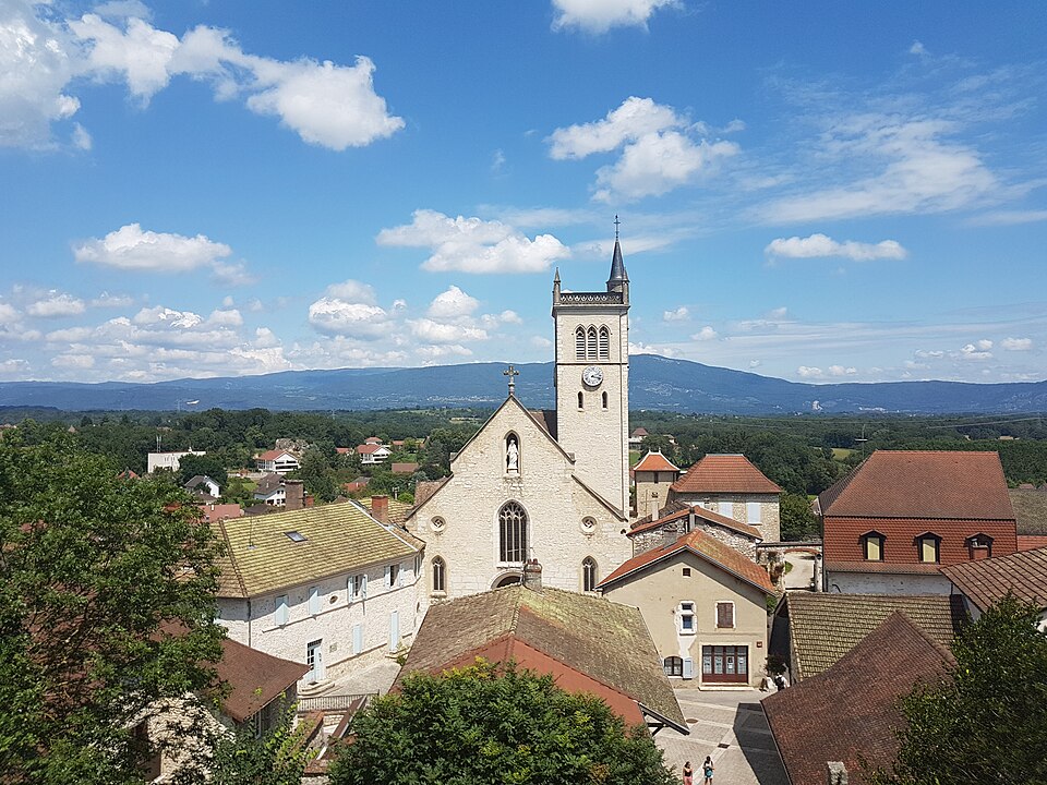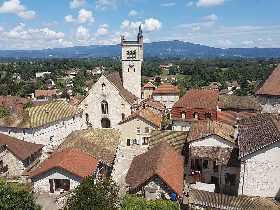 L’église Saint-Symphorien de Morestel, ancienne chapelle du couvent des Augustins, est un édifice gothique situé au 171 rue Auguste-Ravier, dans le centre de Morestel (Isère). Construite au XVe siècle, elle est perchée sur une légère élévation qui marque l’ancien bourg médiéval et borde les remparts, dominant la place du marché et l’ancienne route nationale. À la suite de la désaffection de l’ancienne église et de la nationalisation des biens des Augustins, elle devient église paroissiale le 15 août 1791. L’édifice fait l’objet d’une inscription partielle au titre des monuments historiques par arrêté du 22 septembre 1972, la protection excluant le clocher. L’architecte diocésain Alfred Berruyer (1819-1901) a dirigé une campagne de restauration qui a notamment ajouté une lanterne gothique ornée d’une tourelle à poivrière sur un angle. De type gothique primaire, l’église se distingue par un haut clocher et, à l’intérieur, par une nef voûtée en croisées d’ogives, un chœur profond et une abside à pans coupés. L’édifice a fait l’objet d’une rénovation intérieure en 1998-1999 ; le vitrail central réalisé par Christophe Berthier a été inauguré en avril 1999. Le clocher abrite plusieurs cloches : le dossier mentionne une cloche en bronze datée de 1628, de note mi et de 110 cm de diamètre ; d’autres mentions indiquent une cloche de 1528 (500 kg), une petite cloche de 1739 (70 kg) offerte avec l’horloge par la famille de Quinsonas, et deux cloches plus récentes datées de 1901. Pour compléter la documentation, on peut consulter les listes des monuments historiques et des églises de l’Isère ainsi que des ressources en ligne telles que Clochers de France, l’Observatoire du patrimoine religieux, la base Mérimée et les portails consacrés aux monuments historiques, à l’Isère et à l’architecture chrétienne.