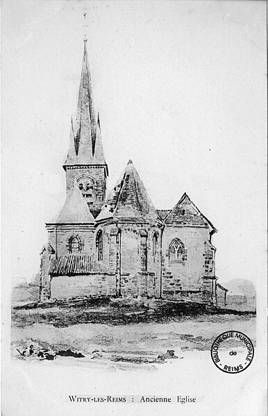 L'église de Witry-lès-Reims, située dans la Marne, est un édifice gothique dédié à saint Symphorien dont les parties datent des XIIe et XIXe siècles. Jugée sous-dimensionnée en 1774, elle n'a été agrandie qu'en 1893. L'abbé Dessailly décida ensuite de démolir l'ancien bâtiment en préservant la tour. L'édifice fut presque détruit pendant la Grande Guerre (1914-1915). L'église a été classée monument historique le 5 août 1922. Des photographies présentent la tour-clocher, la galerie champenoise attenante et l'intérieur du porche. Des images sont disponibles sur Wikimedia Commons et des liens renvoient aux portails consacrés à l'architecture chrétienne, aux monuments historiques, au catholicisme et à la Marne. Voir aussi la liste des monuments historiques de la Marne.