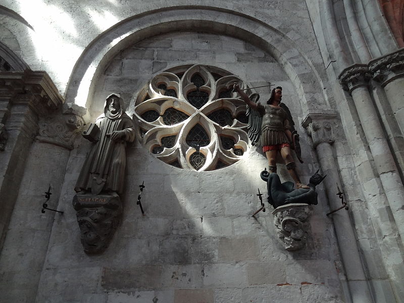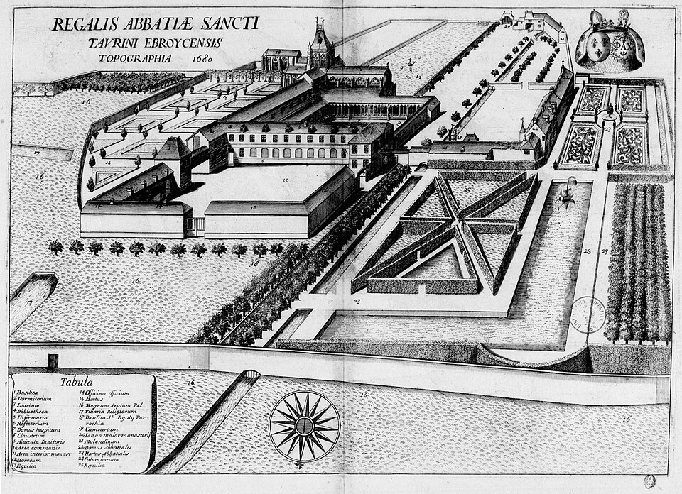 L'ancienne abbaye Saint-Taurin d'Évreux, vraisemblablement fondée par Richard Ier de Normandie vers 950, était un établissement bénédictin riche et influent qui a connu destructions, reconstructions et réformes, notamment la réforme mauriste en 1642, puis la vente à la Révolution en 1793. L'église abbatiale, devenue paroissiale, constitue l'élément majeur du site, mais plusieurs bâtiments monastiques ont également été conservés : l'enclos avec des portions d'enceinte du XIIIe siècle, le bâtiment contigu au moulin (XIVe siècle remanié au XVIe siècle), le logis abbatial (fin XVIe siècle remanié au XIXe siècle), le pavillon édifié en 1758-1759 et les ailes du cloître du XVIe siècle. Le moulin, implanté dans l'enclos au nord d'un bras secondaire de l'Iton et figurant sur un plan de 1578, est une construction du XVIIIe siècle en rez-de-chaussée et étage sous toiture, en moellons calcaires et brique, avec un niveau supérieur en pan de bois, qui abrite à la fois le moulin et la maison du meunier. Des aménagements datés de 1825 ont créé des déversoirs et vannages et ont installé une nouvelle mécanique ; seule la roue a depuis disparu. Le moulin présente l'intérêt d'avoir juxtaposés des éléments anciens et plus récents : des meules en bois du XVIIIe siècle et des dispositifs « à l'anglaise » du XIXe siècle (grand rouet, rouet latéral, meule, chambre de bluterie). L'église Saint-Taurin est dédiée à Taurin, premier évêque d'Évreux, et le monument bénéficie de protections au titre des monuments historiques : la tour Saint-Taurin classée en 1840, l'église classée en 1846 et divers vestiges inscrits par arrêté du 2 octobre 1996. Selon la tradition, le tombeau de saint Taurin aurait été découvert par Landulf au VIe siècle, qui fit édifier un oratoire en bois détruit lors des invasions normandes à la fin du IXe siècle. Après le traité de Saint-Clair-sur-Epte et la réorganisation de la Normandie, l'abbaye fut fondée sous l'autorité de Richard Ier ; Robert le Magnifique la plaça ultérieurement sous la dépendance de l'abbaye de la Trinité de Fécamp, qui la restaura comme maison d'hommes. L'établissement subit des destructions pendant les conflits entre ducs de Normandie et rois de France : en 1195 la ville et l'abbaye furent incendiées lors de la prise d'Évreux par Philippe Auguste et durent être presque entièrement reconstruites. Des actes de 1197 et du 13 avril 1203 rapportent des donations et des droits accordés à l'abbaye par le comte de Meulan Robert II. Au XIIIe siècle, Gilbert de Saint-Martin, élu abbé, rendit l'abbaye indépendante et fit exécuter la châsse de saint Taurin ainsi que le portail sud ; en octobre 1259 le roi Louis IX visita l'abbaye à l'occasion du sacre de Raoul de Grosparmi. L'instauration du régime de la commende entraîna une décadence jusqu'à l'intervention des mauristes en 1642, qui trouvèrent l'église en ruine et firent démolir les trois dernières travées de la nef avant de construire le portail actuel de style classique. Pendant la Révolution, le frère Louis Janthia fut conduit à Paris et exécuté le 26 juillet 1794, tandis que l'église servit de salpêtrière ; elle fut rendue au culte en 1801 et devint église paroissiale en remplacement de l'église Saint-Gilles. Le chœur date du XVe siècle et est de style gothique, alors que la nef mêle des éléments romans du XIIe siècle (piliers et arcatures du bas-côté nord, pilier sud-ouest de la croisée) et des voûtes, fenêtres et un triforium nord de style gothique du XVe siècle, avec des accessoires de style Renaissance. À l'extérieur on remarque le portail classique du XVIIe siècle et le portail sud, dont le tympan martelé représente le Christ entouré des Évangélistes figurés par des corps humains et des têtes animales symboliques. Les verrières de l'abside, datant du XVe siècle, racontent la vie légendaire de saint Taurin ; deux grandes verrières du chœur du même siècle représentent la Dormition et l'Ascension ; des verrières intermédiaires du XIXe siècle relatent la légende de saint Leufroy ; la verrière du croisillon sud, également du XVe siècle, montre un évêque et plusieurs saints, et les verrières du bas-côté sud, réalisées par Max Ingrand, illustrent Noé après le déluge, le sacrifice d'Isaac, le pressoir mystique et la Messe. La statuaire comprend, entre autres, une statue de saint Fiacre du XVe siècle et un saint Michel du XVIIe siècle dans le croisillon nord, un bas-relief en marbre du XVIIe siècle et un retable en bois du XVIe siècle dédiés aux litanies de la Vierge dans une chapelle latérale, une Vierge à l'Enfant du XVIIe siècle à l'entrée du chœur et, dans le chœur, une statue moderne de saint Taurin signée Gérard Vincent. L'orgue, établi en 1842 par Callinet et Daublaine, a été restauré en 1974 par Alfred Kern. La châsse de saint Taurin, exécutée au XIIIe siècle sur l'ordre de Gislebert de Saint-Martin, est en bois et argent recouverte d'une feuille d'or repoussé et présente un décor retraçant la légende du saint. La richesse historique et architecturale de l'ensemble, du moulin aux verrières et objets liturgiques, fait de l'ancienne abbaye Saint-Taurin un ensemble patrimonial majeur d'Évreux.