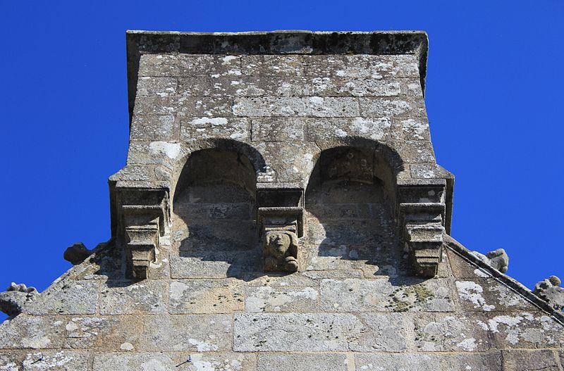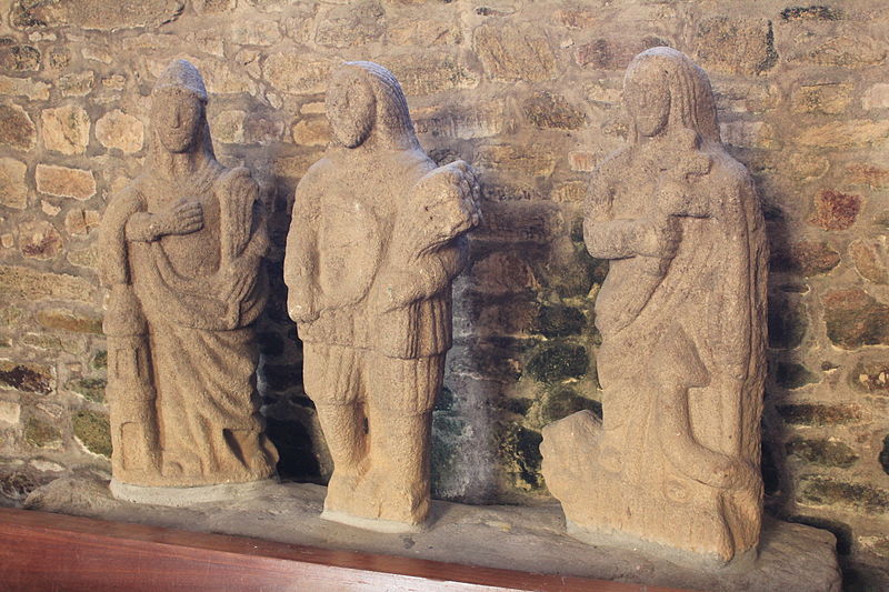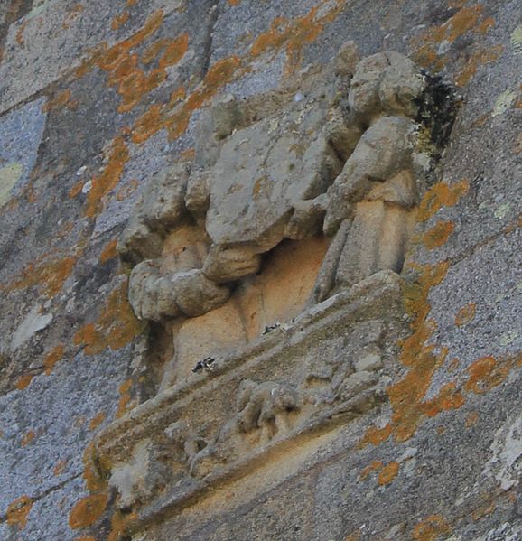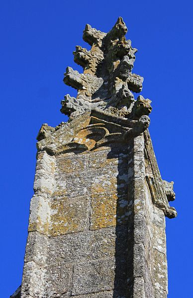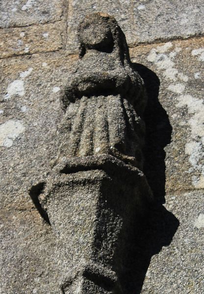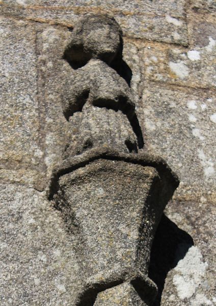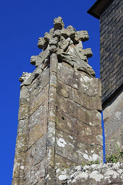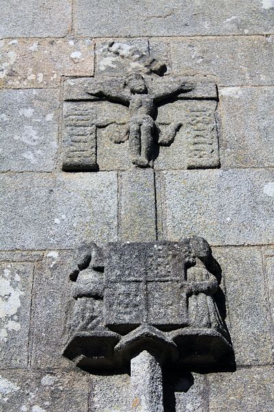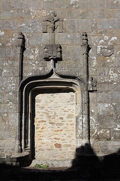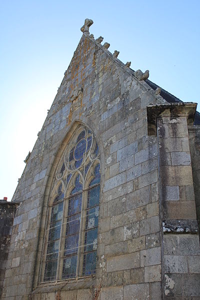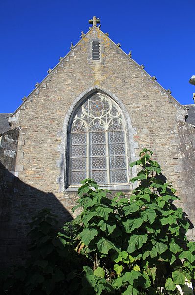 Au sud, un porche porte la date de 1804 et le bras de transept sud, parfois appelé chapelle Saint-Yves, était séparé de la nef par deux arcades à cintre brisé portées par une courte colonne et des chapiteaux à tailloirs simples, que Fréminville attribue au XIVe siècle et rapproche de la chapelle de Locmaria à Landévant. Au nord, la sacristie est complétée par un ossuaire. Les façades portent de nombreux blasons ; plusieurs inscriptions et un blason au-dessus de la porte sud sont aujourd'hui illisibles, tandis que le blason replacé au sommet du chevet montre des armes alliées identifiables, mi-parti aux hermines de Bretagne.