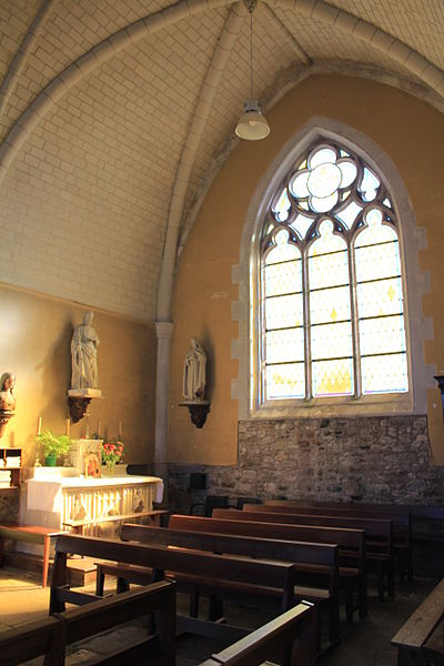 Le portail occidental, malgré des transformations, conserve des baies en anse de panier dont les voussures sont ornées de rinceaux de feuillage, et le clocher carré s'élève sur le pignon nord.