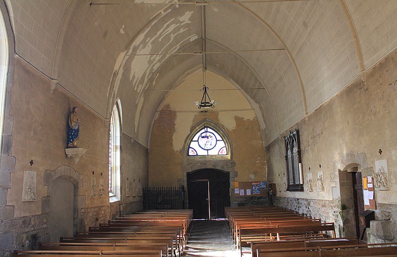 L'édifice présente une partie homogène de la fin du XVe siècle, notamment la nef et la tour d'escalier au nord ; les bras de transept, une partie des matériaux du chœur et les sacristies nord et sud remontent à la seconde moitié du XIXe siècle. La porte ouest, qui était à l'origine jumelée, a été modifiée : le trumeau central a été supprimé et l'ouverture réunie sous un arc surbaissé, tandis que la porte sud a été bouchée à une date inconnue. La porte sud, de style homogène avec l'ensemble, montre un arc en plein cintre à colonnettes décorées d'oves et de bâtons brisés, ce qui a conduit à reconnaître une origine romane pour l'édifice, bien qu'il ait été fortement remanié aux XVIIe et XVIIIe siècles. Le vaisseau unique primitif se terminait par un chevet à trois pans qui aurait été reconstruit en 1665 et renfermait l'enfeu des seigneurs de Kerambourg (Luco).